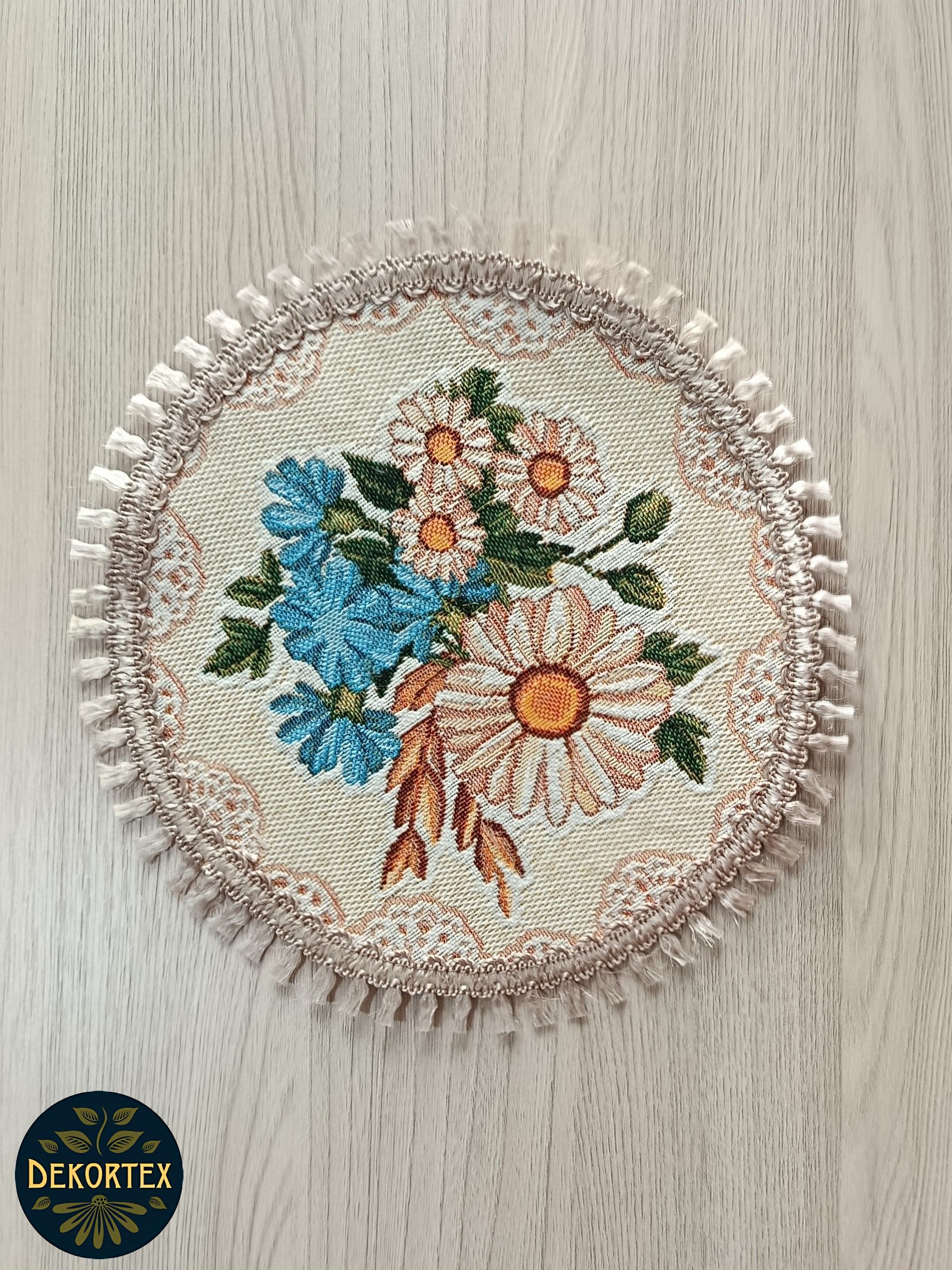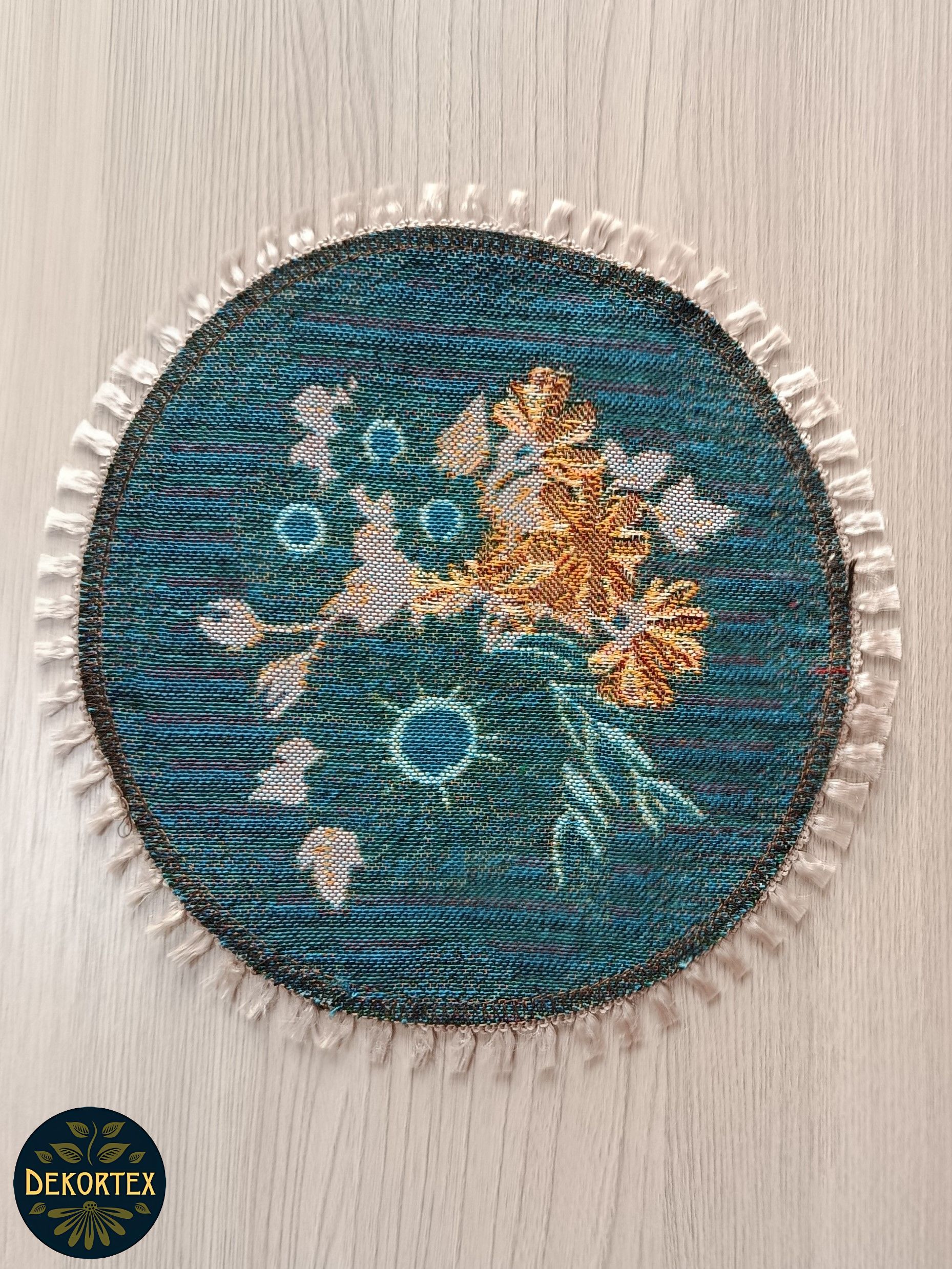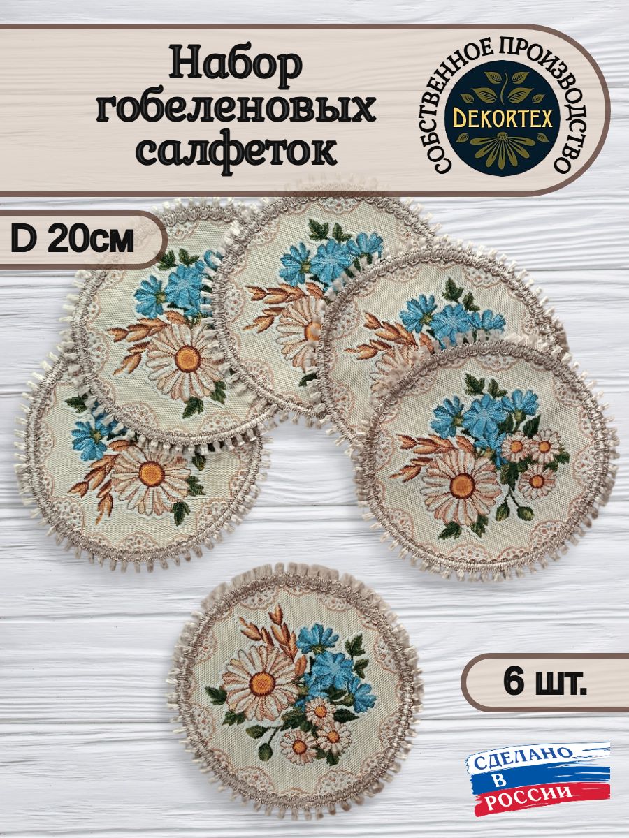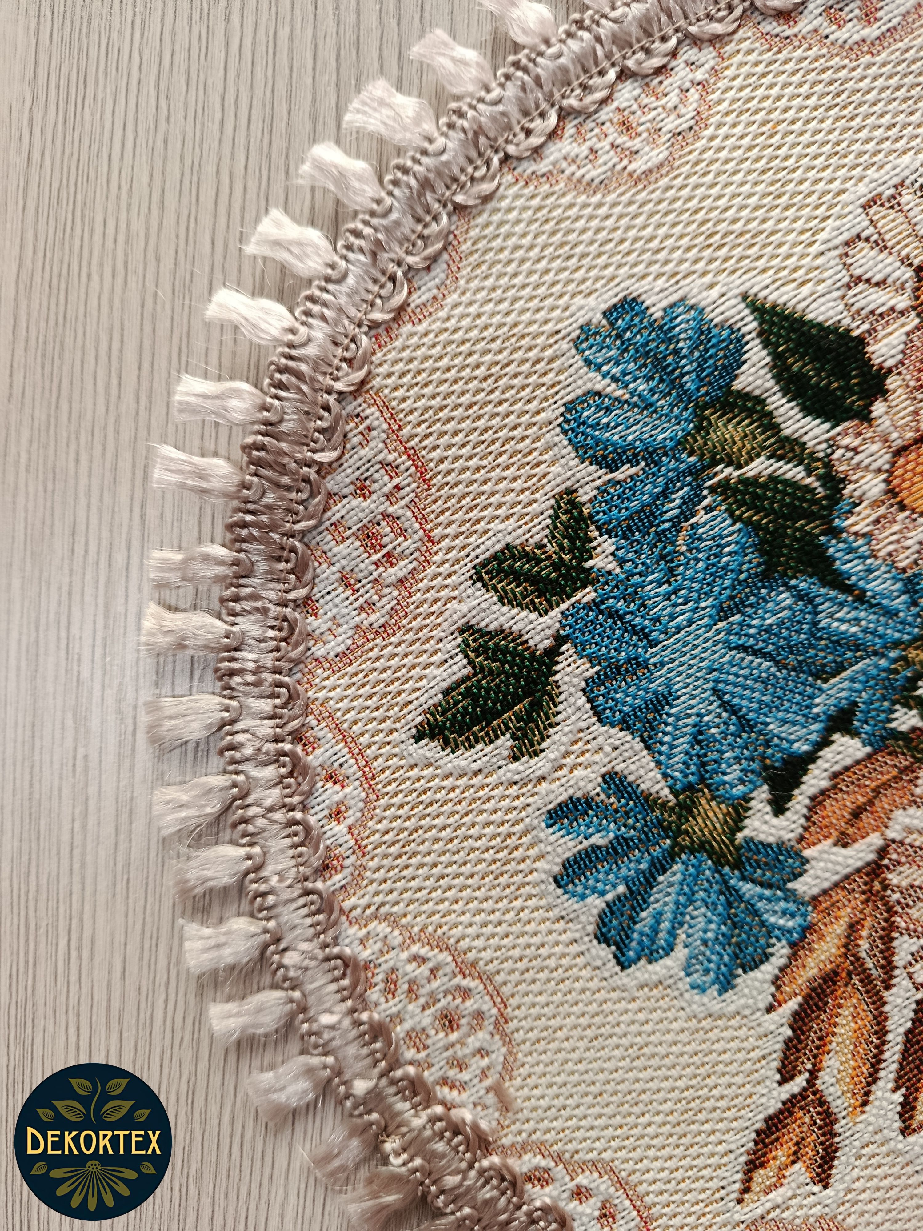 Декоративные гобеленовые салфетки это приятное и полезное украшение для сервировки стола. Салфетки могут продаваться по одной или наборами от двух до десяти штук. Форма, размер, цвет и рисунок салфеток можно выбрать по желанию покупателя. Декоративные салфетки круглой и овальной формы как правило обработаны красивой декоративной тесьмой подходящей по цвету к рисунку на ткани. Гобеленовые декоративные салфетки не только модный, красивый предмет интерьера но и полезны и практичны в использовании. Салфетки помогут предохранить поверхность мебели от повреждения. Гобеленовые салфетки устойчивы к загрязнению, хорошо стираются при температуре 30 градусов на дают усадки не линяют. Изделия из гобеленовой ткани имеют длительный срок службы и сохраняют первоначальный вид и форму. Внимание! Цвет тесьмы может отличаться от представленного на фото. Допускается погрешность в размере 1 см.