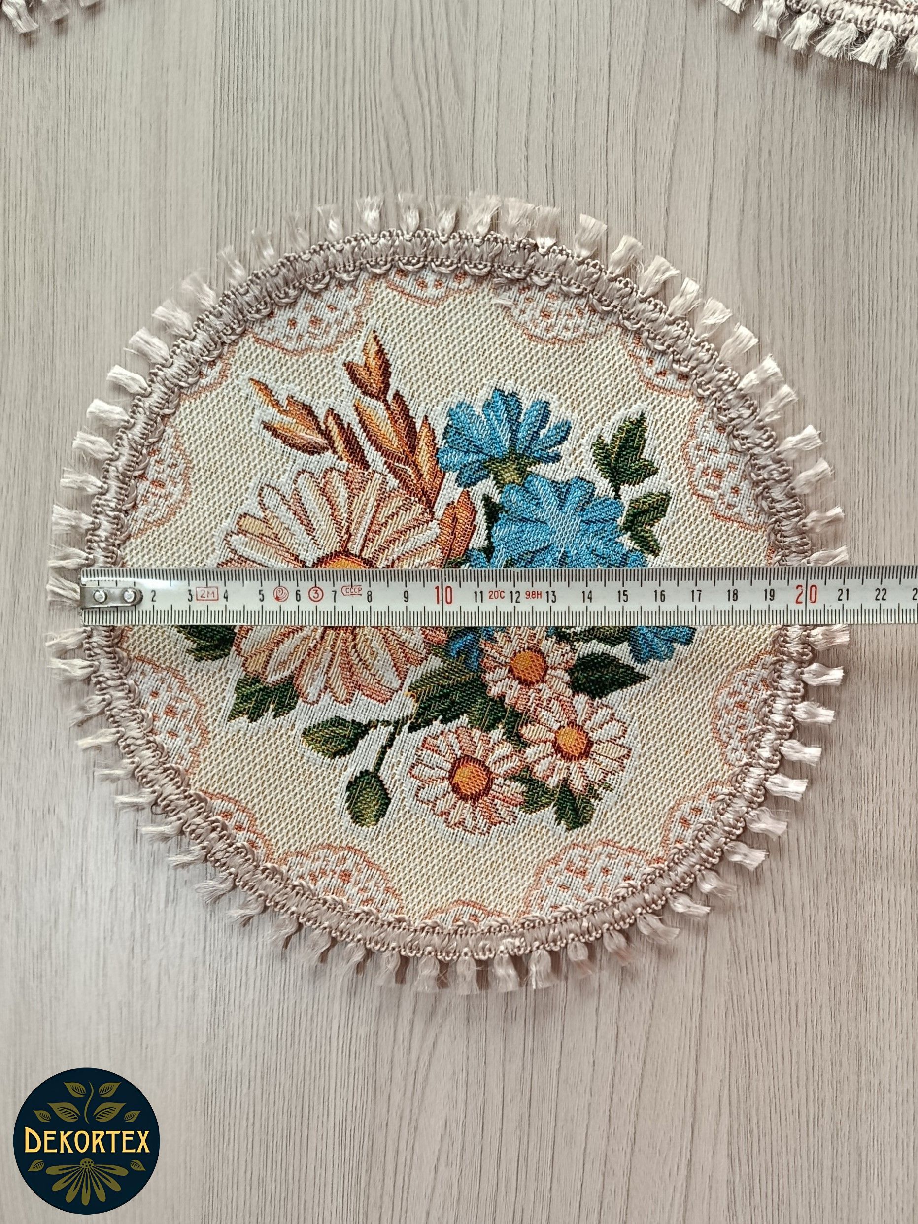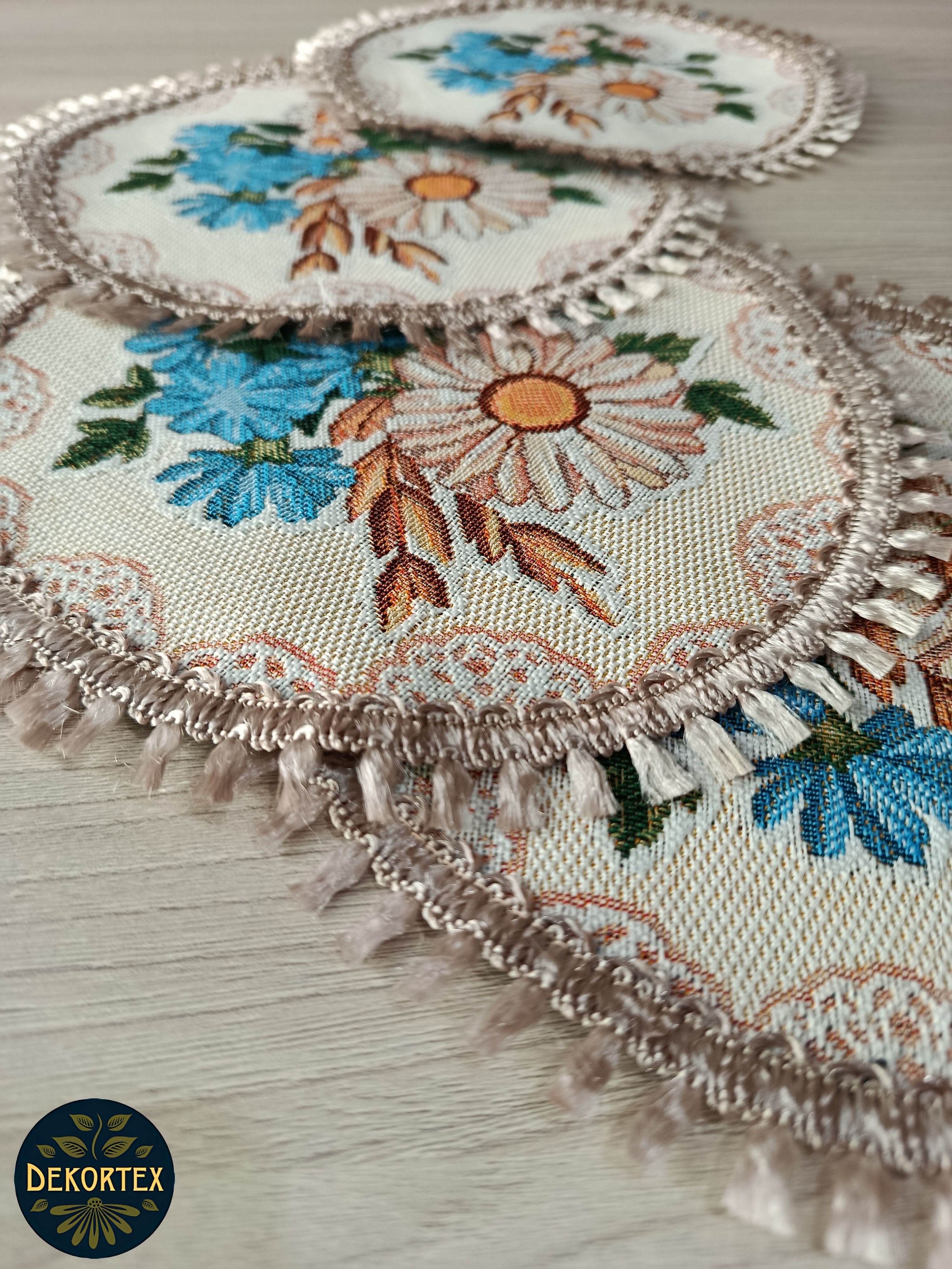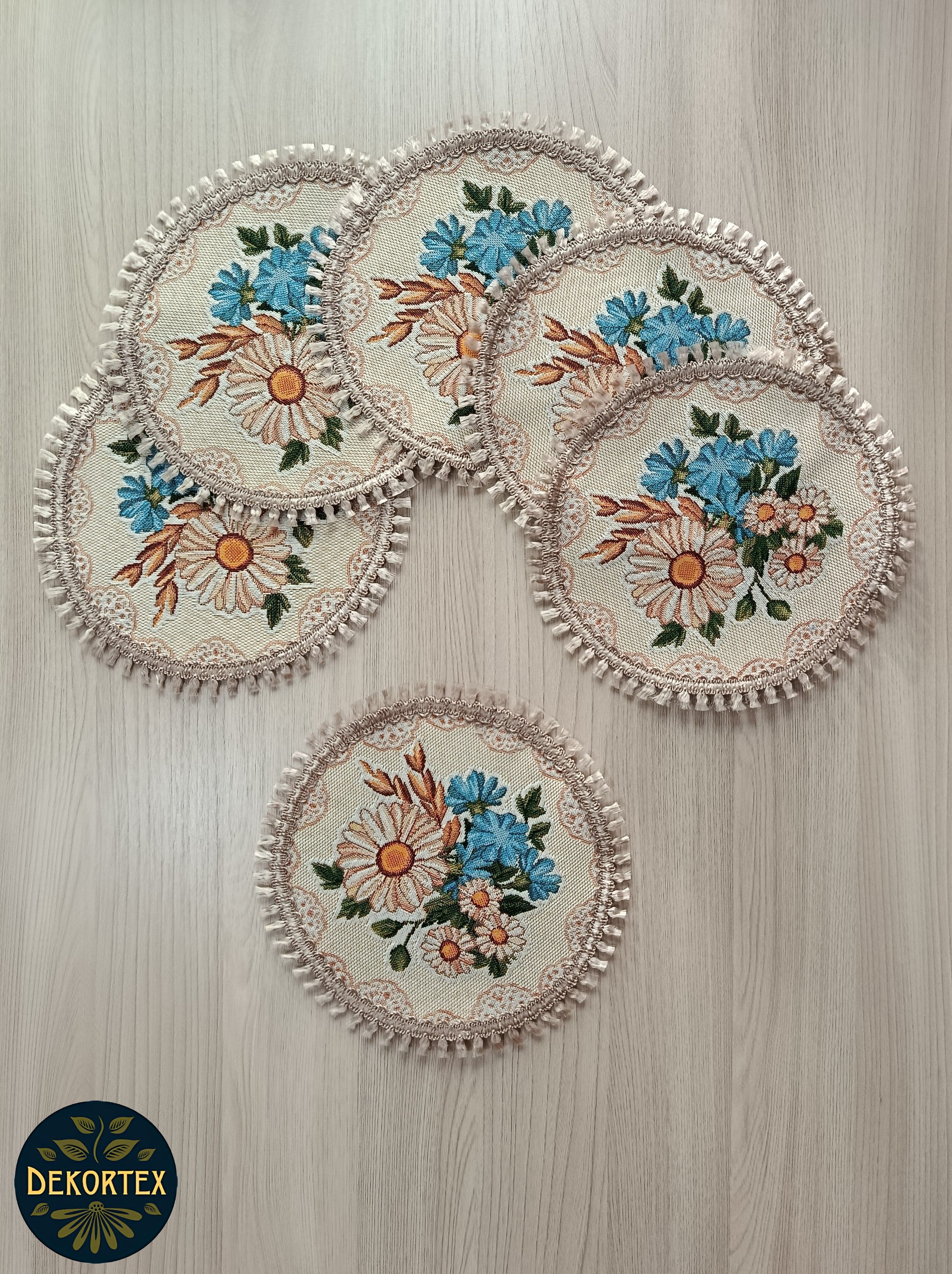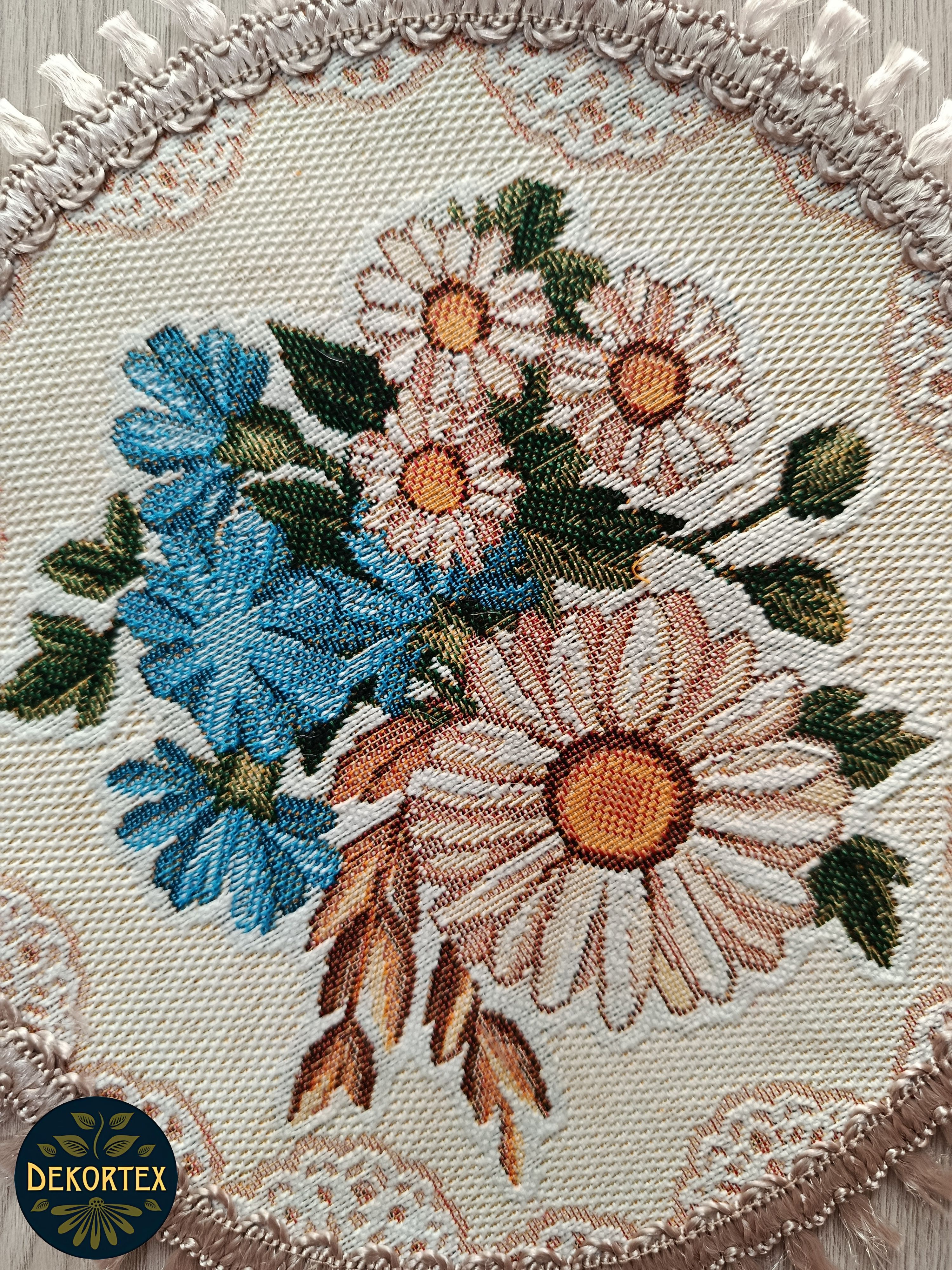 Декоративные гобеленовые салфетки это приятное и полезное украшение для сервировки стола. Салфетки могут продаваться по одной или наборами от двух до десяти штук. Форма, размер, цвет и рисунок салфеток можно выбрать по желанию покупателя. Декоративные салфетки круглой и овальной формы как правило обработаны красивой декоративной тесьмой подходящей по цвету к рисунку на ткани. Гобеленовые декоративные салфетки не только модный, красивый предмет интерьера но и полезны и практичны в использовании. Салфетки помогут предохранить поверхность мебели от повреждения. Гобеленовые салфетки устойчивы к загрязнению, хорошо стираются при температуре 30 градусов на дают усадки не линяют. Изделия из гобеленовой ткани имеют длительный срок службы и сохраняют первоначальный вид и форму. Внимание! Цвет тесьмы может отличаться от представленного на фото. Допускается погрешность в размере 1 см.