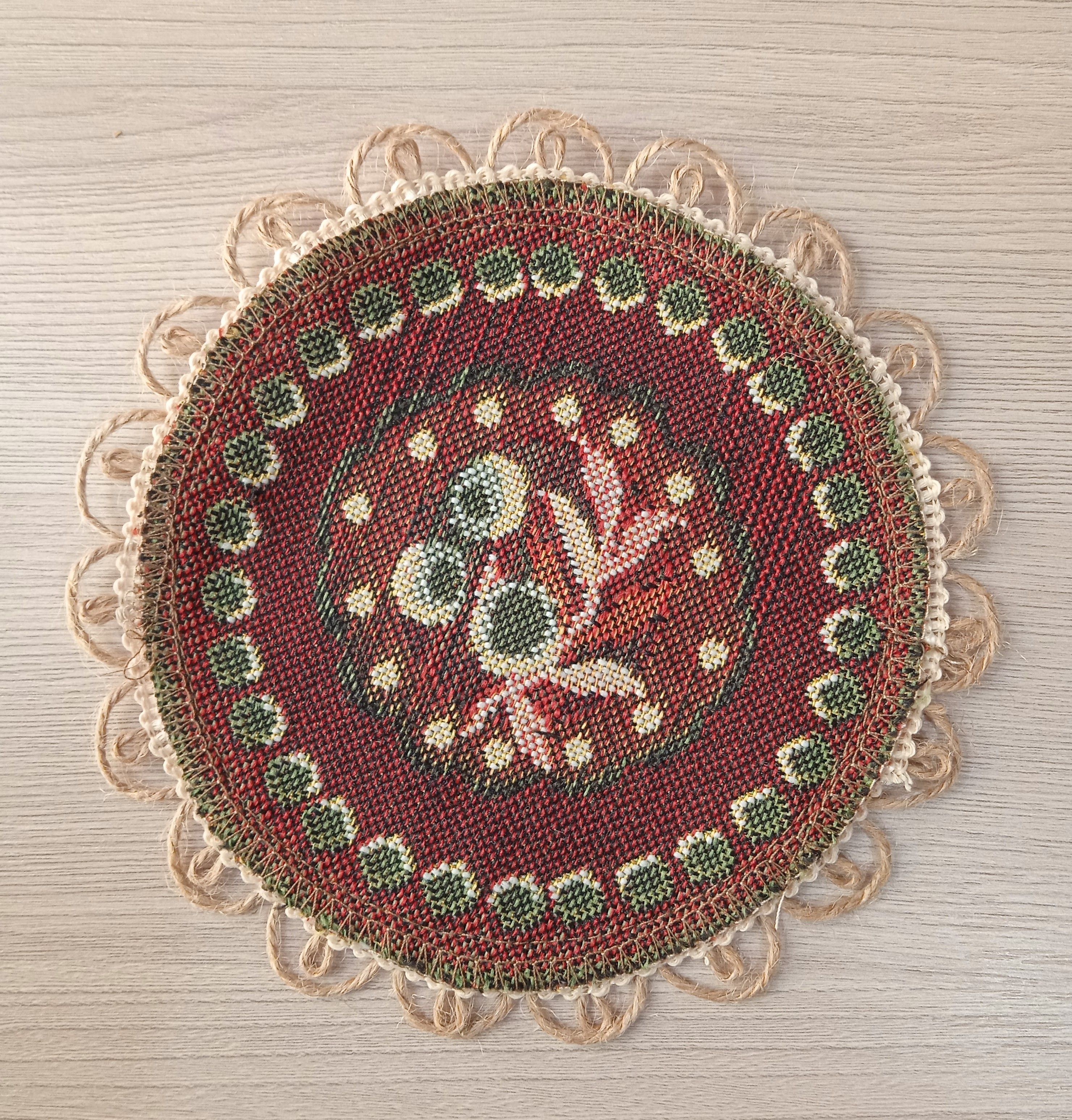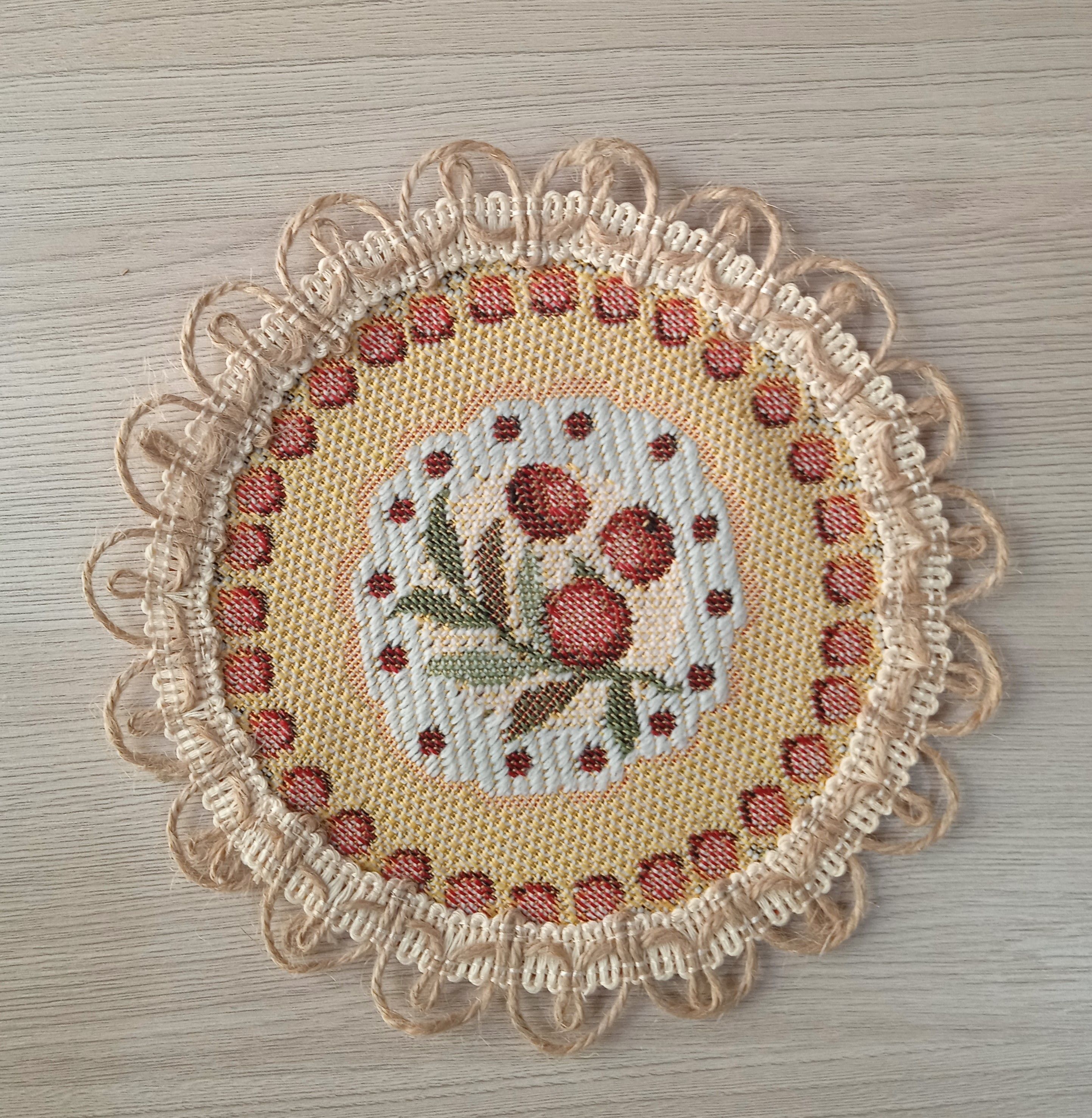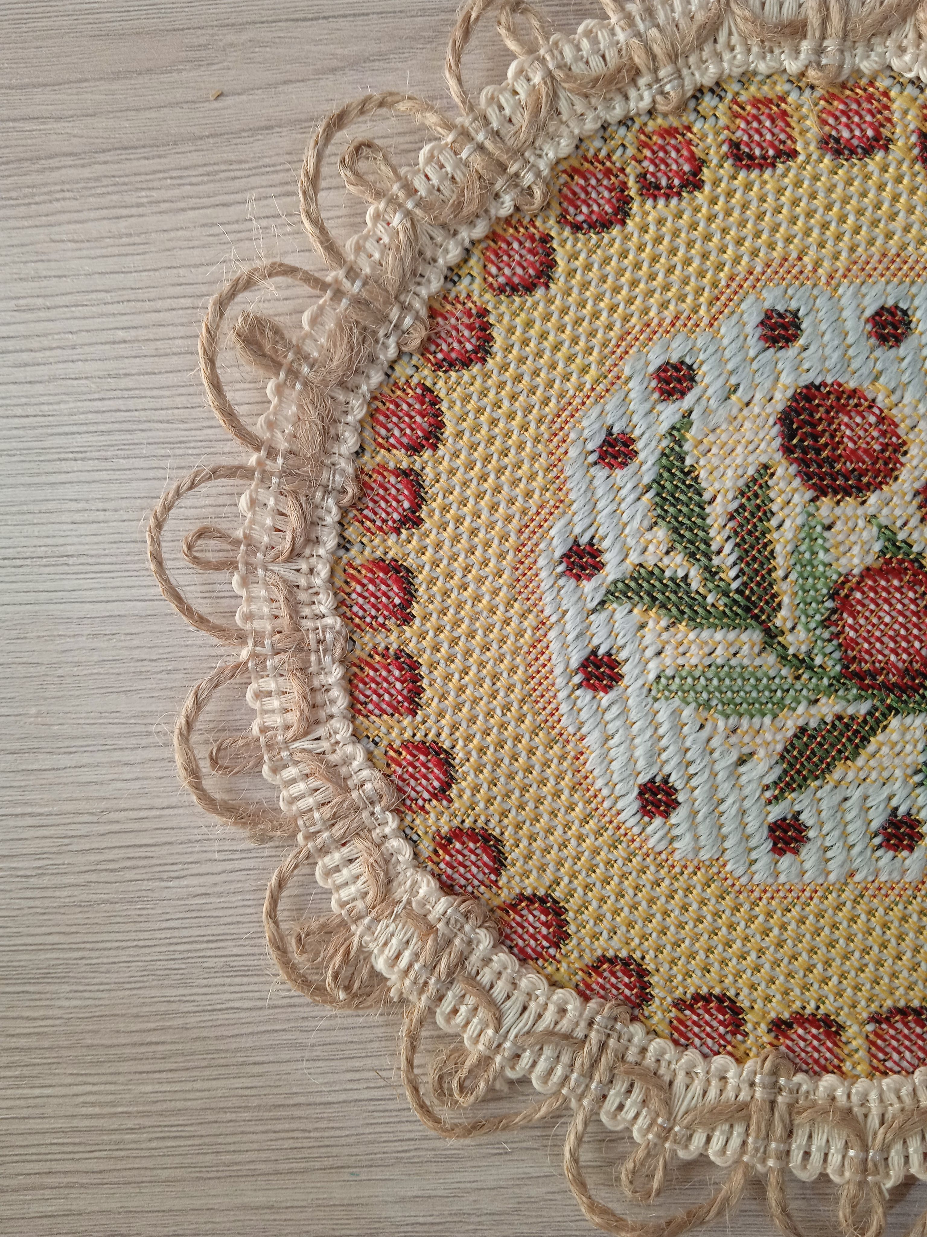 Декоративные гобеленовые салфетки это приятное и полезное украшение для сервировки стола. Салфетки могут продаваться по одной или наборами от двух до десяти штук. Форма, размер, цвет и рисунок салфеток можно выбрать по желанию покупателя. Декоративные салфетки круглой и овальной формы как правило обработаны красивой декоративной тесьмой подходящей по цвету к рисунку на ткани. Цвет тесьмы может отличаться от представленного на фото. Гобеленовые декоративные салфетки не только модный, красивый предмет интерьера но и полезны и практичны в использовании. Салфетки помогут предохранить поверхность мебели от повреждения. Гобеленовые салфетки устойчивы к загрязнению, хорошо стираются при температуре 30 градусов на дают усадки не линяют. Изделия из гобеленовой ткани имеют длительный срок службы и сохраняют первоначальный вид и форму.