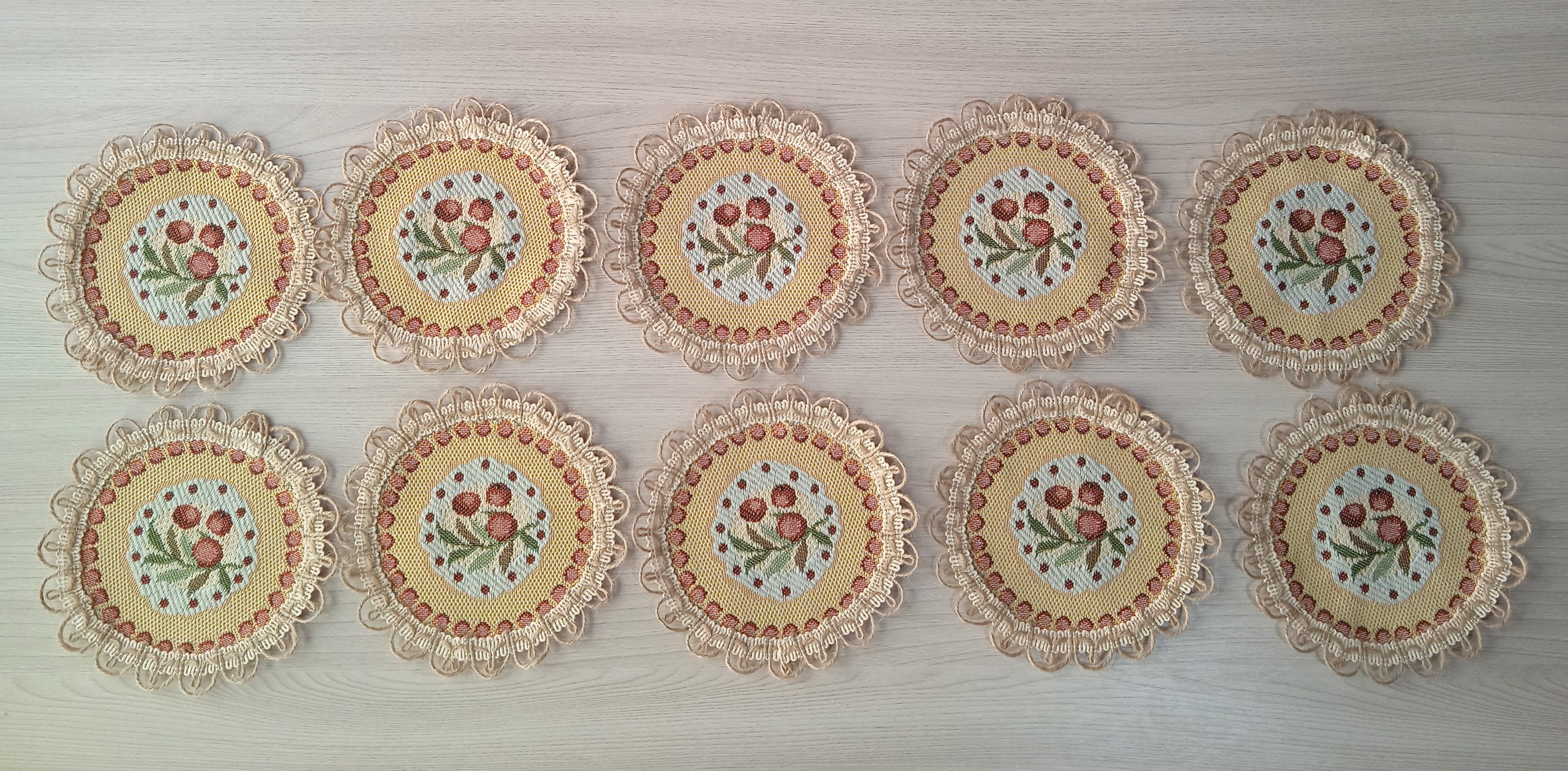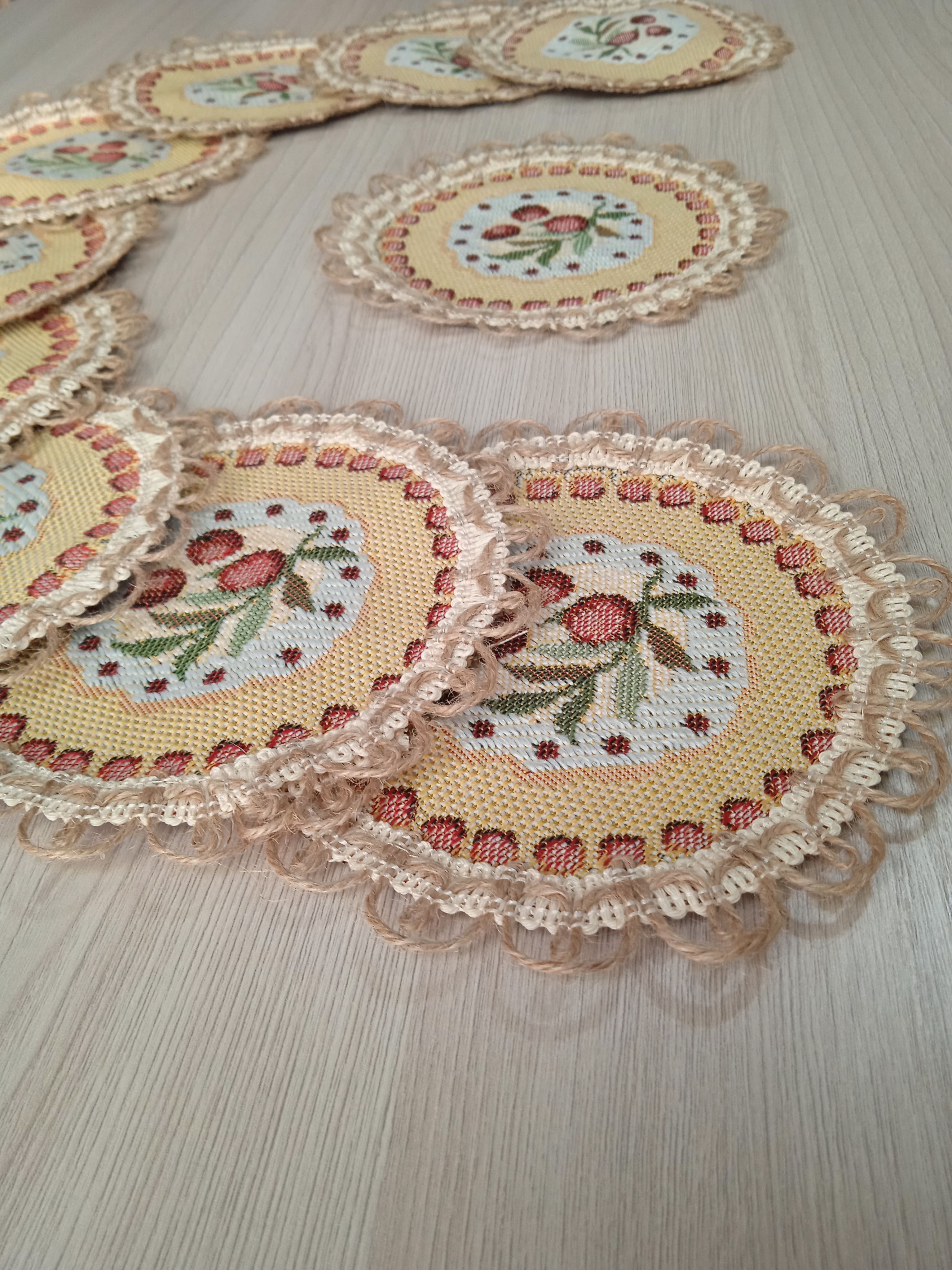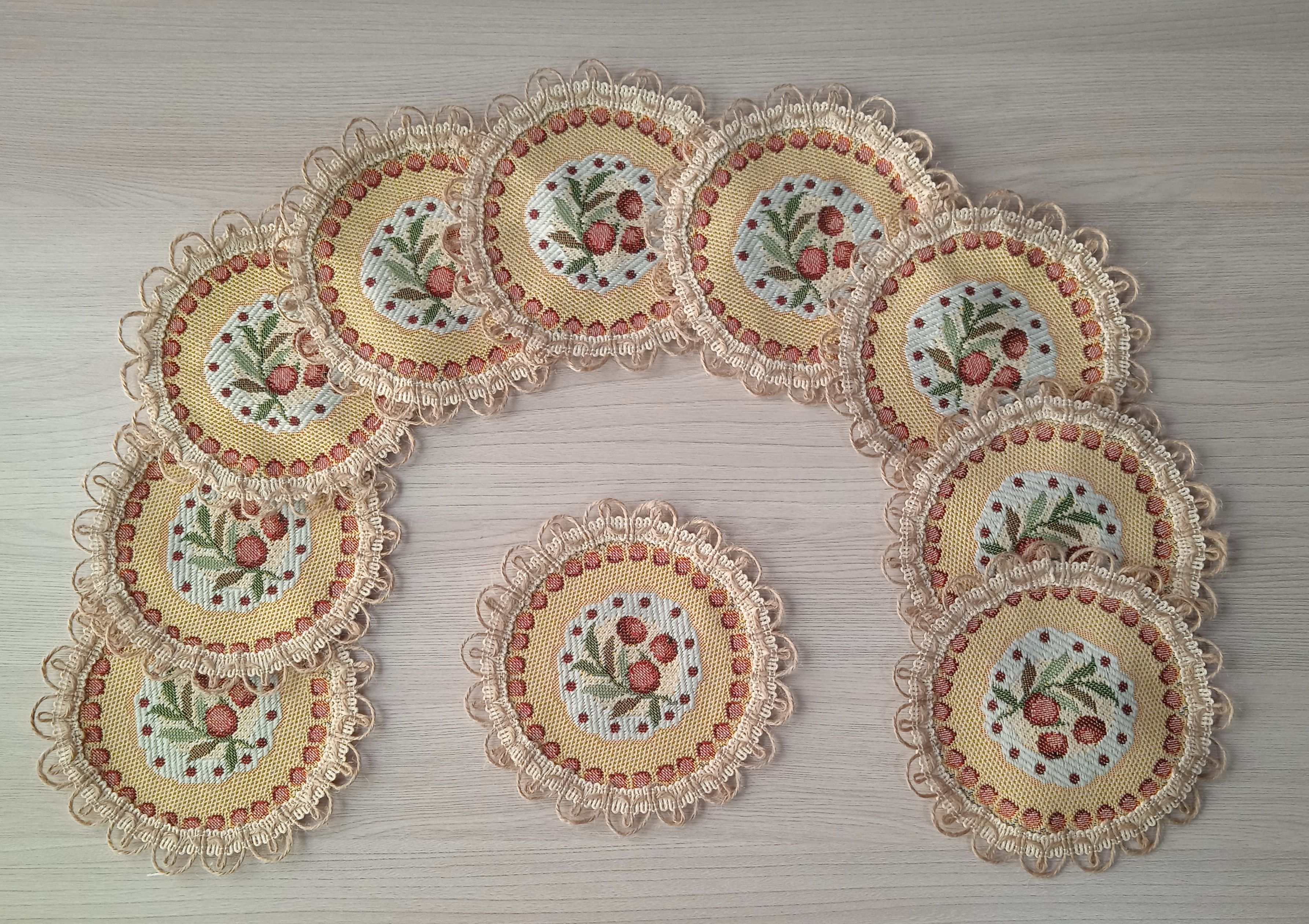Декоративные гобеленовые салфетки это приятное и полезное украшение для сервировки стола. Салфетки могут продаваться по одной или наборами от двух до десяти штук. Форма, размер, цвет и рисунок салфеток можно выбрать по желанию покупателя. Декоративные салфетки круглой и овальной формы как правило обработаны красивой декоративной тесьмой подходящей по цвету к рисунку на ткани. Цвет тесьмы может отличаться от представленного на фото. Гобеленовые декоративные салфетки не только модный, красивый предмет интерьера но и полезны и практичны в использовании. Салфетки помогут предохранить поверхность мебели от повреждения. Гобеленовые салфетки устойчивы к загрязнению, хорошо стираются при температуре 30 градусов на дают усадки не линяют. Изделия из гобеленовой ткани имеют длительный срок службы и сохраняют первоначальный вид и форму.