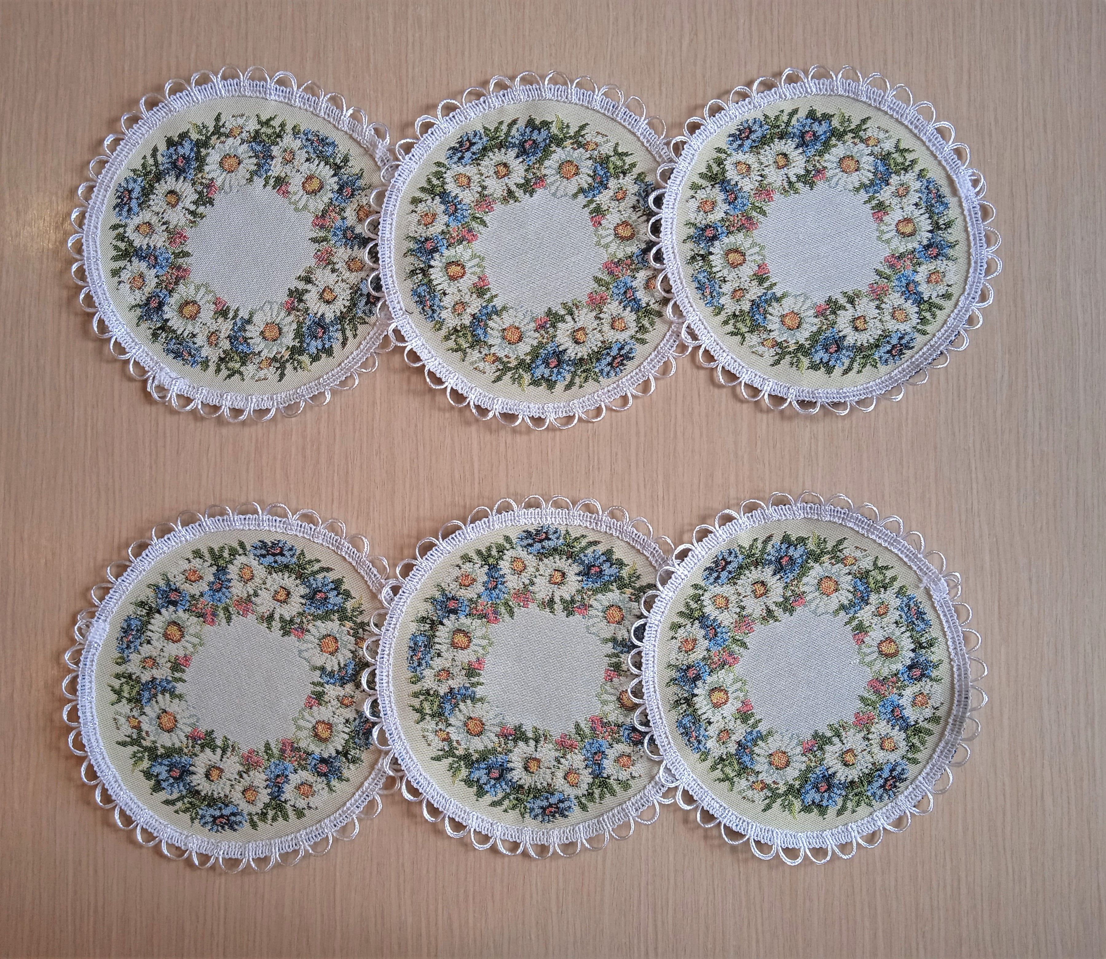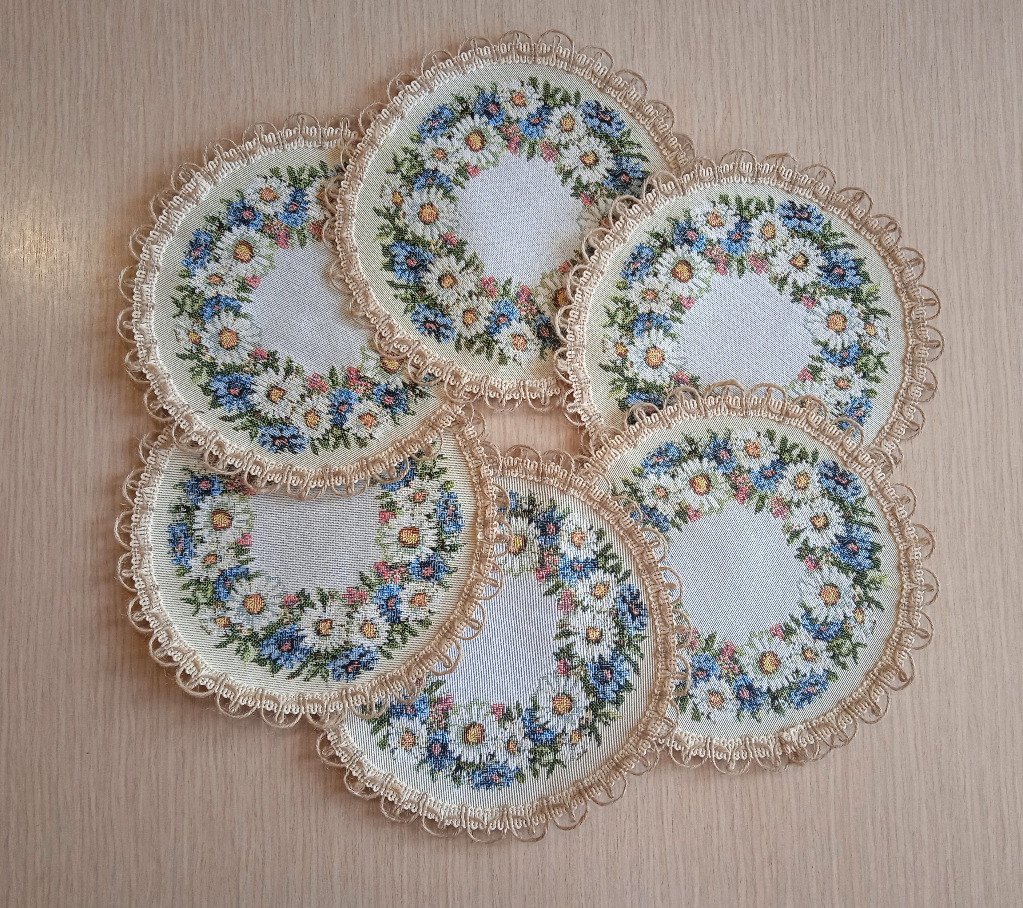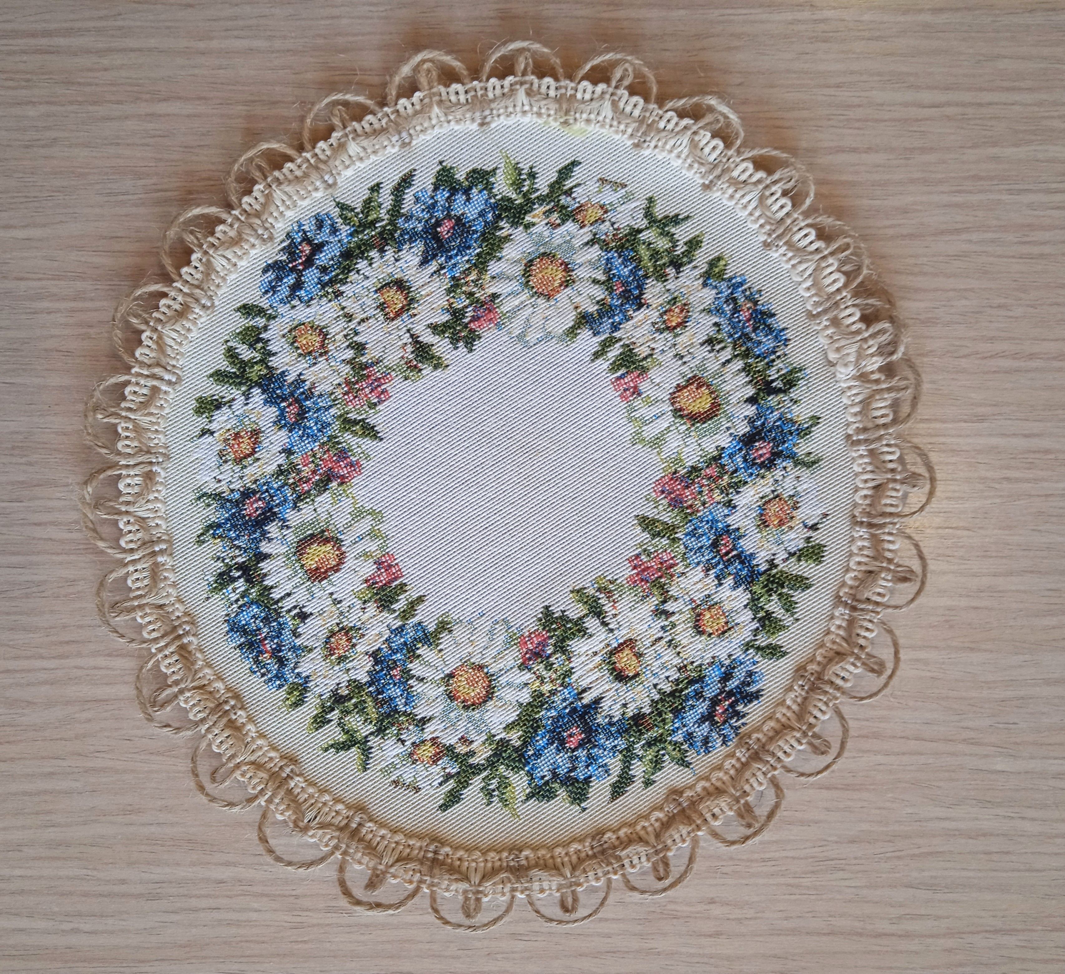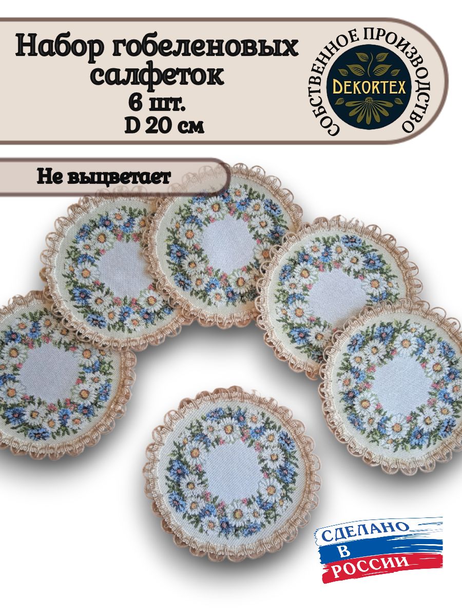 Декоративные гобеленовые салфетки это приятное и полезное украшение для сервировки стола. Салфетки могут продаваться по одной или наборами от двух до десяти штук. Форма, размер, цвет и рисунок салфеток можно выбрать по желанию покупателя. Декоративные салфетки круглой и овальной формы как правило обработаны красивой декоративной тесьмой подходящей по цвету к рисунку на ткани. Цвет тесьмы может отличаться от представленного на фото. Гобеленовые декоративные салфетки не только модный, красивый предмет интерьера но и полезны и практичны в использовании. Салфетки помогут предохранить поверхность мебели от повреждения. Гобеленовые салфетки устойчивы к загрязнению, хорошо стираются при температуре 30 градусов на дают усадки не линяют. Изделия из гобеленовой ткани имеют длительный срок службы и сохраняют первоначальный вид и форму.
