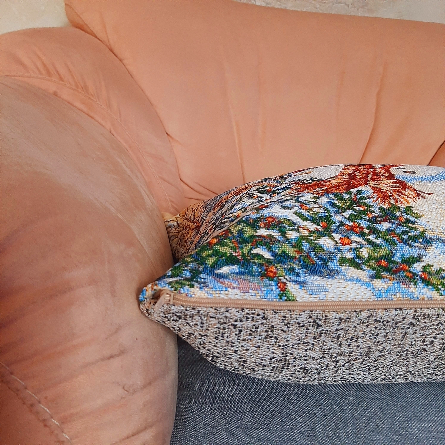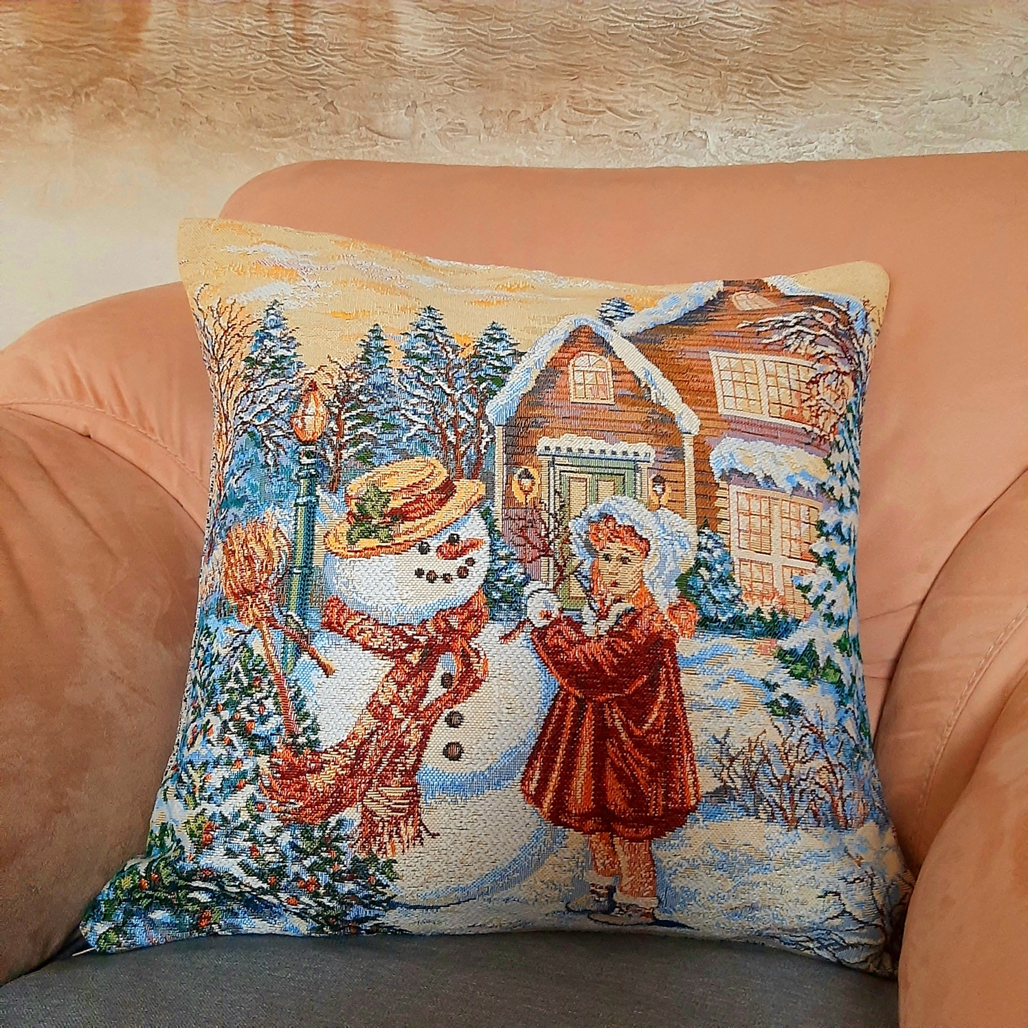 Гобеленовая наволочка для декоративной подушки. Размер наволочки: 47x47см. производство Россия. Изделие собственного производства сшито из отечественной жаккардовой ткани. Задняя часть выполнена из мебельной рогожки так же Российского производства. Все ткани используемые для производства декоративной наволочки производятся с соблюдением ТУ и ГОСТ РФ. Собственное швейное производство позволяет контролировать качество продукции на всех этапах до поступления на склад и предлагать покупателям товары высокого качества по выгодным ценам. Состав ткани 100% полиэстер. Плотность гобелена 380 г/кв.м. Наволочка подходит для подушек размером от 45 до 50 см. Продается без подушки-наполнителя. Подушку-наполнитель так же можно купит у нас. Размер наволочки может отличаться от заявленного +/- 2 см. Допускается деликатная машинная стирка при температуре 30 градусов. Гладить при средней температуре.