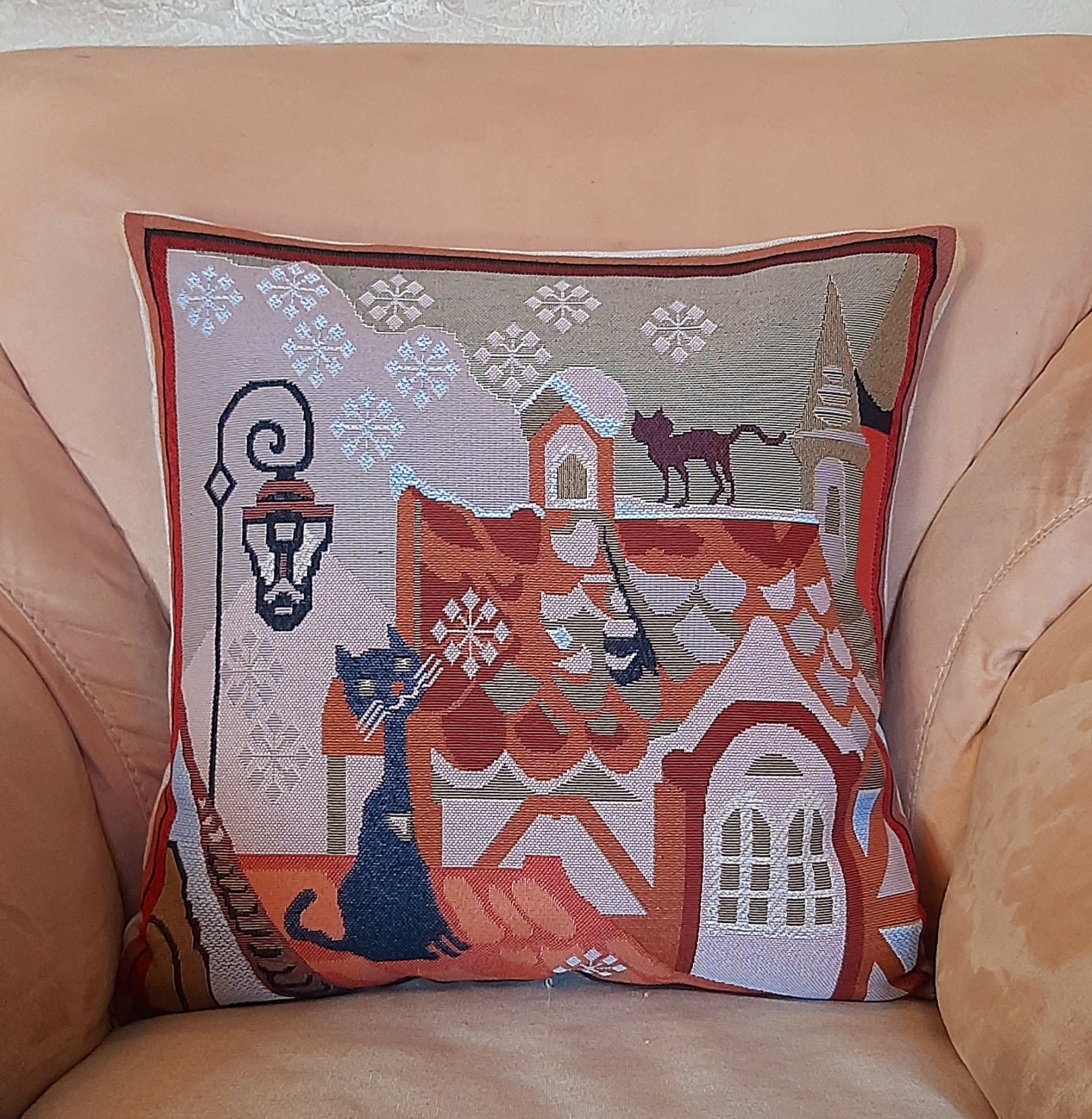 Гобеленовая наволочка для декоративной подушки. Размер наволочки: 45x45см. производство Россия. Изделие собственного производства сшито из отечественной жаккардовой ткани. Задняя часть выполнена из мебельной рогожки так же Российского производства. Все ткани используемые для производства декоративной наволочки производятся с соблюдением ТУ и ГОСТ РФ. Собственное швейное производство позволяет контролировать качество продукции на всех этапах до поступления на склад и предлагать покупателям товары высокого качества по выгодным ценам. Состав ткани 100% полиэстер. Плотность гобелена 380 г/кв.м. Наволочка подходит для подушек размером от 45 до 50 см. Продается без подушки-наполнителя. Подушку-наполнитель так же можно купит у нас. Размер наволочки может отличаться от заявленного +/- 2 см. Допускается деликатная машинная стирка при температуре 30 градусов. Гладить при средней температуре.