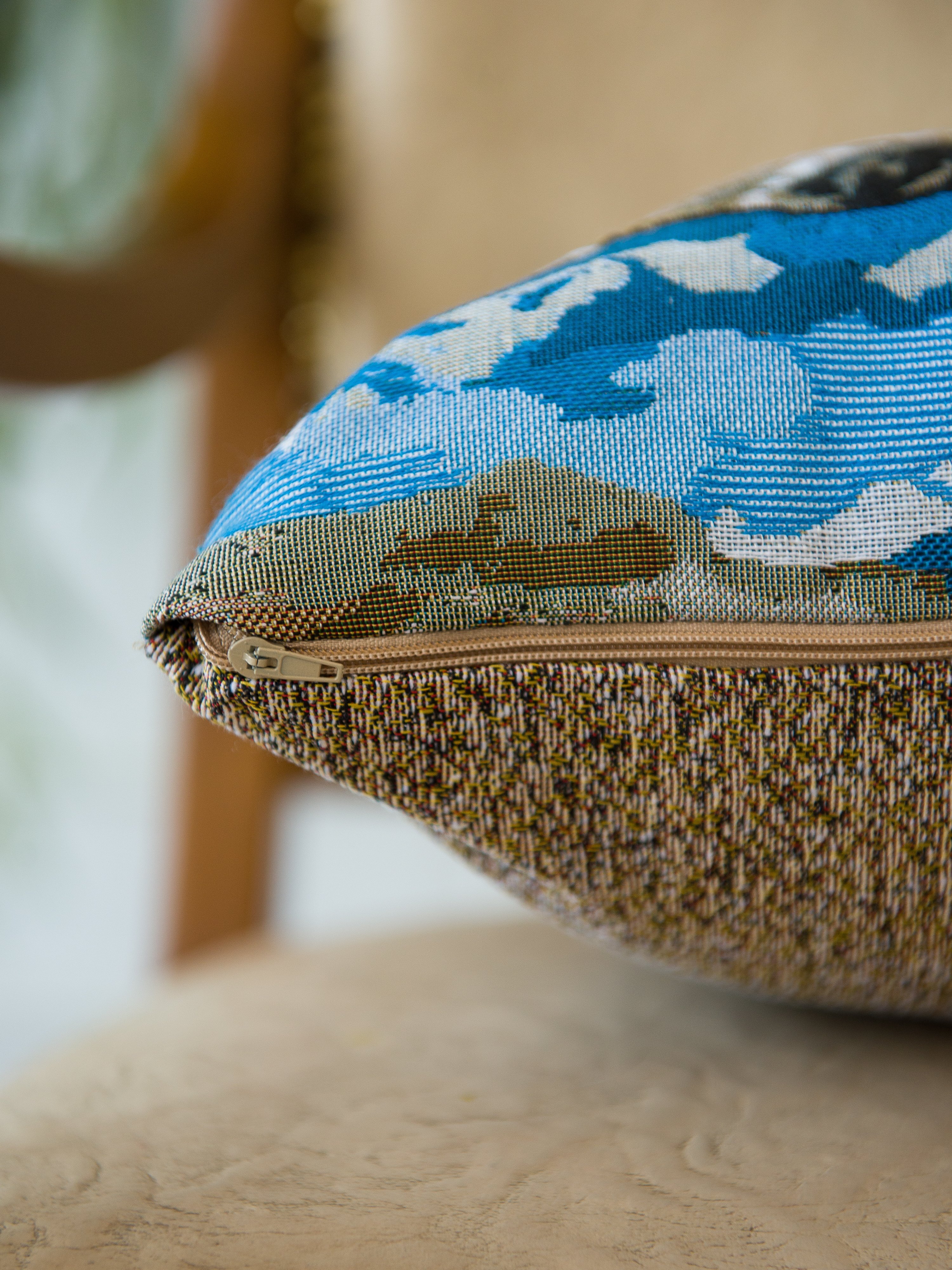 Гобеленовая наволочка для декоративной подушки. Размер наволочки: 38x38см. производство Россия. Изделие собственного производства сшито из отечественной жаккардовой ткани. Задняя часть выполнена из мебельной рогожки так же Российского производства. Все ткани используемые для производства декоративной наволочки производятся с соблюдением ТУ и ГОСТ РФ. Собственное швейное производство позволяет контролировать качество продукции на всех этапах до поступления на склад и предлагать покупателям товары высокого качества по выгодным ценам. Состав ткани 100% полиэстер. Плотность гобелена 380 г/кв.м. Наволочка подходит для подушек размером от 36 до 40 см. Продается без подушки-наполнителя. Подушку-наполнитель так же можно купит у нас. Размер наволочки может отличаться от заявленного +/- 2 см. Допускается деликатная машинная стирка при температуре 30 градусов. Гладить при средней температуре.