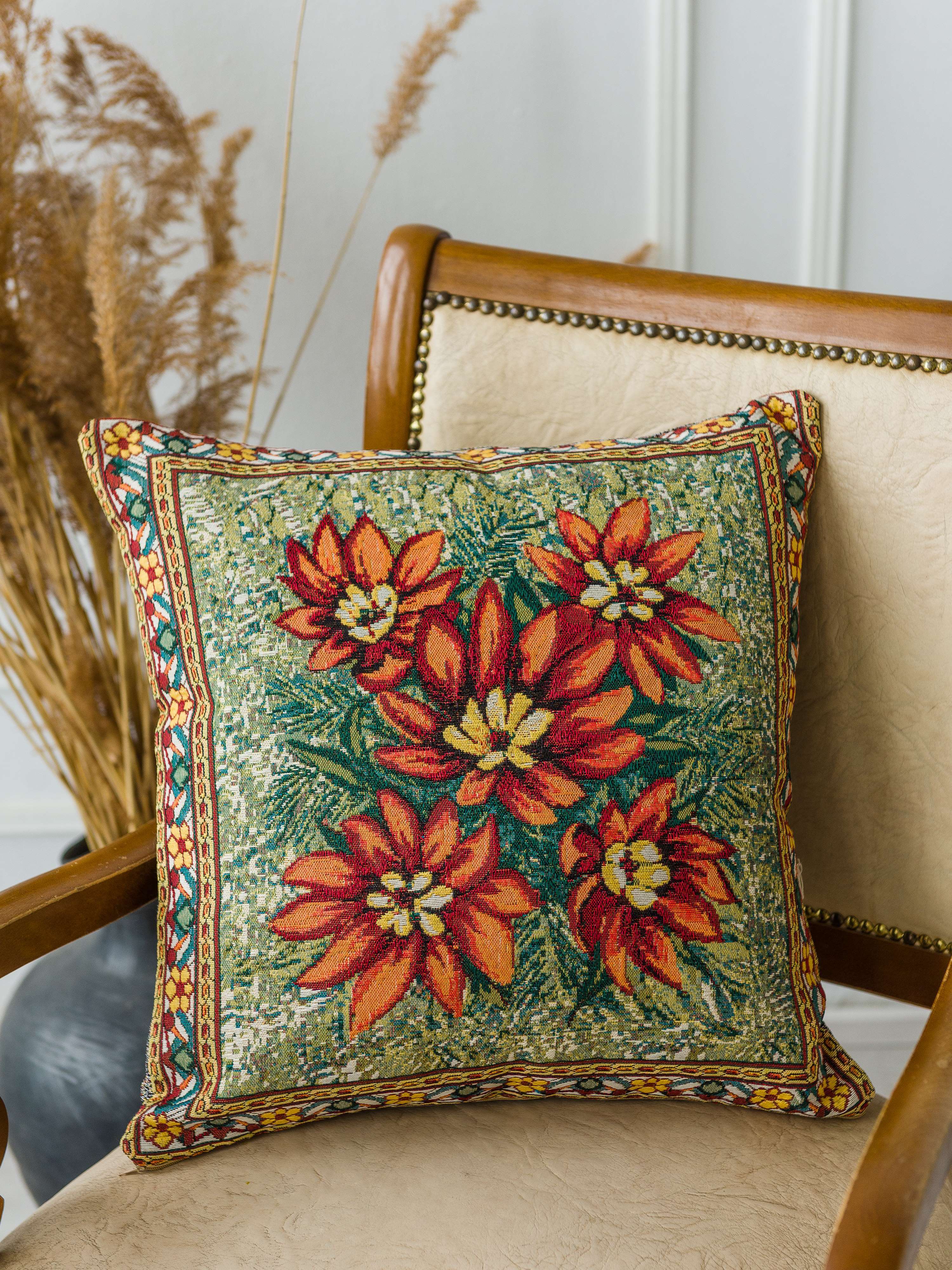 Гобеленовая наволочка для декоративной подушки. Размер наволочки: 38x38см. производство Россия. Изделие собственного производства сшито из отечественной жаккардовой ткани. Задняя часть выполнена из мебельной рогожки так же Российского производства. Все ткани используемые для производства декоративной наволочки производятся с соблюдением ТУ и ГОСТ РФ. Собственное швейное производство позволяет контролировать качество продукции на всех этапах до поступления на склад и предлагать покупателям товары высокого качества по выгодным ценам. Состав ткани 100% полиэстер. Плотность гобелена 380 г/кв.м. Наволочка подходит для подушек размером от 36 до 40 см. Продается без подушки-наполнителя. Подушку-наполнитель так же можно купит у нас. Размер наволочки может отличаться от заявленного +/- 2 см. Допускается деликатная машинная стирка при температуре 30 градусов. Гладить при средней температуре.