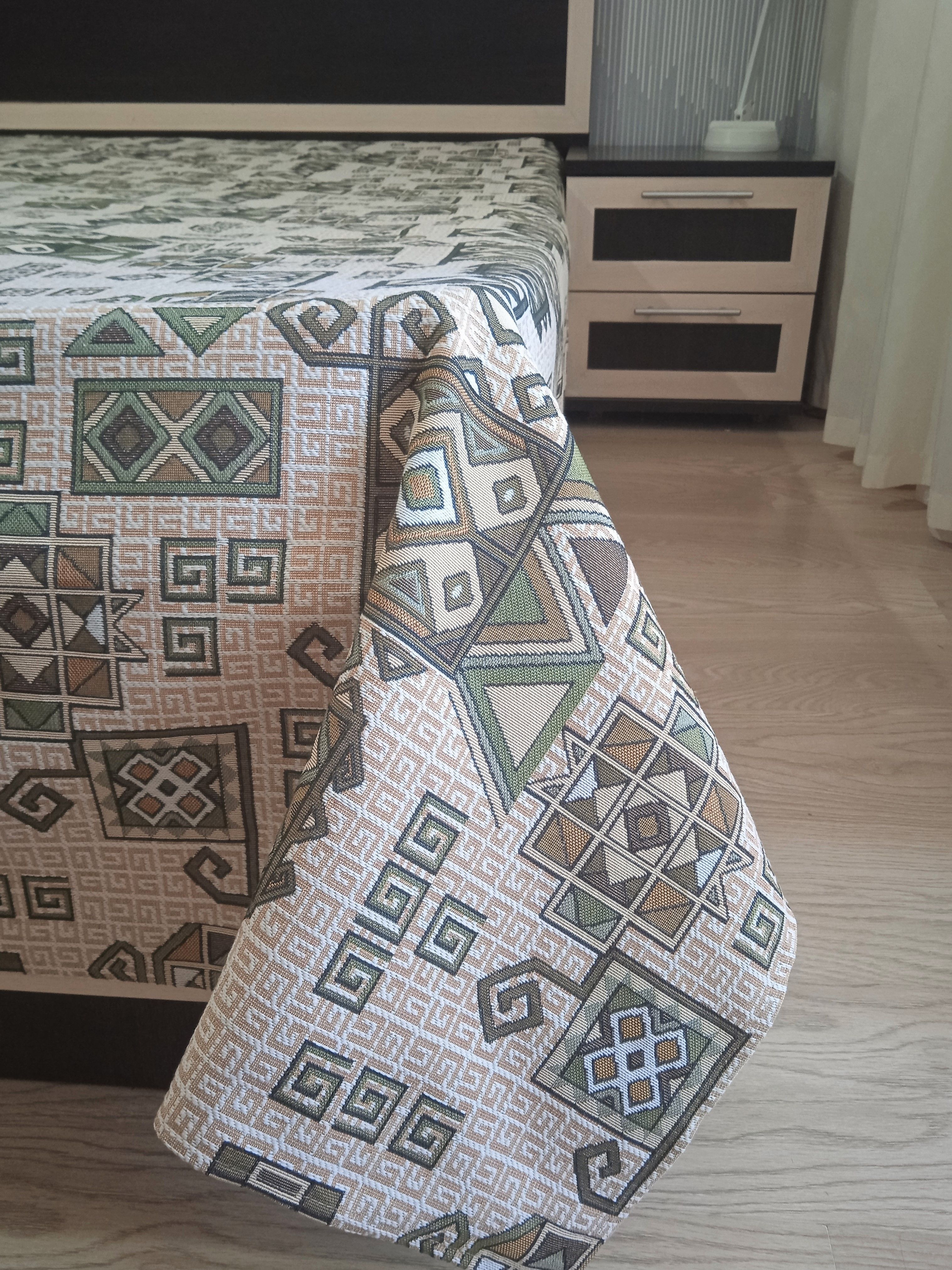 Благодаря высокому качеству гобелена покрывало устойчиво к вытиранию и образованию зацепок, не деформируется и не садится после стирки. Рисунок, отличающийся насыщенностью и стойкостью красок, со временем не потускнеет и будет радовать вас на протяжении долгих лет.