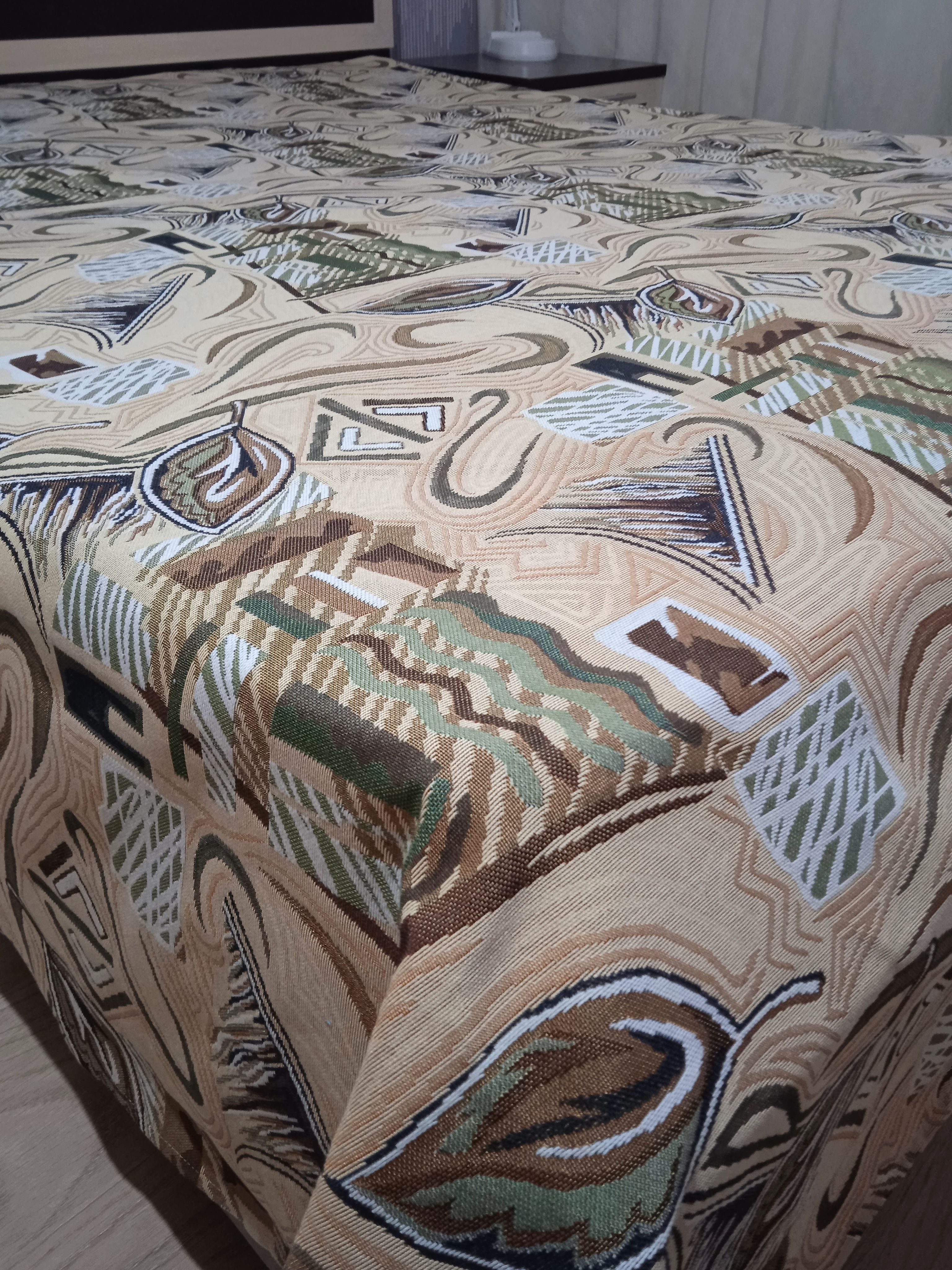 Благодаря высокому качеству гобелена покрывало устойчиво к вытиранию и образованию зацепок, не деформируется и не садится после стирки. Рисунок, отличающийся насыщенностью и стойкостью красок, со временем не потускнеет и будет радовать вас на протяжении долгих лет.