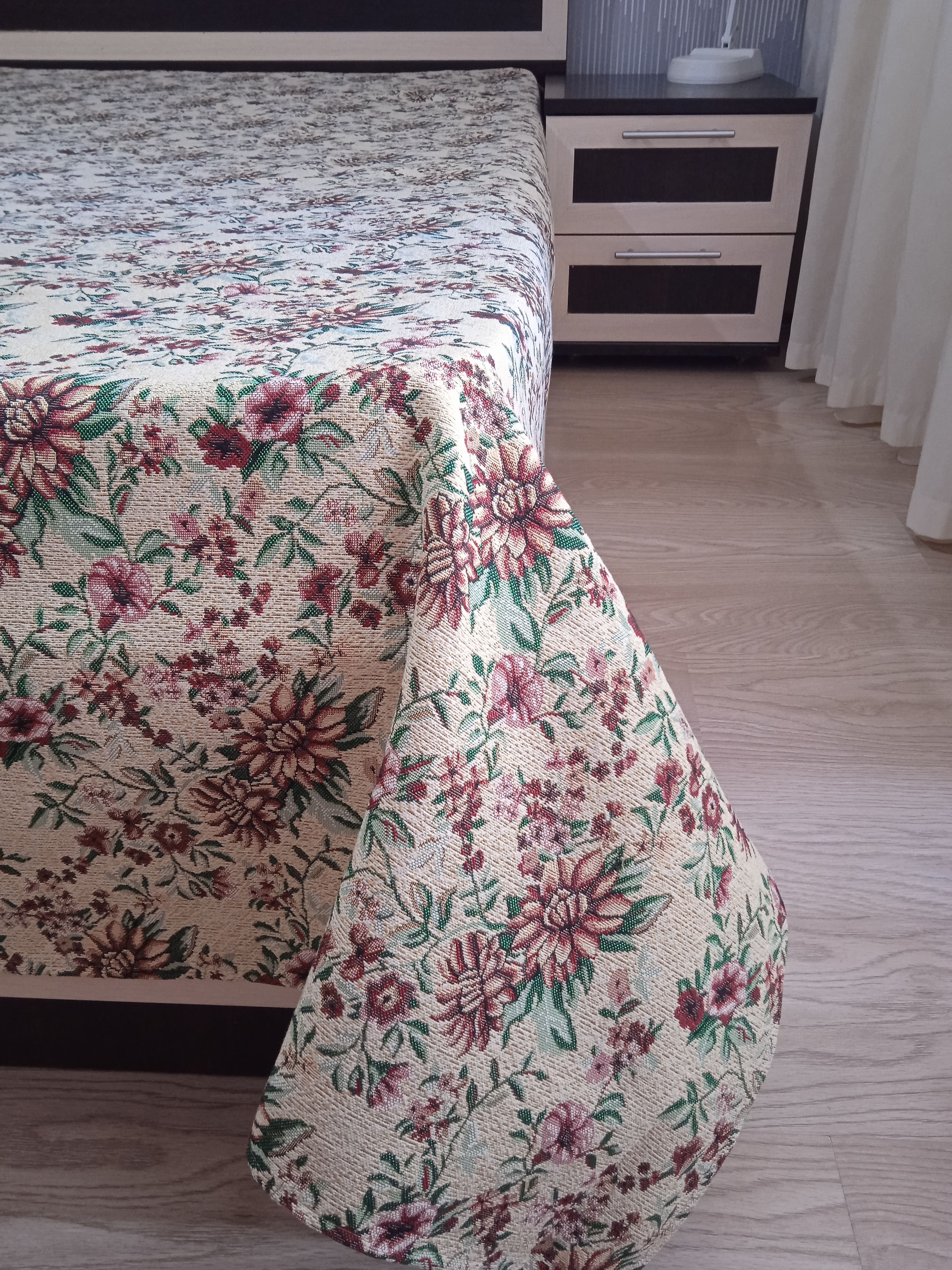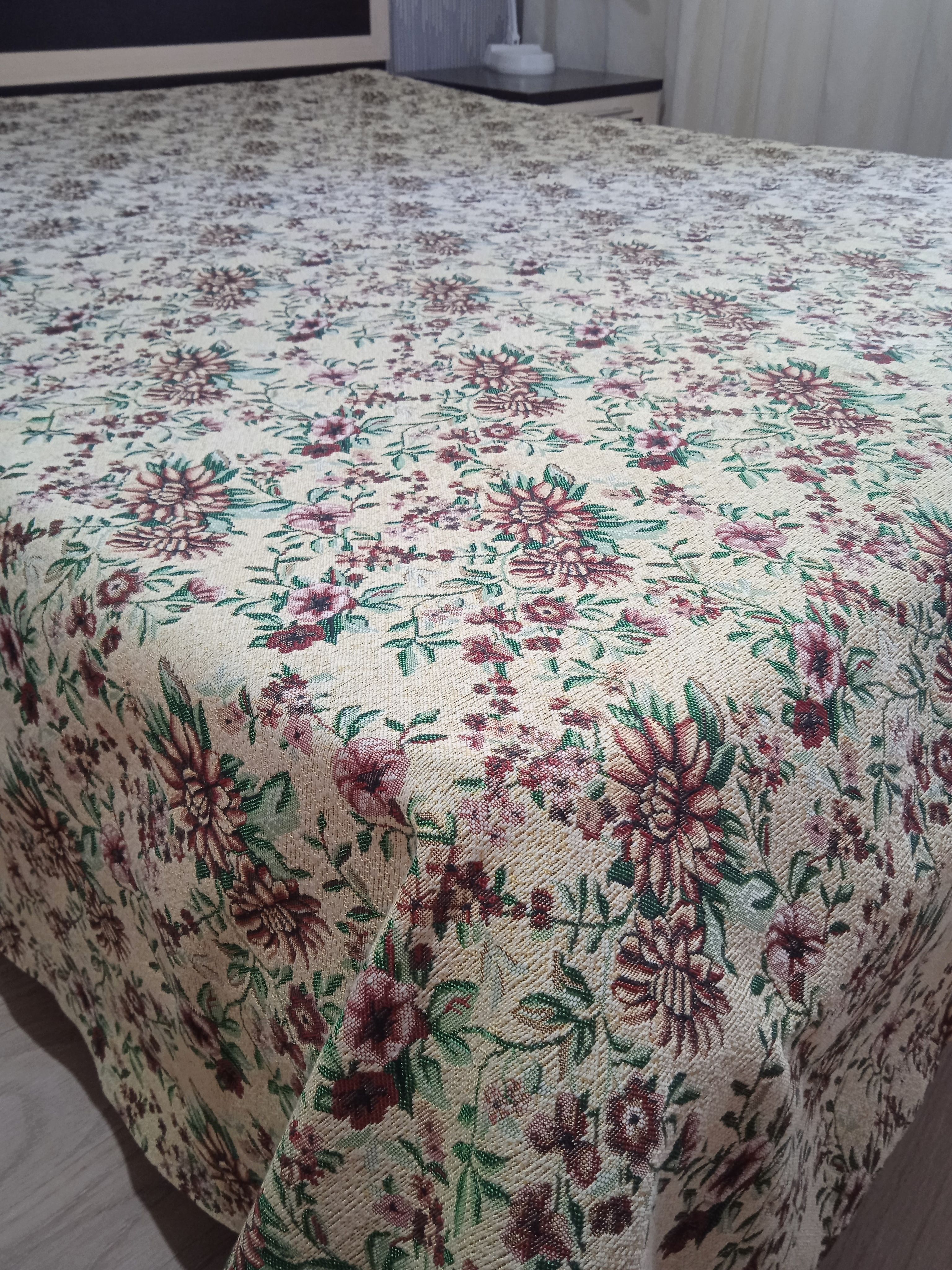 Благодаря высокому качеству гобелена покрывало устойчиво к вытиранию и образованию зацепок, не деформируется и не садится после стирки. Рисунок, отличающийся насыщенностью и стойкостью красок, со временем не потускнеет и будет радовать вас на протяжении долгих лет.