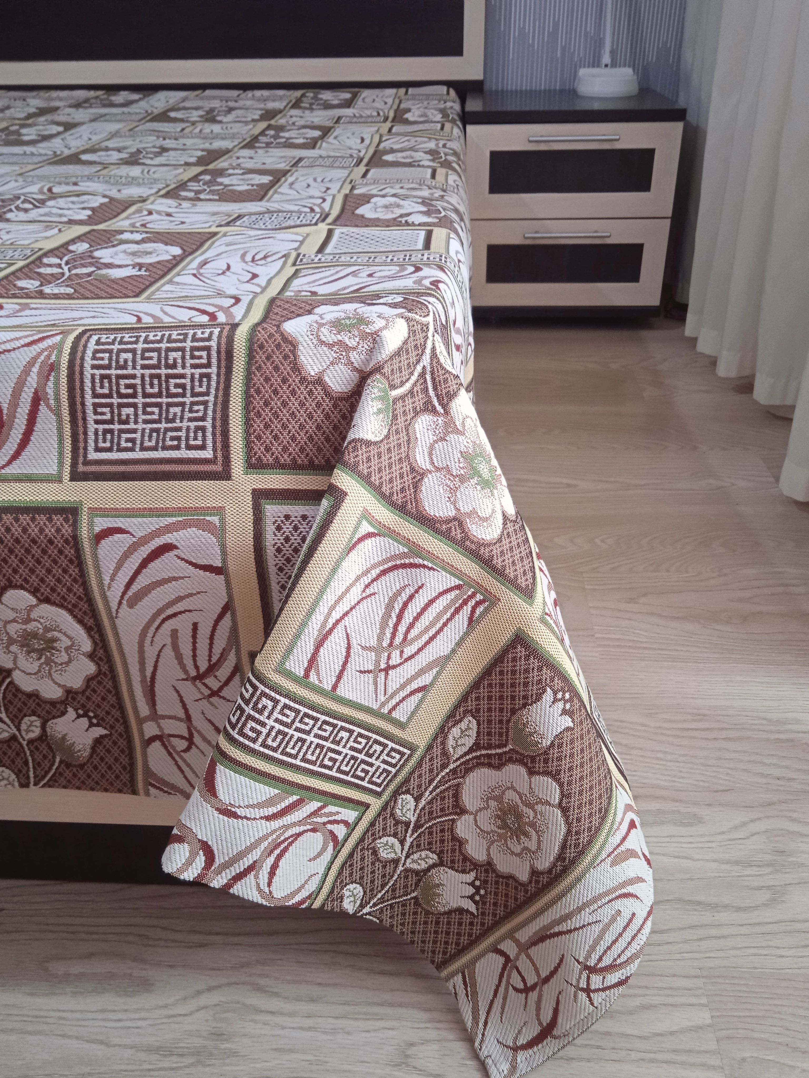 Благодаря высокому качеству гобелена покрывало устойчиво к вытиранию и образованию зацепок, не деформируется и не садится после стирки. Рисунок, отличающийся насыщенностью и стойкостью красок, со временем не потускнеет и будет радовать вас на протяжении долгих лет.