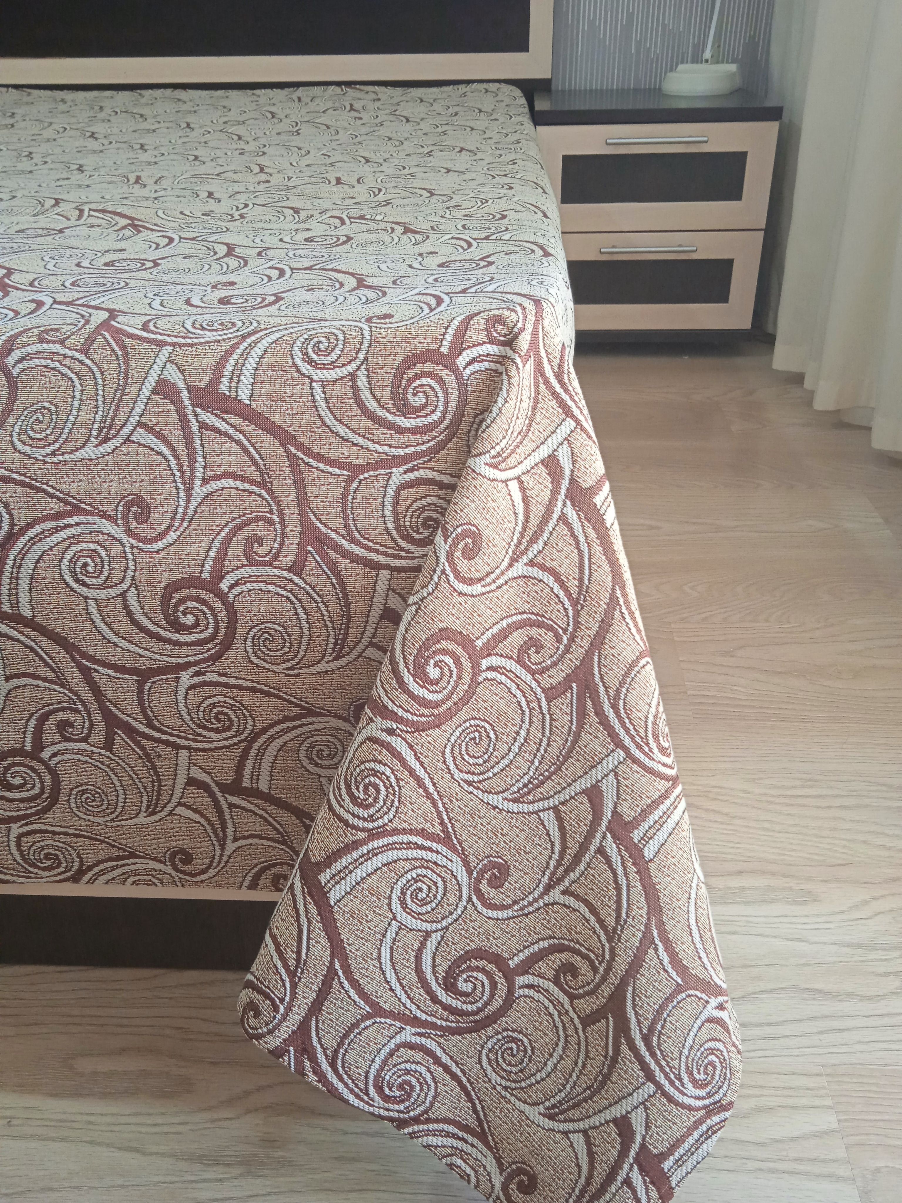 Благодаря высокому качеству гобелена покрывало устойчиво к вытиранию и образованию зацепок, не деформируется и не садится после стирки. Рисунок, отличающийся насыщенностью и стойкостью красок, со временем не потускнеет и будет радовать вас на протяжении долгих лет.