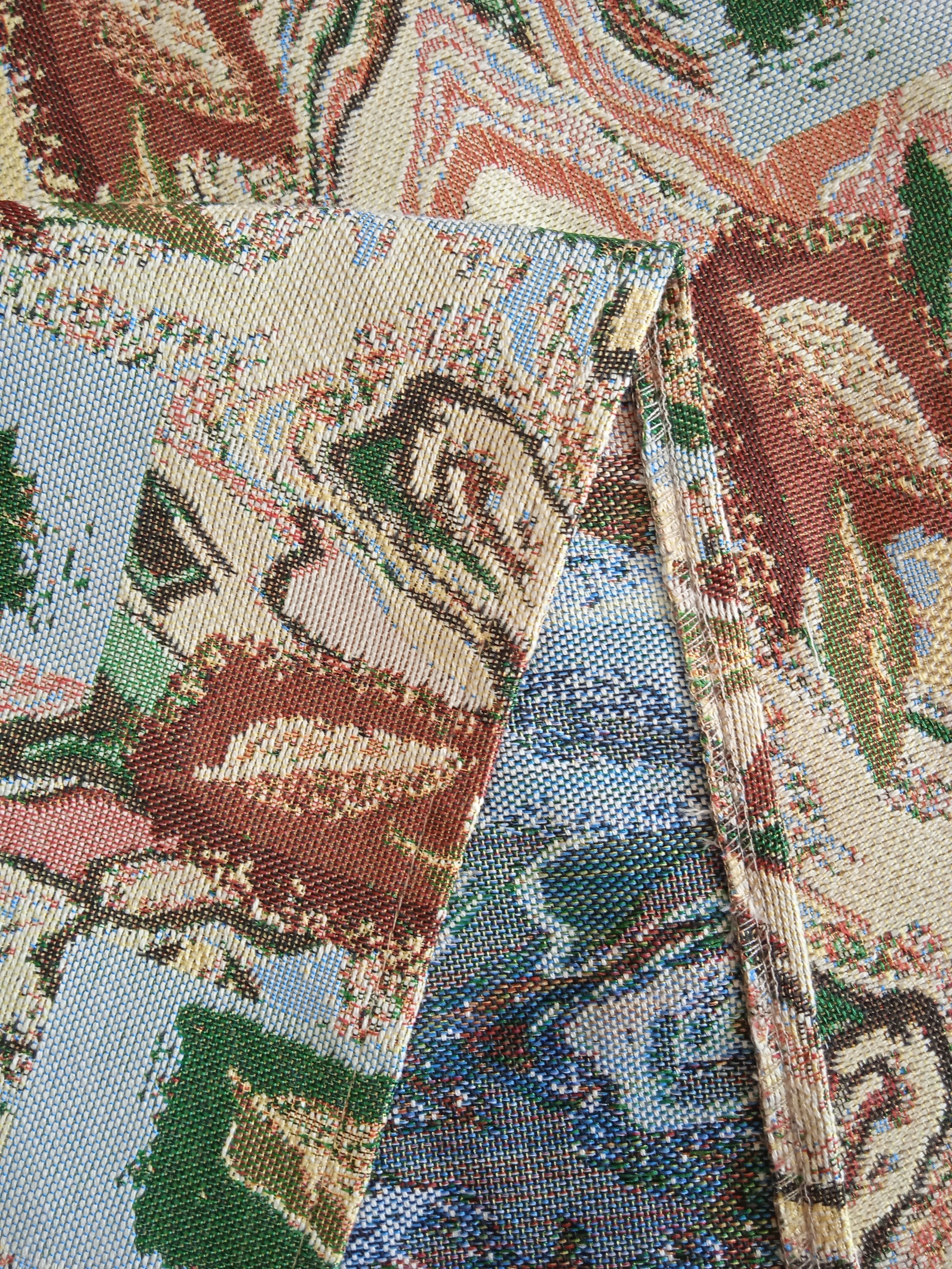 Благодаря высокому качеству гобелена покрывало устойчиво к вытиранию и образованию зацепок, не деформируется и не садится после стирки. Рисунок, отличающийся насыщенностью и стойкостью красок, со временем не потускнеет и будет радовать вас на протяжении долгих лет.
