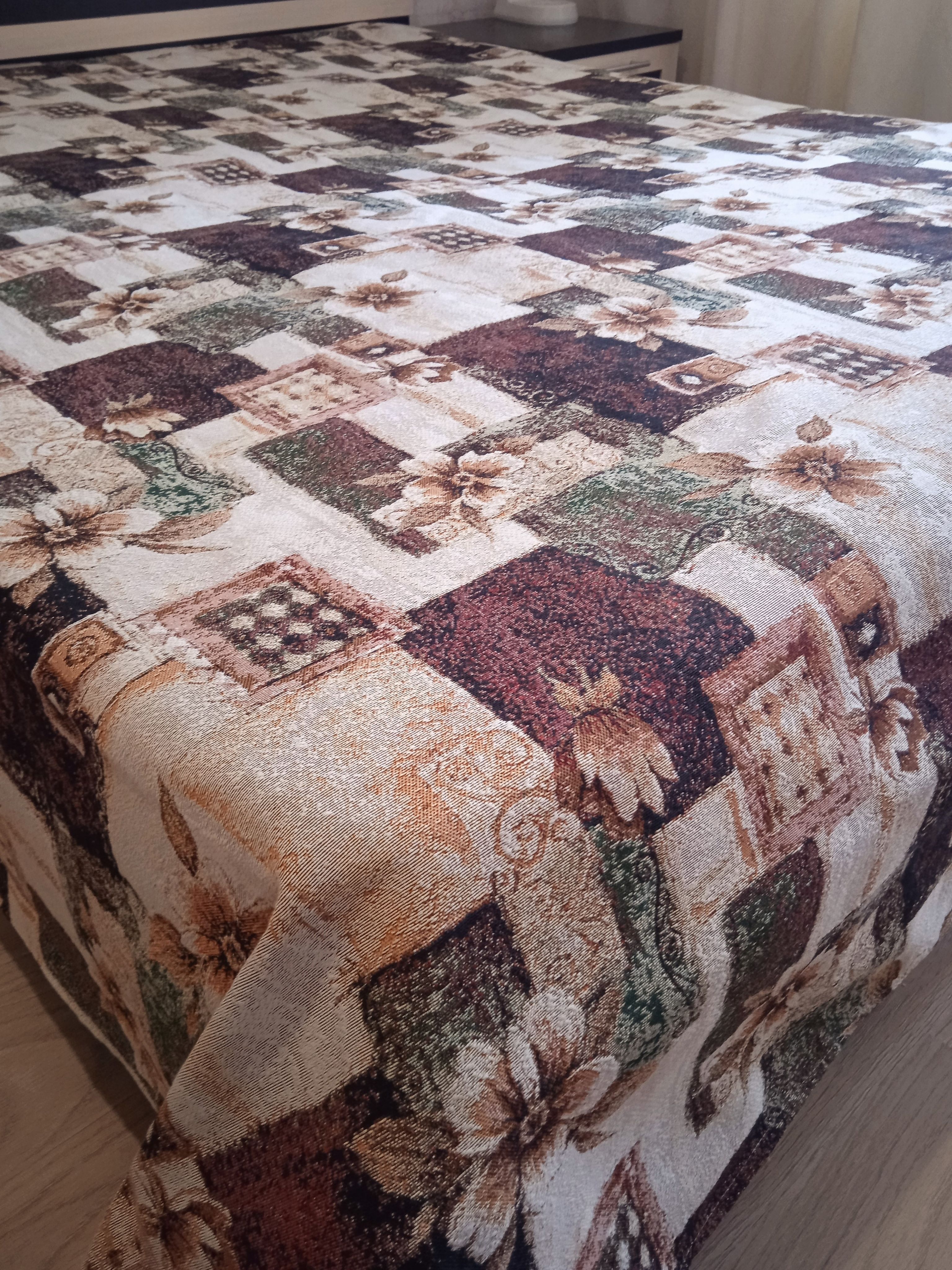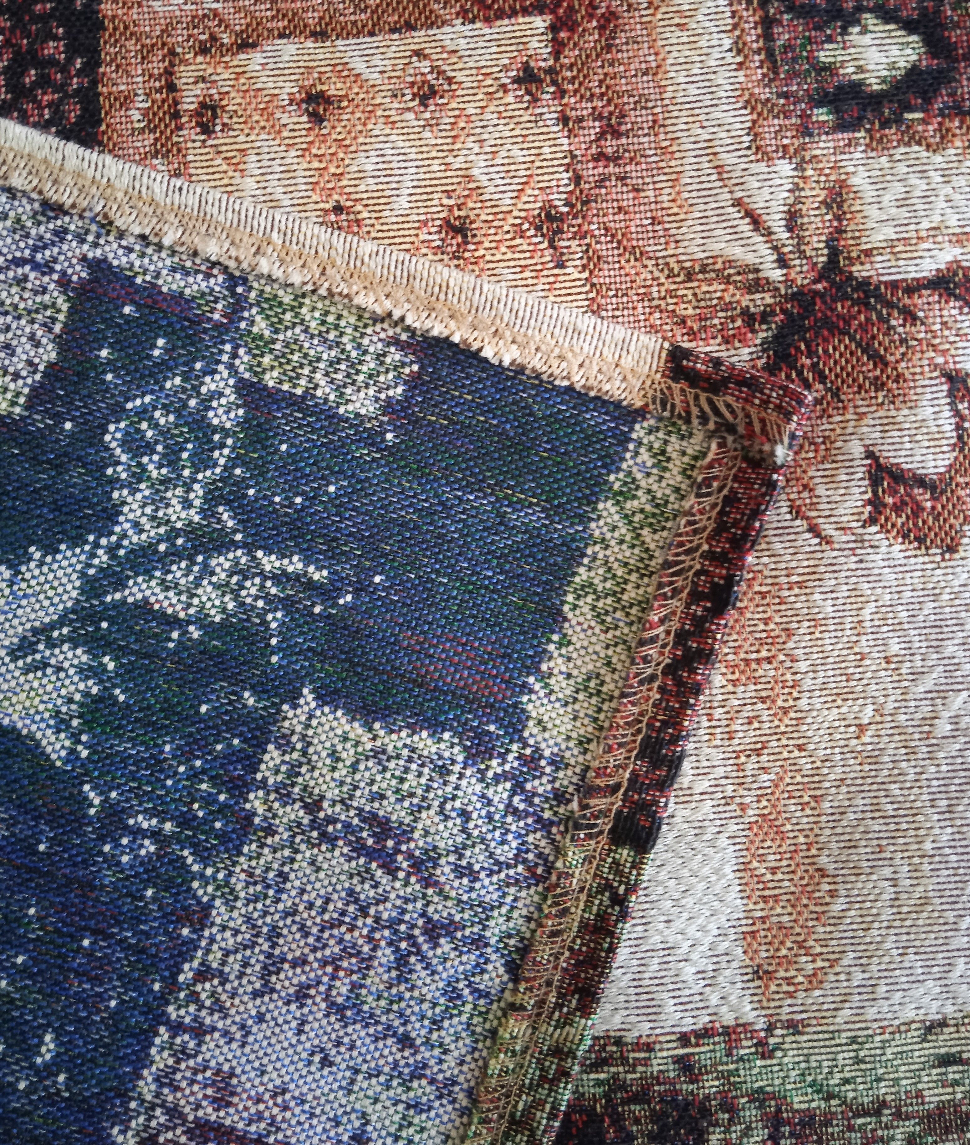 Благодаря высокому качеству гобелена покрывало устойчиво к вытиранию и образованию зацепок, не деформируется и не садится после стирки. Рисунок, отличающийся насыщенностью и стойкостью красок, со временем не потускнеет и будет радовать вас на протяжении долгих лет.
