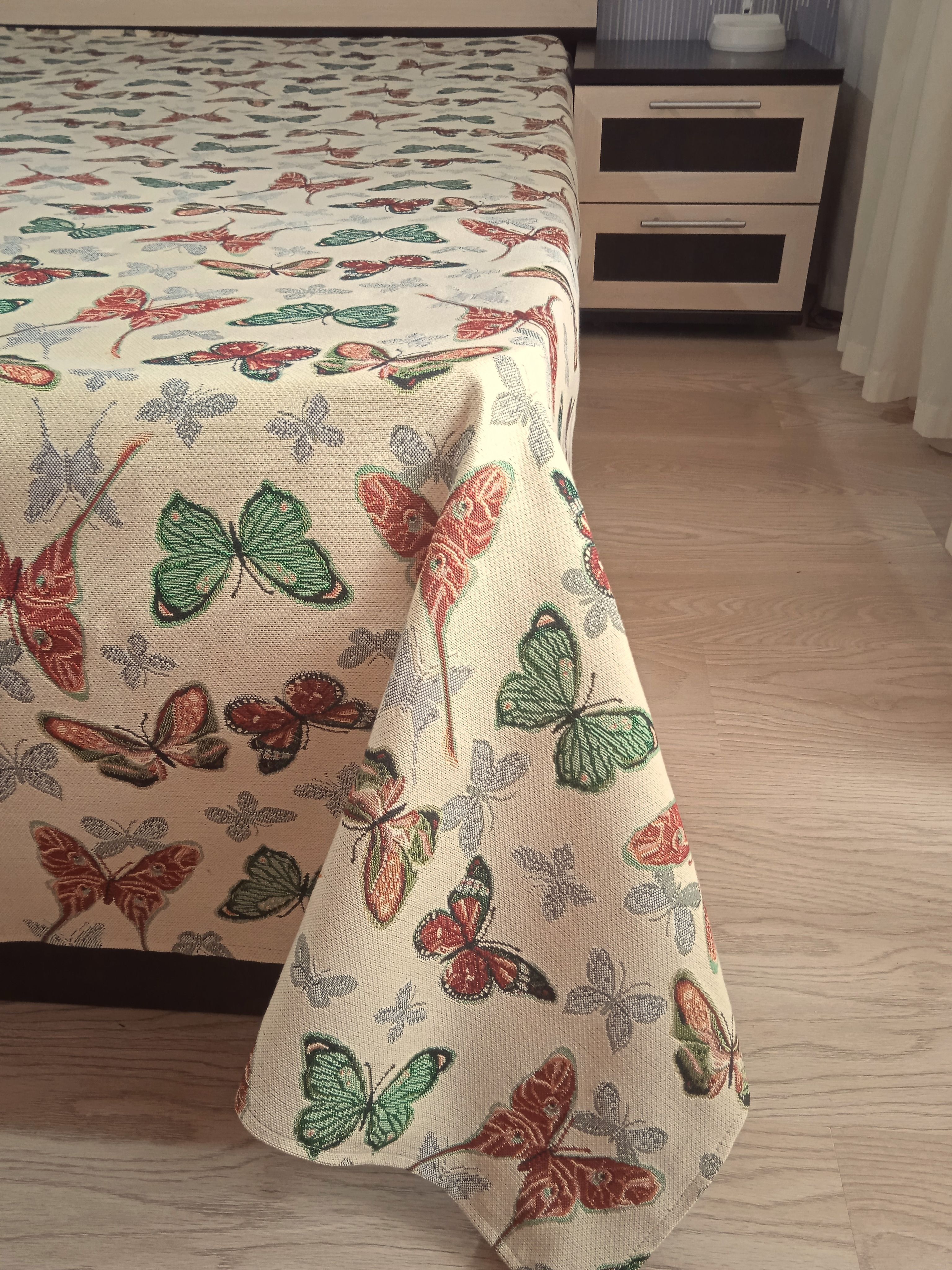 Благодаря высокому качеству гобелена покрывало устойчиво к вытиранию и образованию зацепок, не деформируется и не садится после стирки. Рисунок, отличающийся насыщенностью и стойкостью красок, со временем не потускнеет и будет радовать вас на протяжении долгих лет.