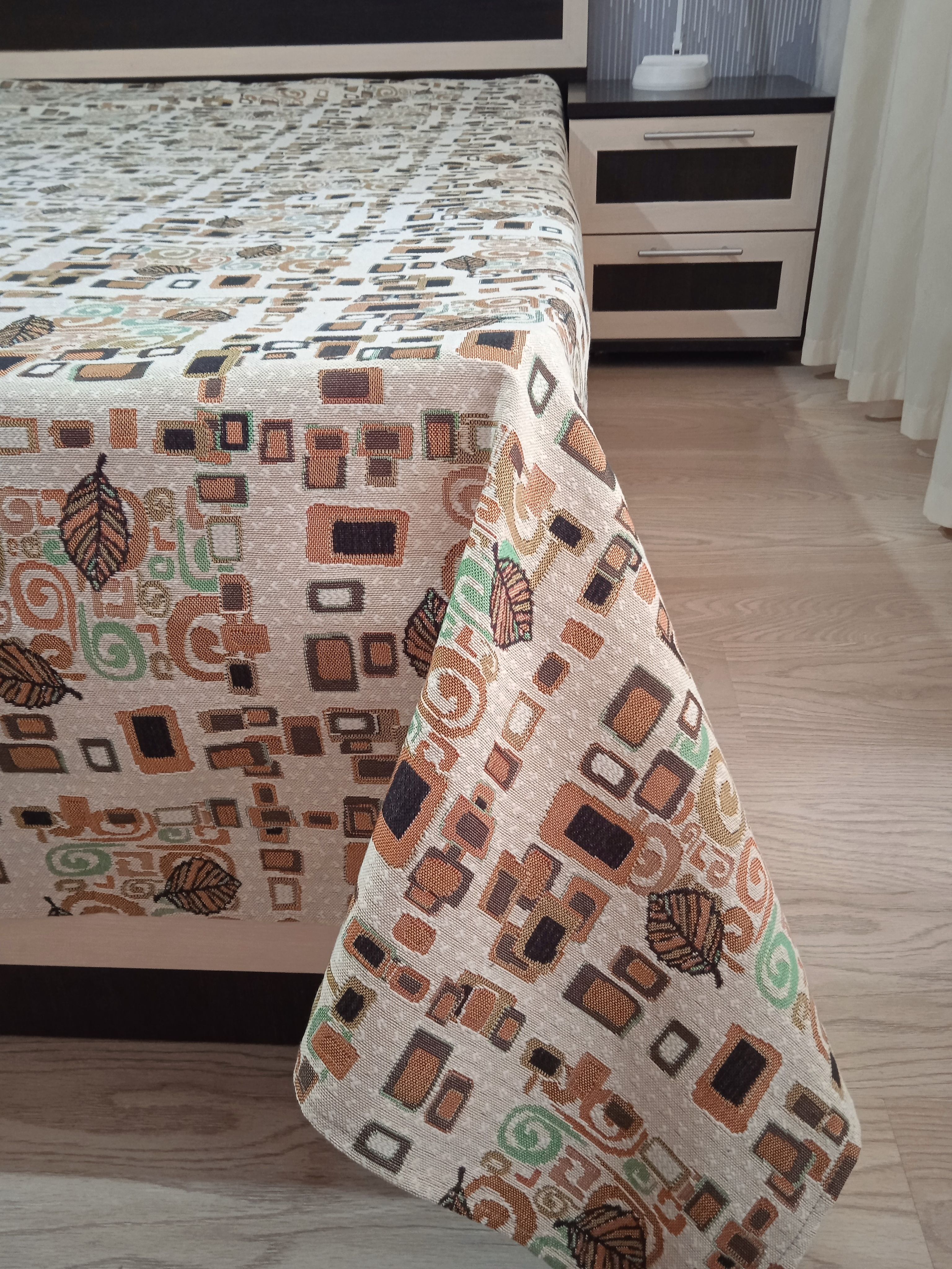 Благодаря высокому качеству гобелена покрывало устойчиво к вытиранию и образованию зацепок, не деформируется и не садится после стирки. Рисунок, отличающийся насыщенностью и стойкостью красок, со временем не потускнеет и будет радовать вас на протяжении долгих лет.