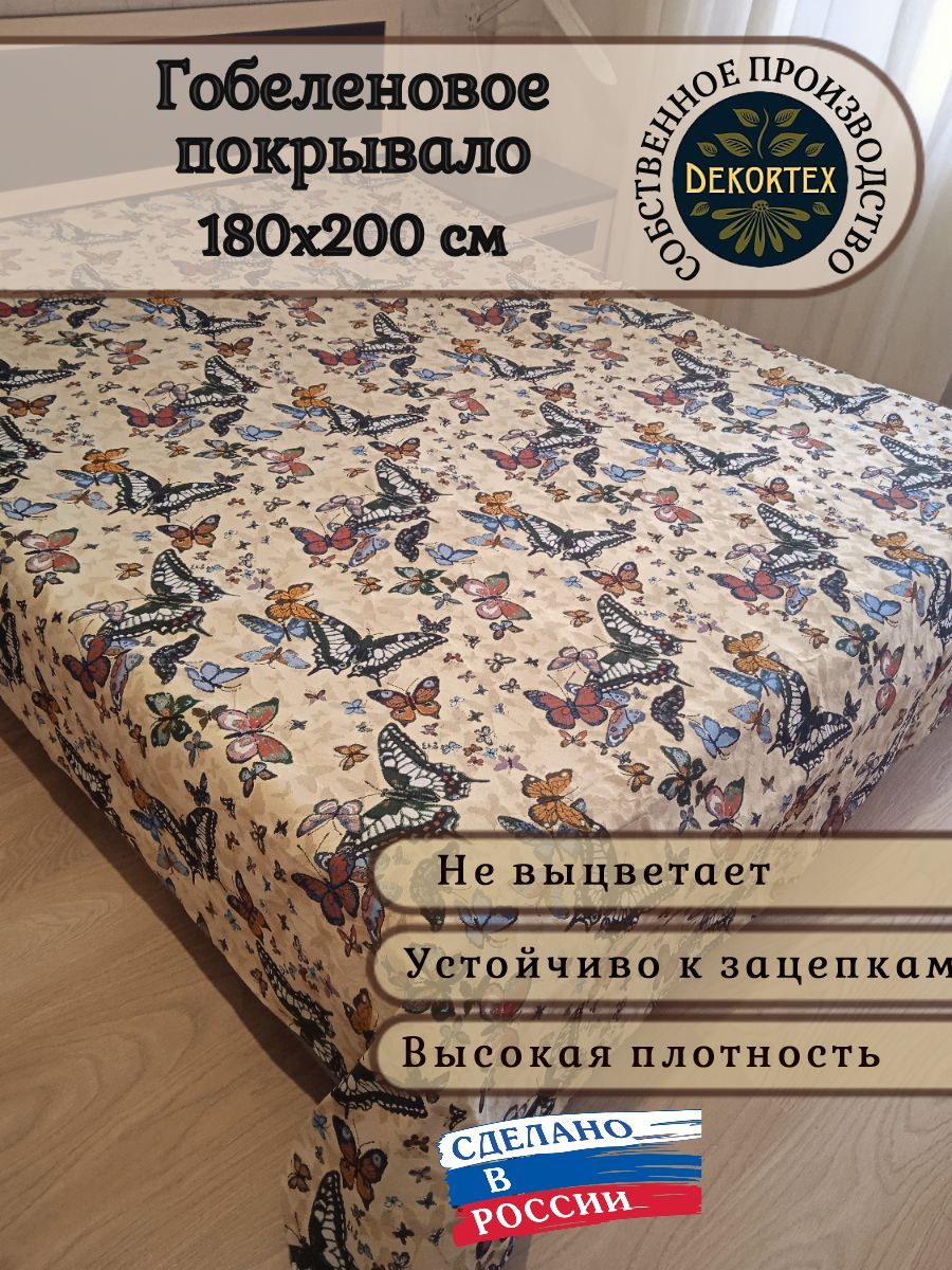 Гобеленовое покрывало «Бабочки» собственного производства выполнено из износостойкого, Российского полиэстера с высокой плотностью. Собственное швейное производство позволяет контролировать качество продукции на всех этапах до поступления на склад и предлагать покупателям высококачественные товары по выгодным ценам от производителя.