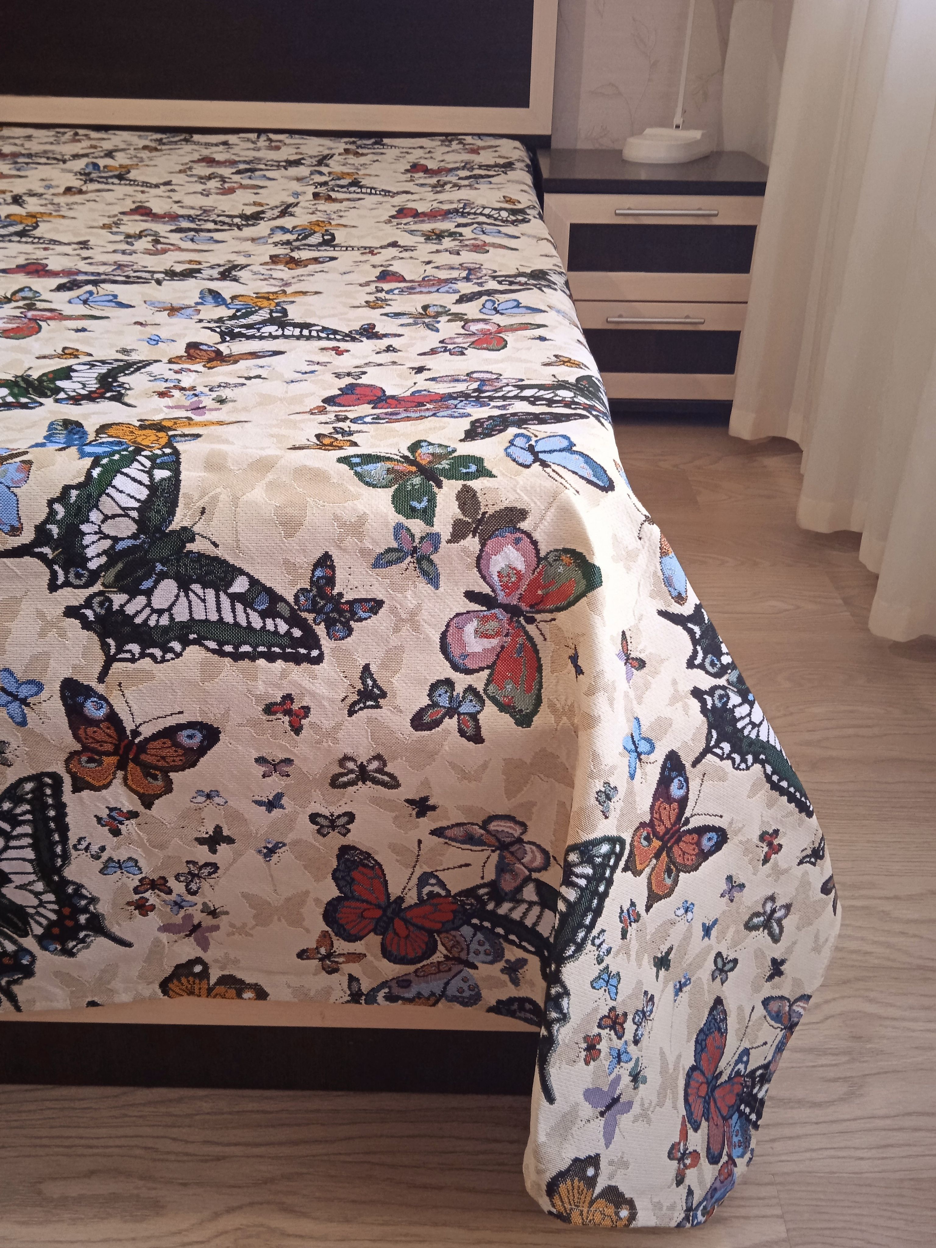 Гобеленовое покрывало «Бабочки» защитит мебель от грязи и пыли, добавит красок в интерьер и поможет создать уют в вашем доме или станет прекрасным подарком для ваших друзей и близких.