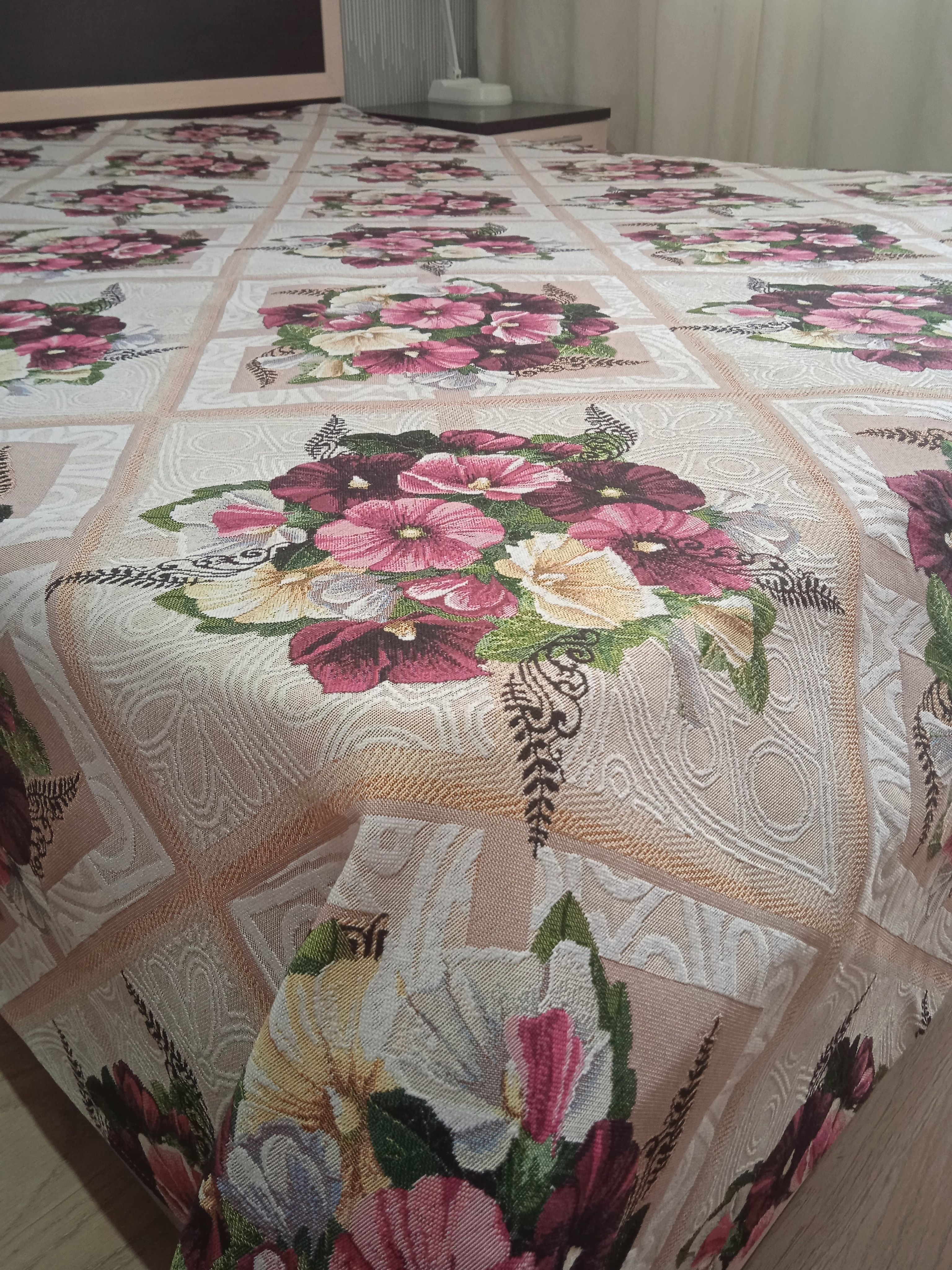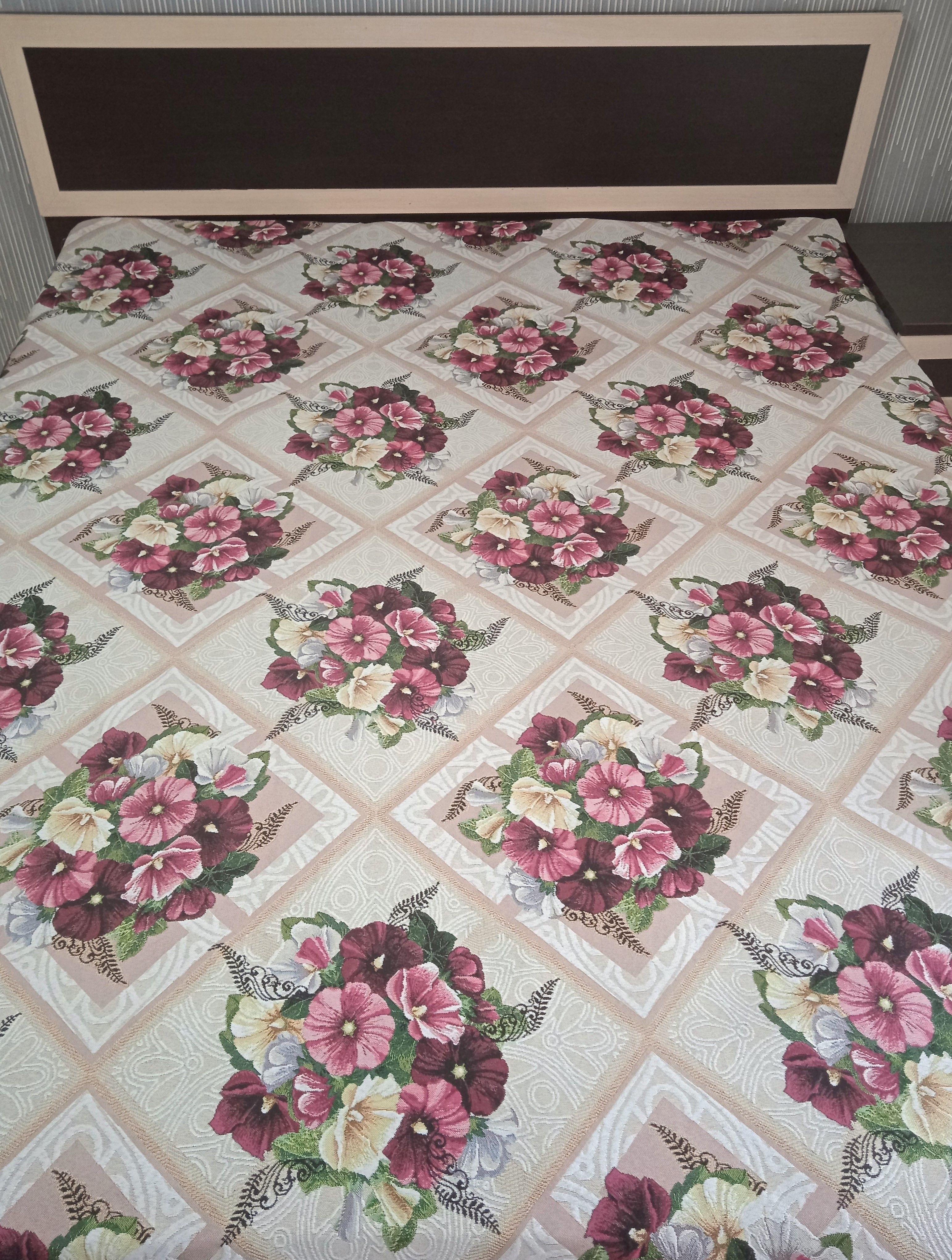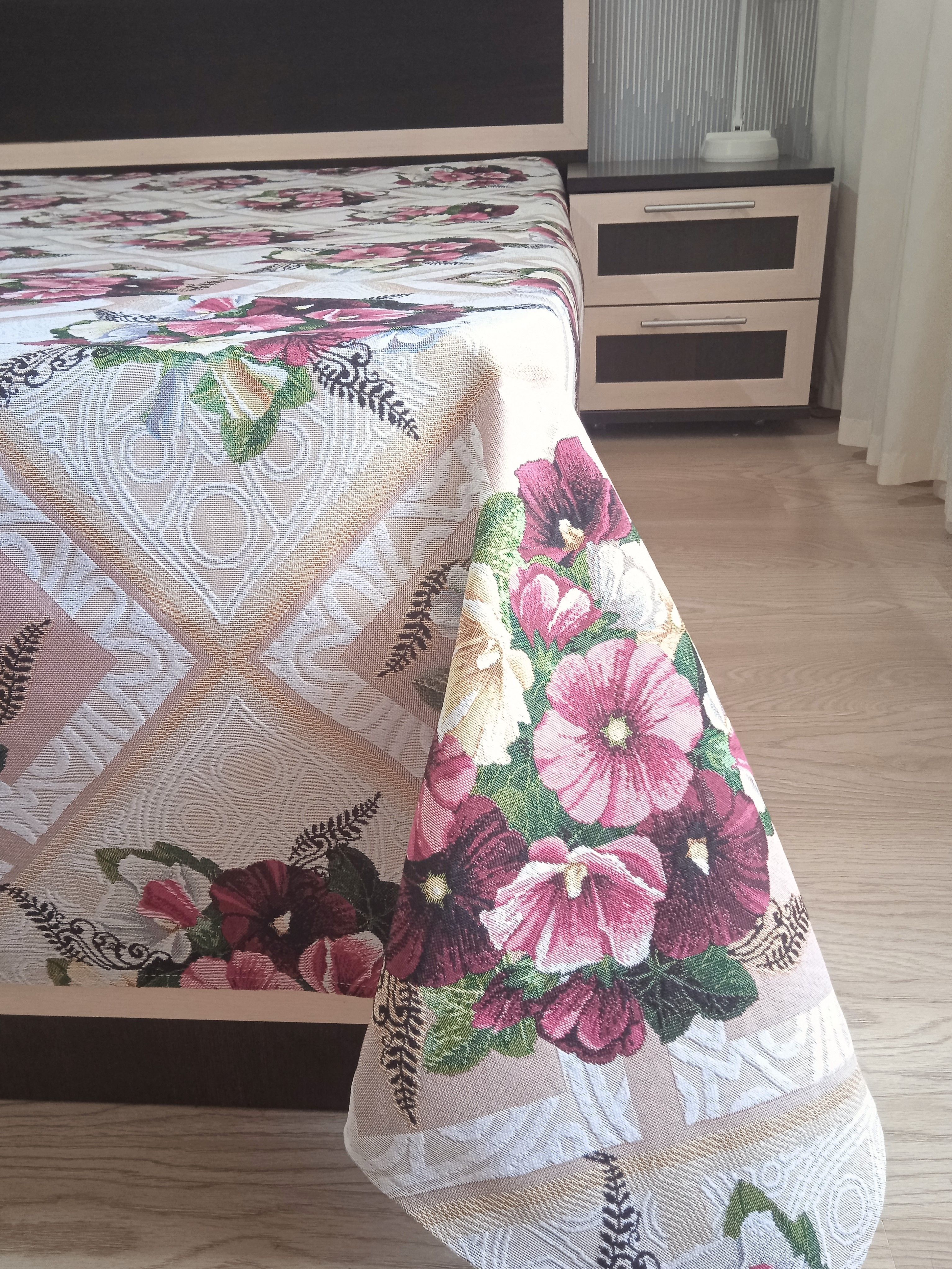 Благодаря высокому качеству гобелена покрывало устойчиво к вытиранию и образованию зацепок, не деформируется и не садится после стирки. Рисунок, отличающийся насыщенностью и стойкостью красок, со временем не потускнеет и будет радовать вас на протяжении долгих лет.