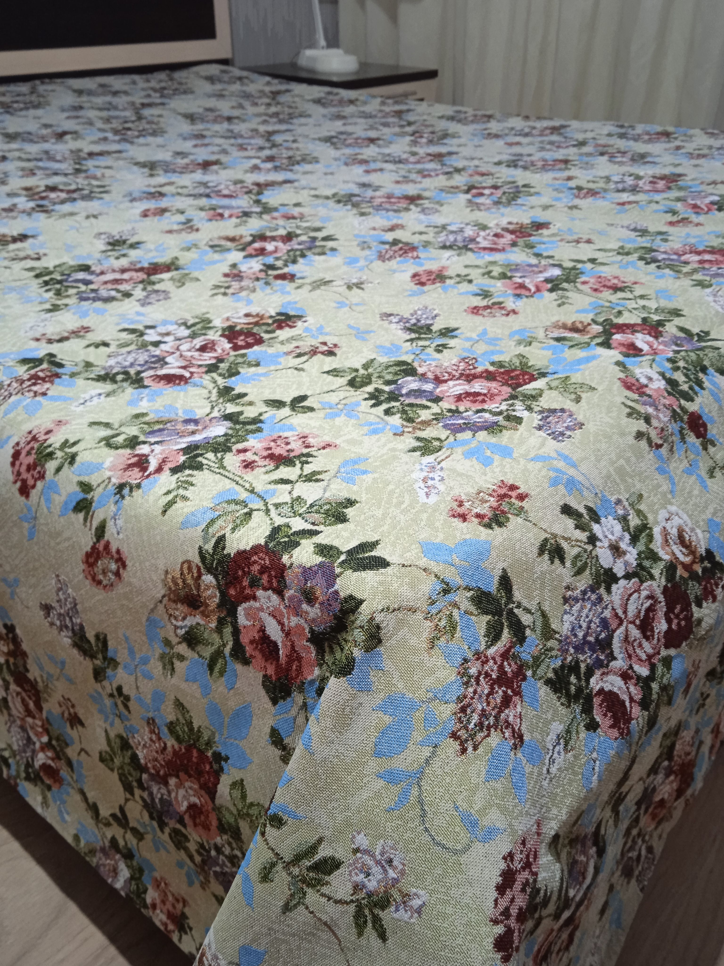 Благодаря высокому качеству гобелена покрывало устойчиво к вытиранию и образованию зацепок, не деформируется и не садится после стирки. Рисунок, отличающийся насыщенностью и стойкостью красок, со временем не потускнеет и будет радовать вас на протяжении долгих лет.