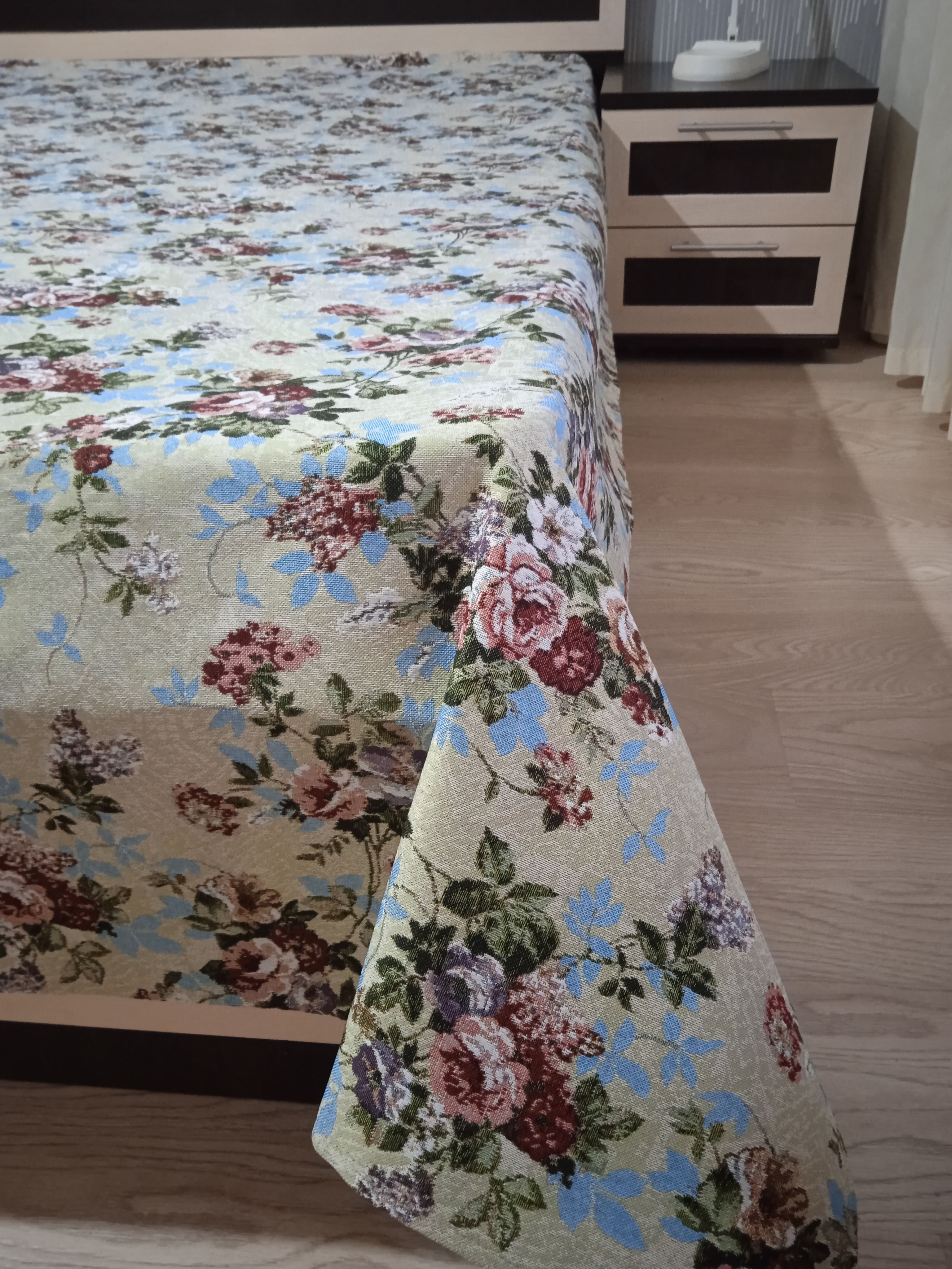Благодаря высокому качеству гобелена покрывало устойчиво к вытиранию и образованию зацепок, не деформируется и не садится после стирки. Рисунок, отличающийся насыщенностью и стойкостью красок, со временем не потускнеет и будет радовать вас на протяжении долгих лет.
