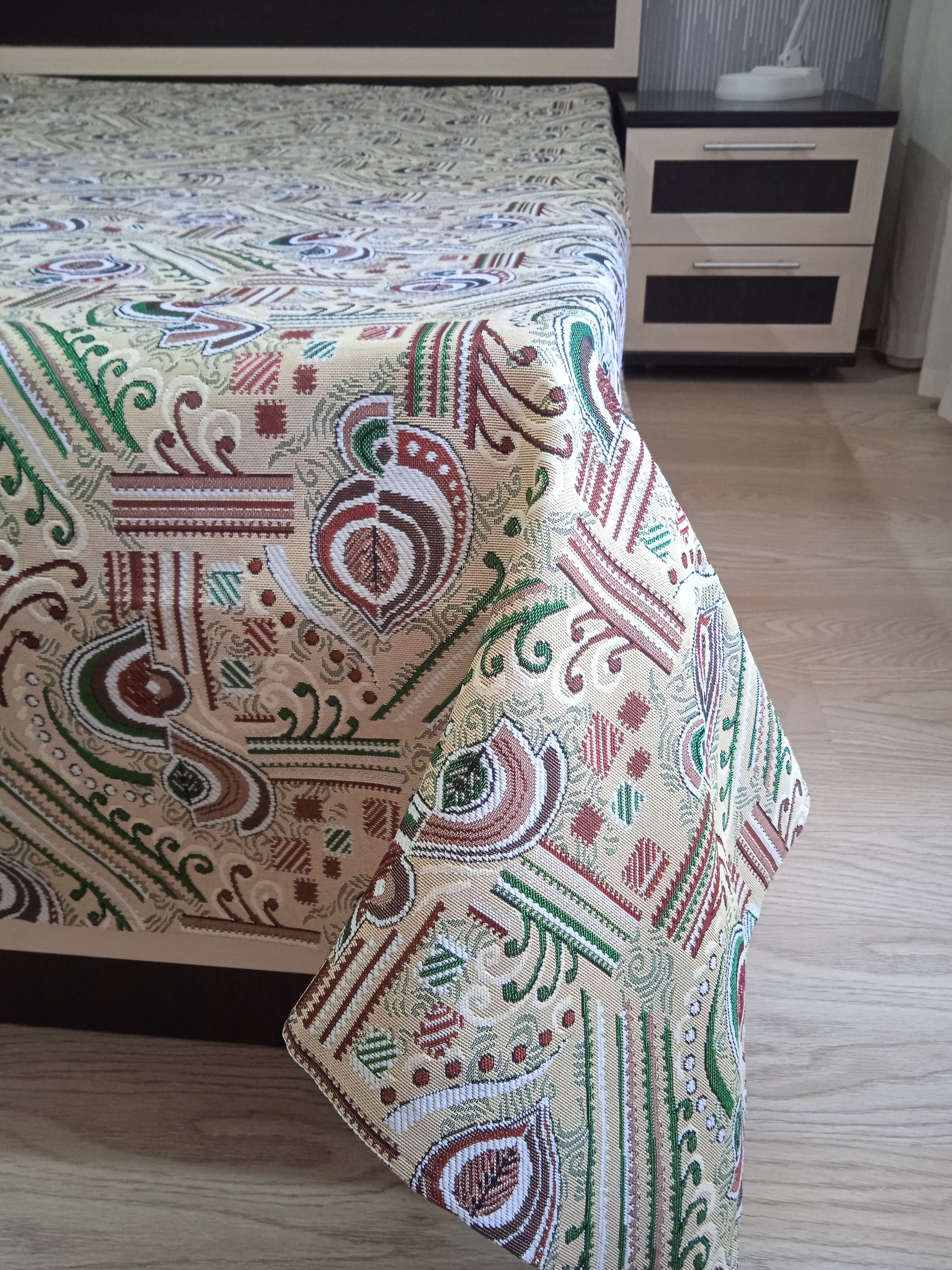 Благодаря высокому качеству гобелена покрывало устойчиво к вытиранию и образованию зацепок, не деформируется и не садится после стирки. Рисунок, отличающийся насыщенностью и стойкостью красок, со временем не потускнеет и будет радовать вас на протяжении долгих лет.