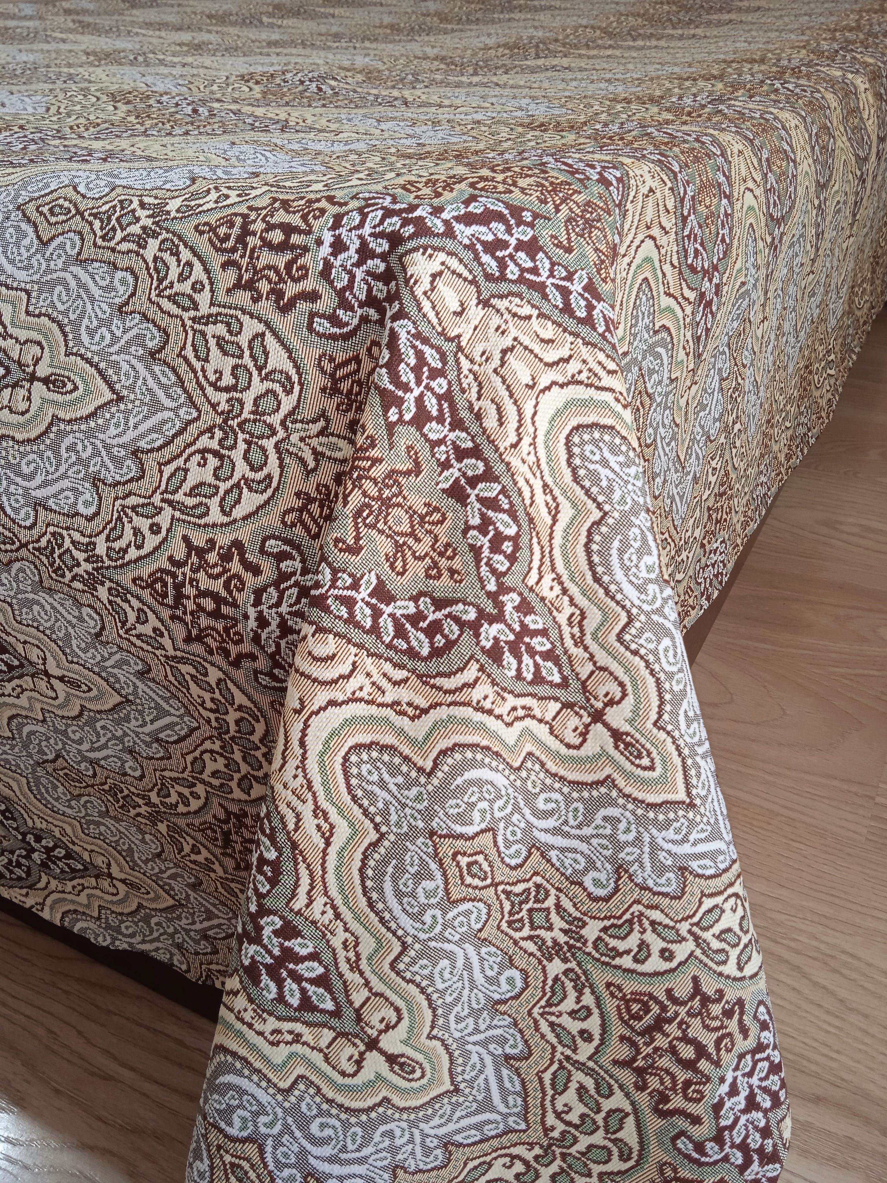 Благодаря высокому качеству гобелена покрывало устойчиво к вытиранию и образованию зацепок, не деформируется и не садится после стирки. Рисунок, отличающийся насыщенностью и стойкостью красок, со временем не потускнеет и будет радовать вас на протяжении долгих лет.