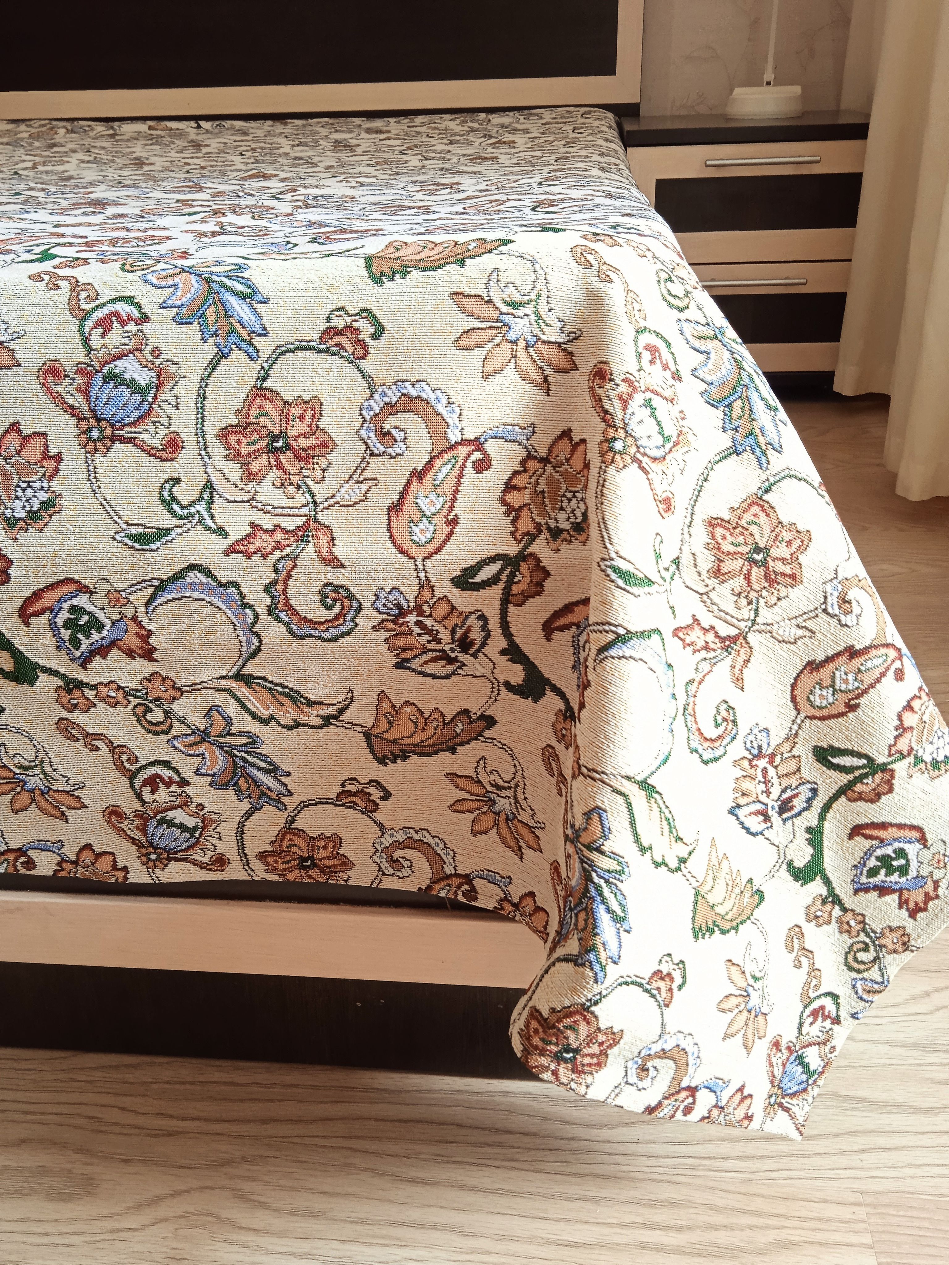 Благодаря высокому качеству гобелена покрывало устойчиво к вытиранию и образованию зацепок, не деформируется и не садится после стирки. Рисунок, отличающийся насыщенностью и стойкостью красок, со временем не потускнеет и будет радовать вас на протяжении долгих лет.