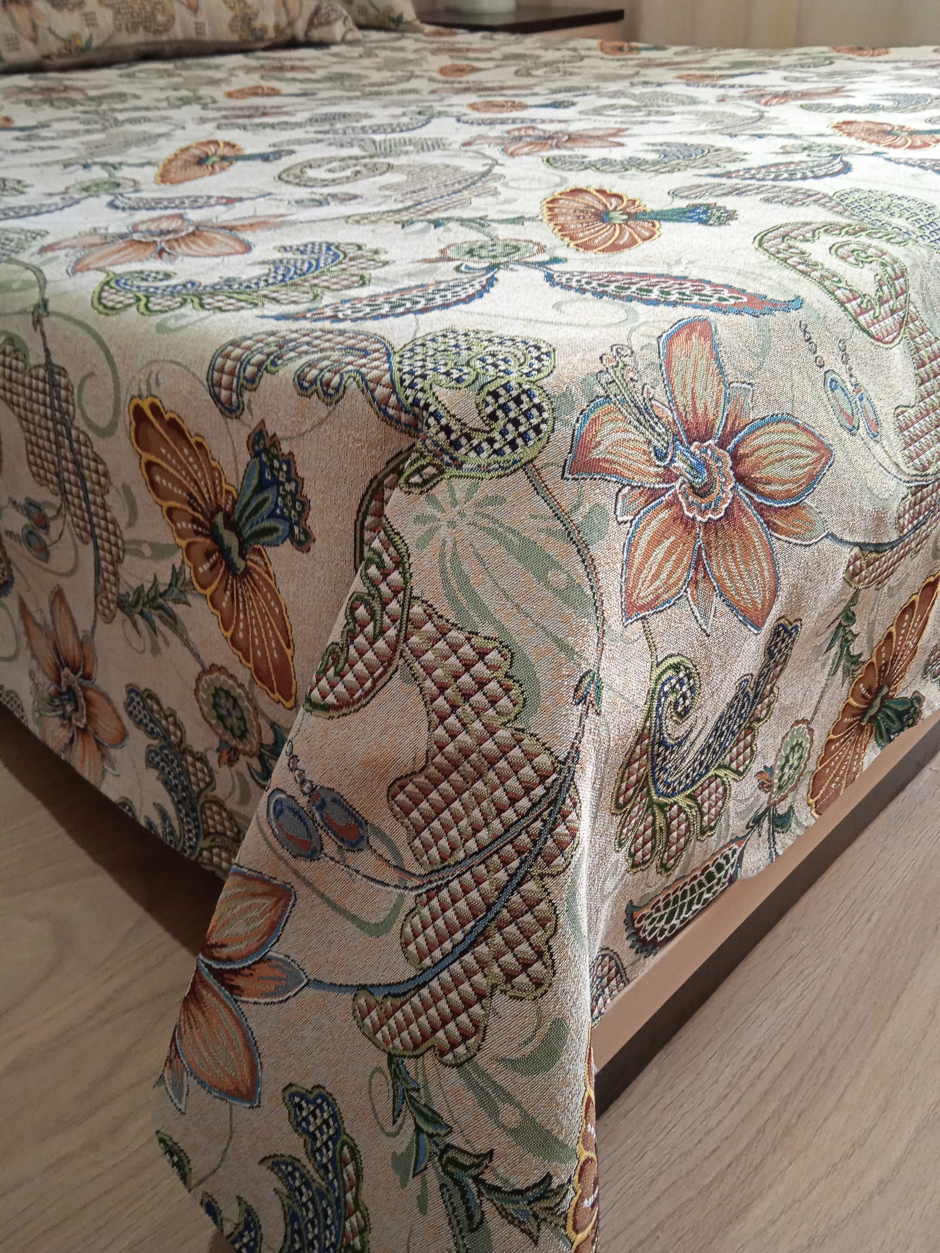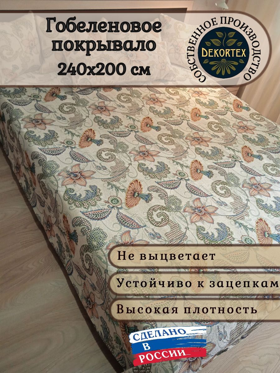 Благодаря высокому качеству гобелена покрывало устойчиво к вытиранию и образованию зацепок, не деформируется и не садится после стирки. Рисунок, отличающийся насыщенностью и стойкостью красок, со временем не потускнеет и будет радовать вас на протяжении долгих лет.