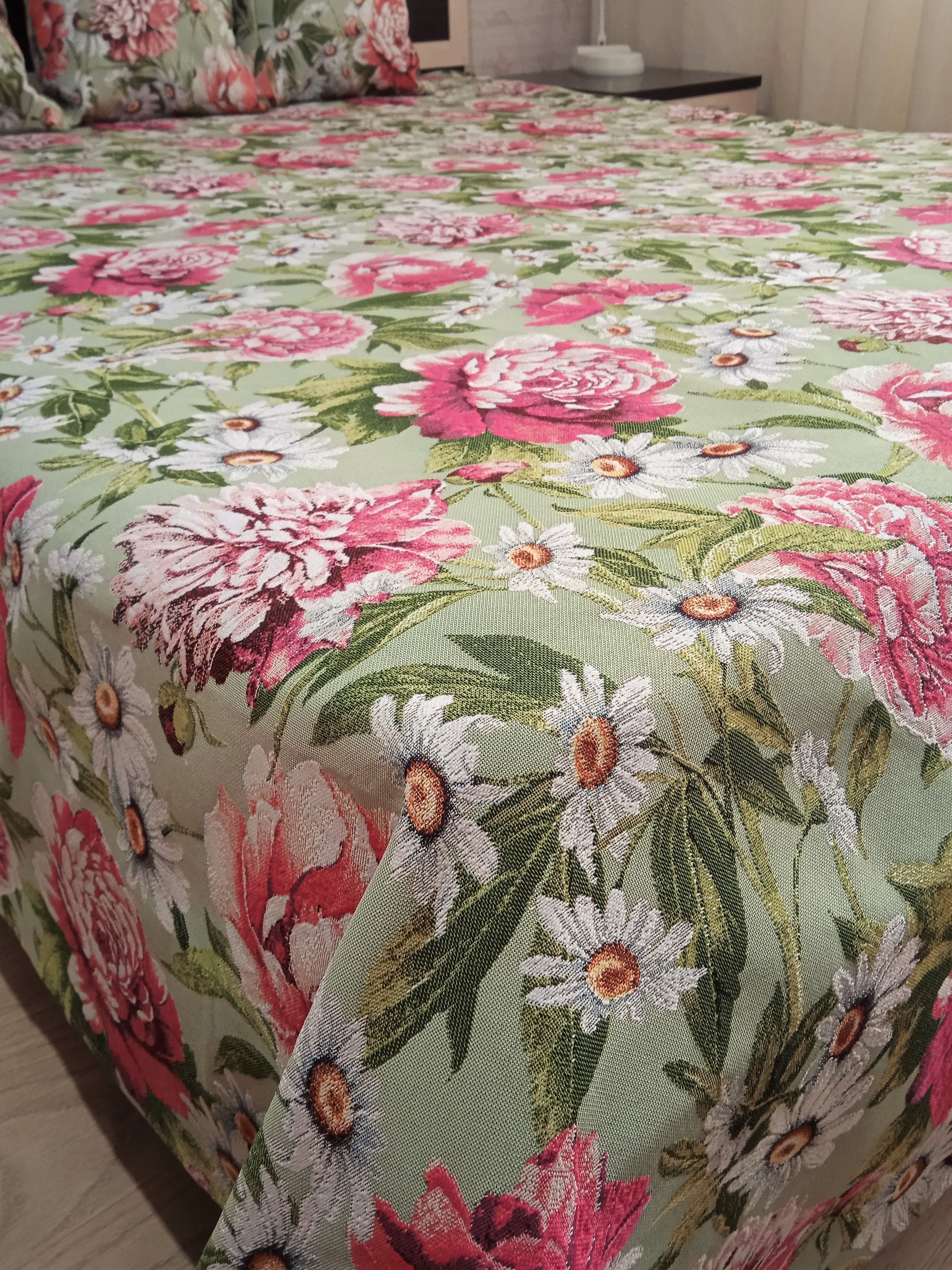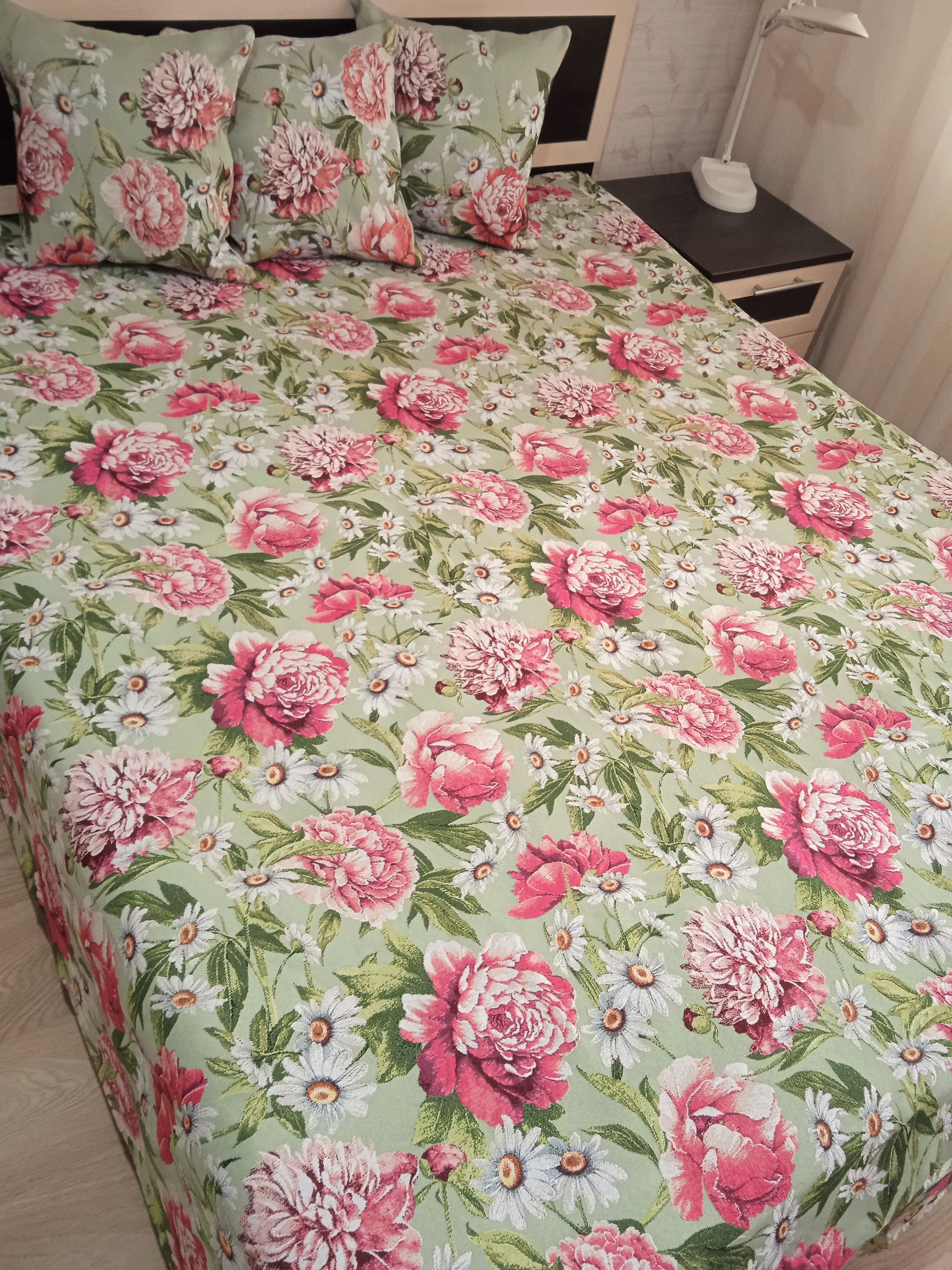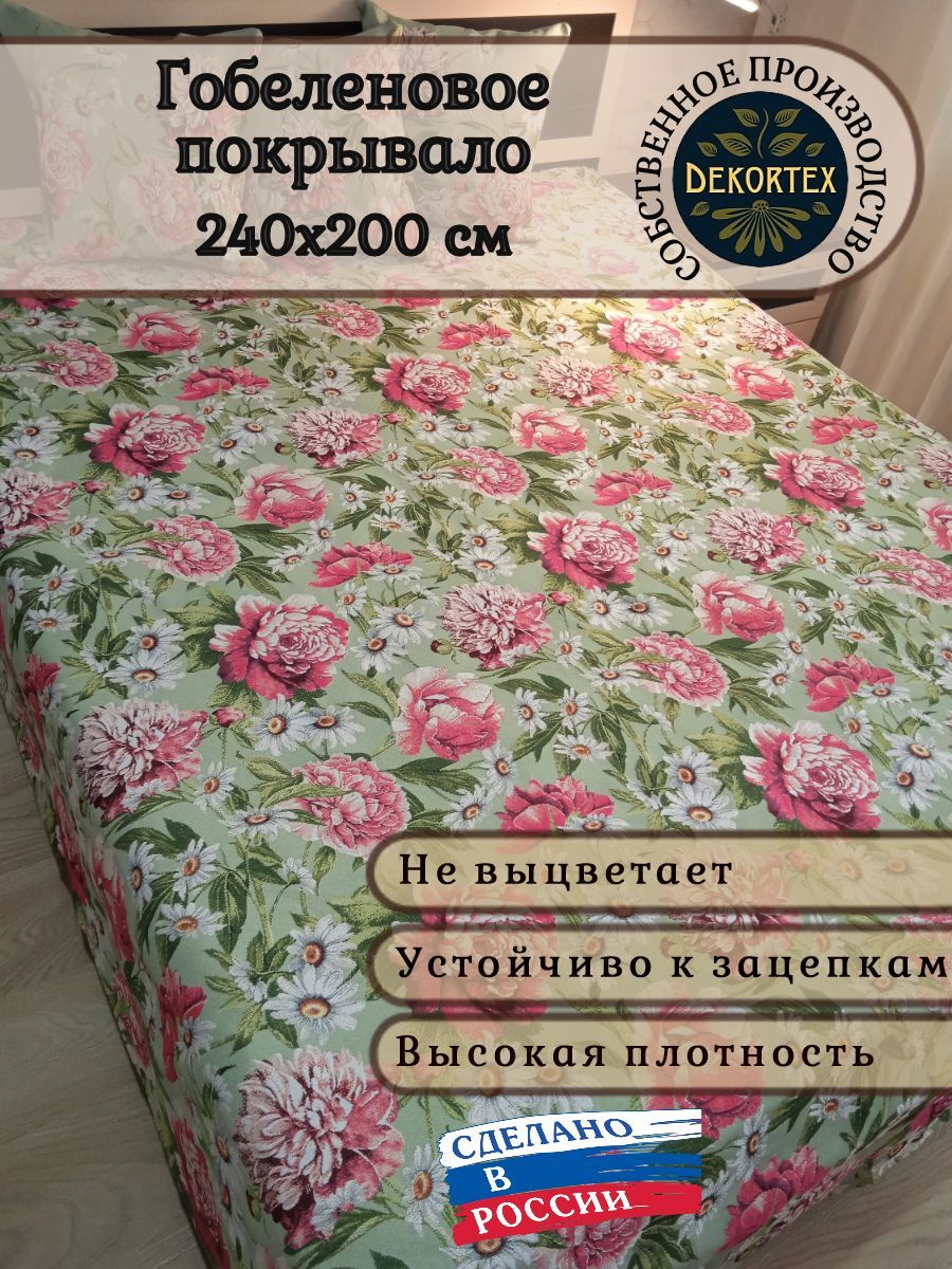 Гобеленовое покрывало «Пионы» собственного производства выполнено из износостойкого, Российского полиэстера с высокой плотностью. Собственное швейное производство позволяет контролировать качество продукции на всех этапах до поступления на склад и предлагать покупателям высококачественные товары по выгодным ценам от производителя.
