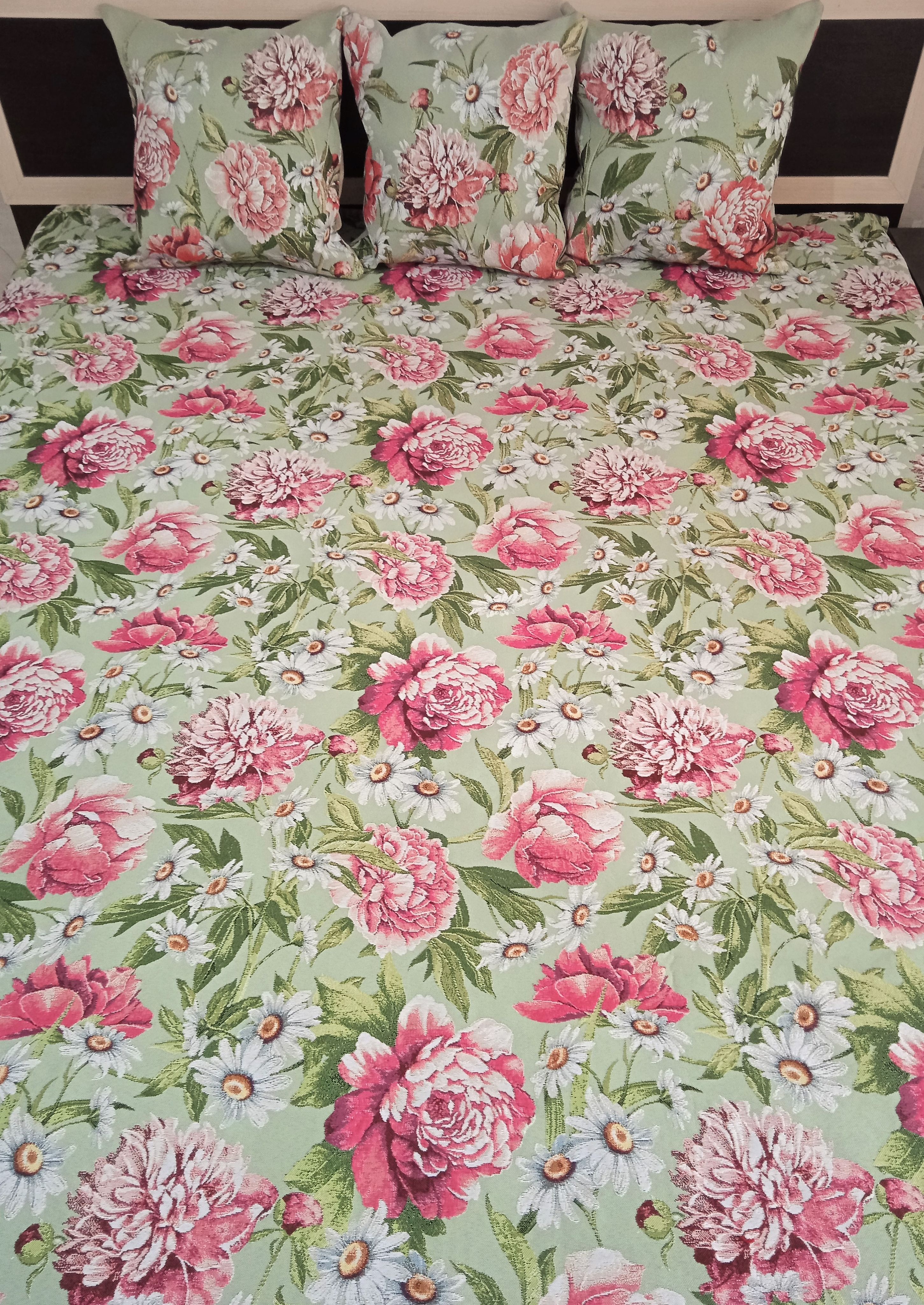 Гобеленовое покрывало «Пионы» защитит мебель от грязи и пыли, добавит красок в интерьер и поможет создать уют в вашем доме или станет прекрасным подарком для ваших друзей и близких.