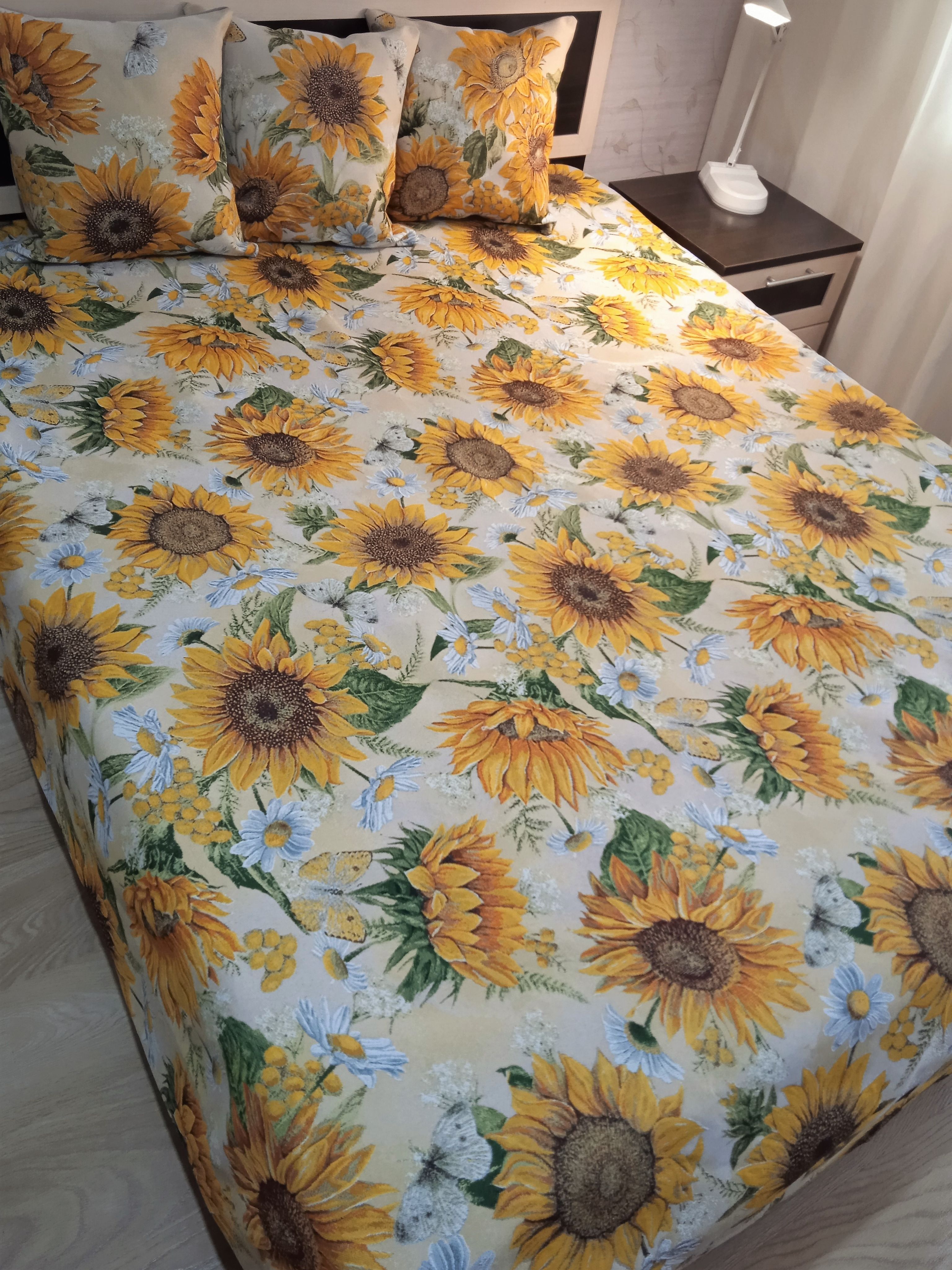 Гобеленовое покрывало «Подсолнухи» собственного производства выполнено из износостойкого, Российского полиэстера с высокой плотностью. Собственное швейное производство позволяет контролировать качество продукции на всех этапах до поступления на склад и предлагать покупателям высококачественные товары по выгодным ценам от производителя.