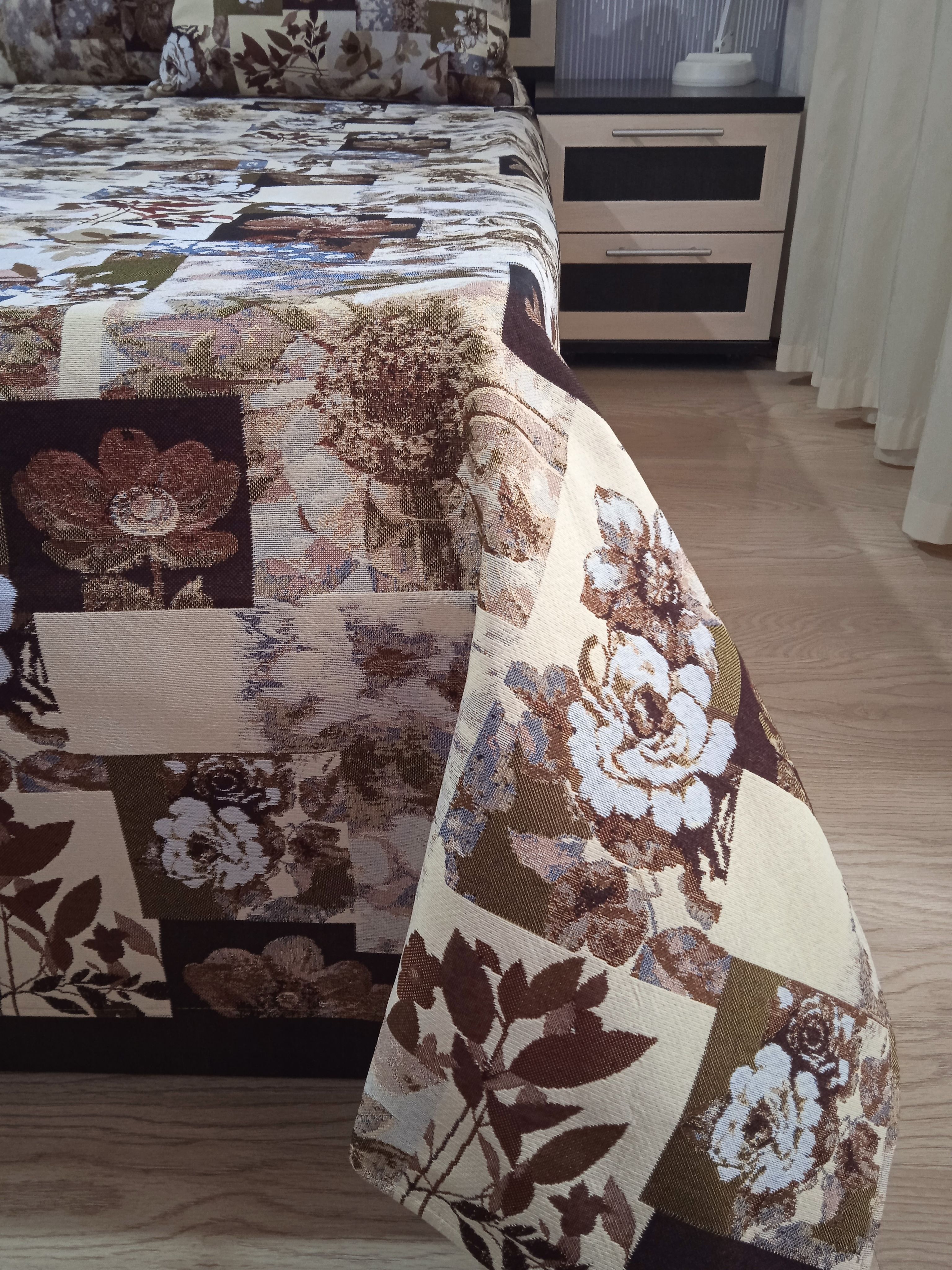 Гобеленовое покрывало «Цветочная коллекция» собственного производства выполнено из износостойкого, Российского полиэстера с высокой плотностью. Собственное швейное производство позволяет контролировать качество продукции на всех этапах до поступления на склад и предлагать покупателям высококачественные товары по выгодным ценам от производителя.