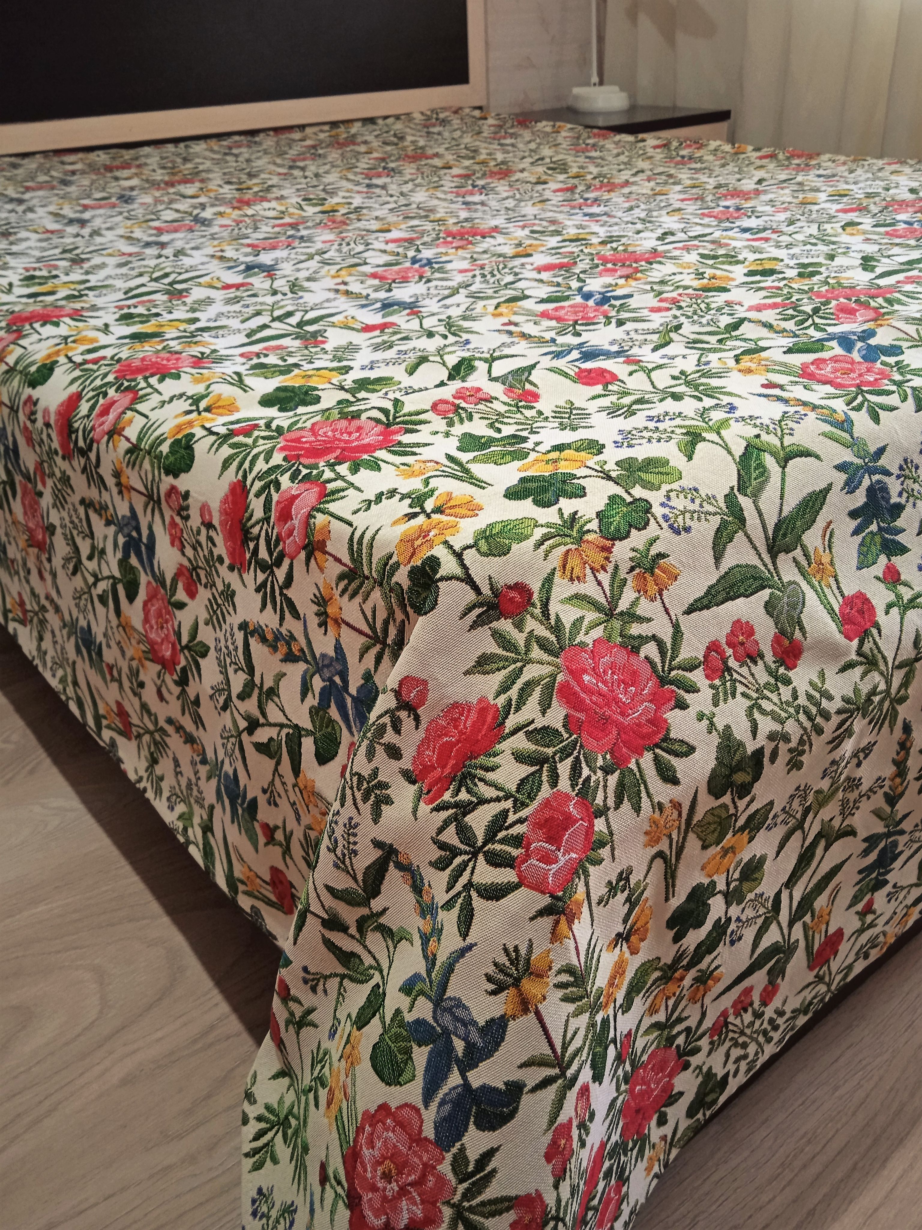 Гобеленовое покрывало «Цветочный сад» защитит мебель от грязи и пыли, добавит красок в интерьер и поможет создать уют в вашем доме или станет прекрасным подарком для ваших друзей и близких.