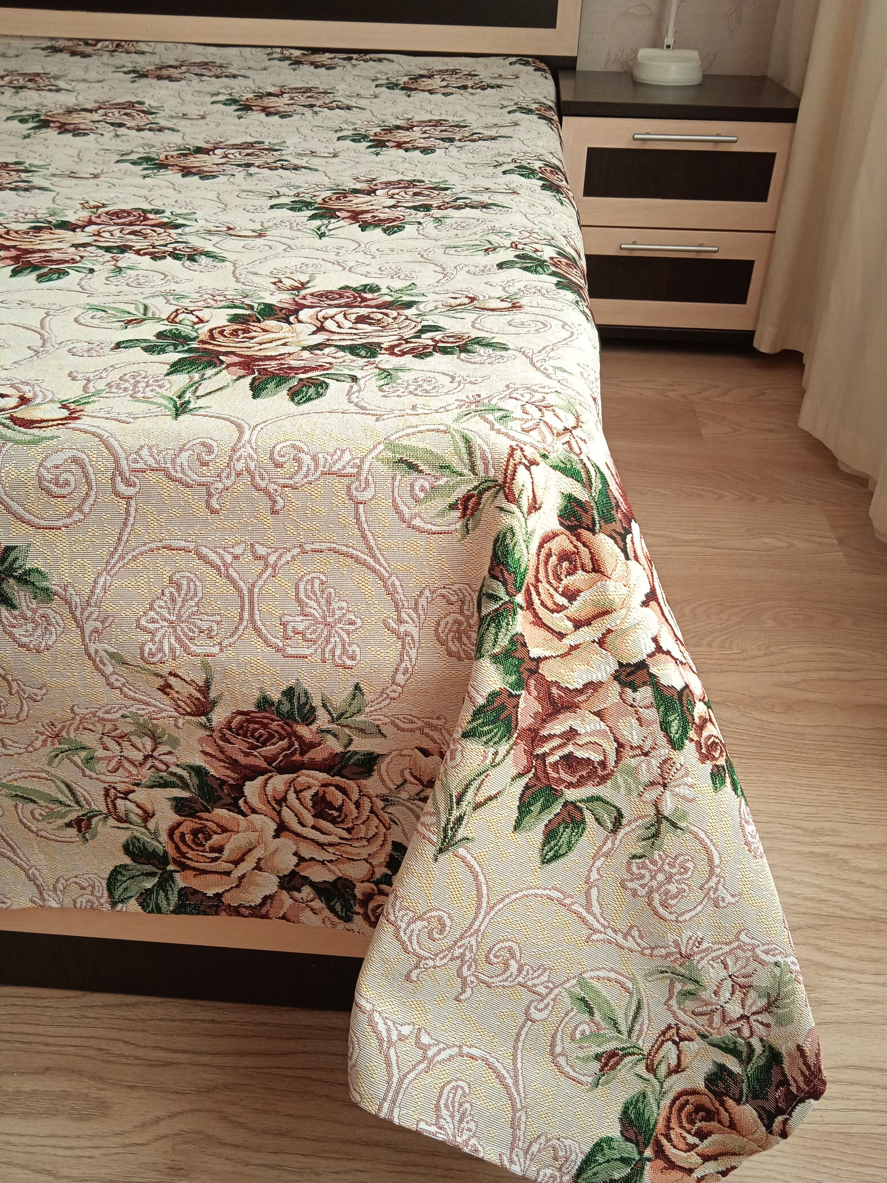 Благодаря высокому качеству гобелена покрывало устойчиво к вытиранию и образованию зацепок, не деформируется и не садится после стирки. Рисунок, отличающийся насыщенностью и стойкостью красок, со временем не потускнеет и будет радовать вас на протяжении долгих лет.