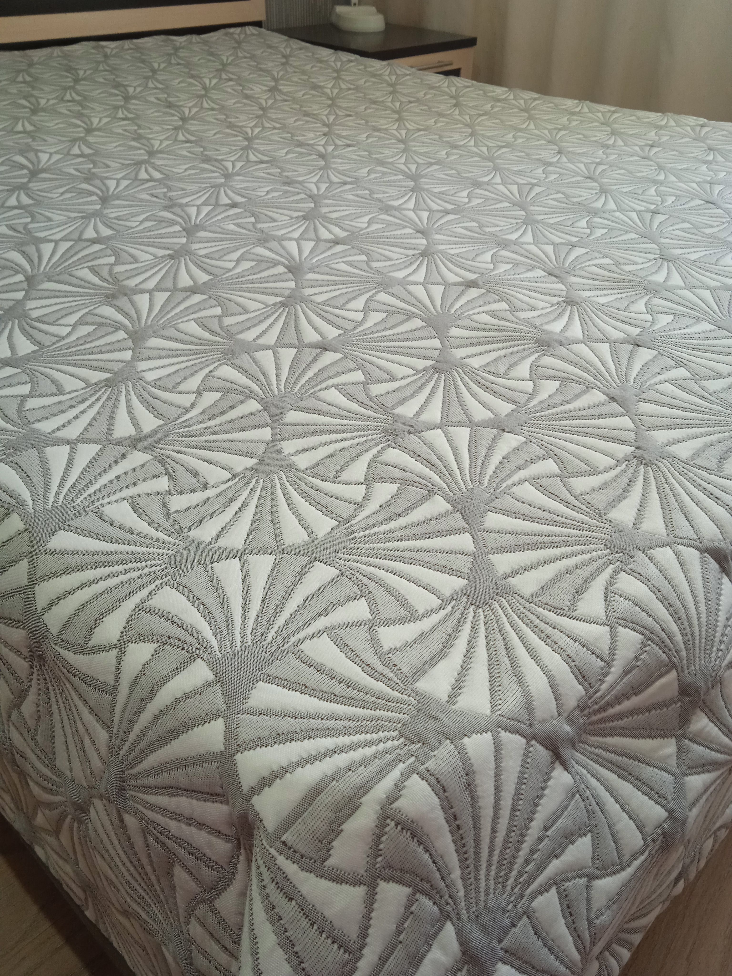 Мягкое, легкое и приятное на ощупь покрывало выпускается в светлых бежевых, коричневых и серых оттенках с неизменно присутствующим белым цветом. Рисунок на сторонах одинаковый но отличается по плотности окраса поверхности. Перевернув покрывало на другую сторону вы увидите тот же рисунок с большей или меньшей насыщенностью цвета.