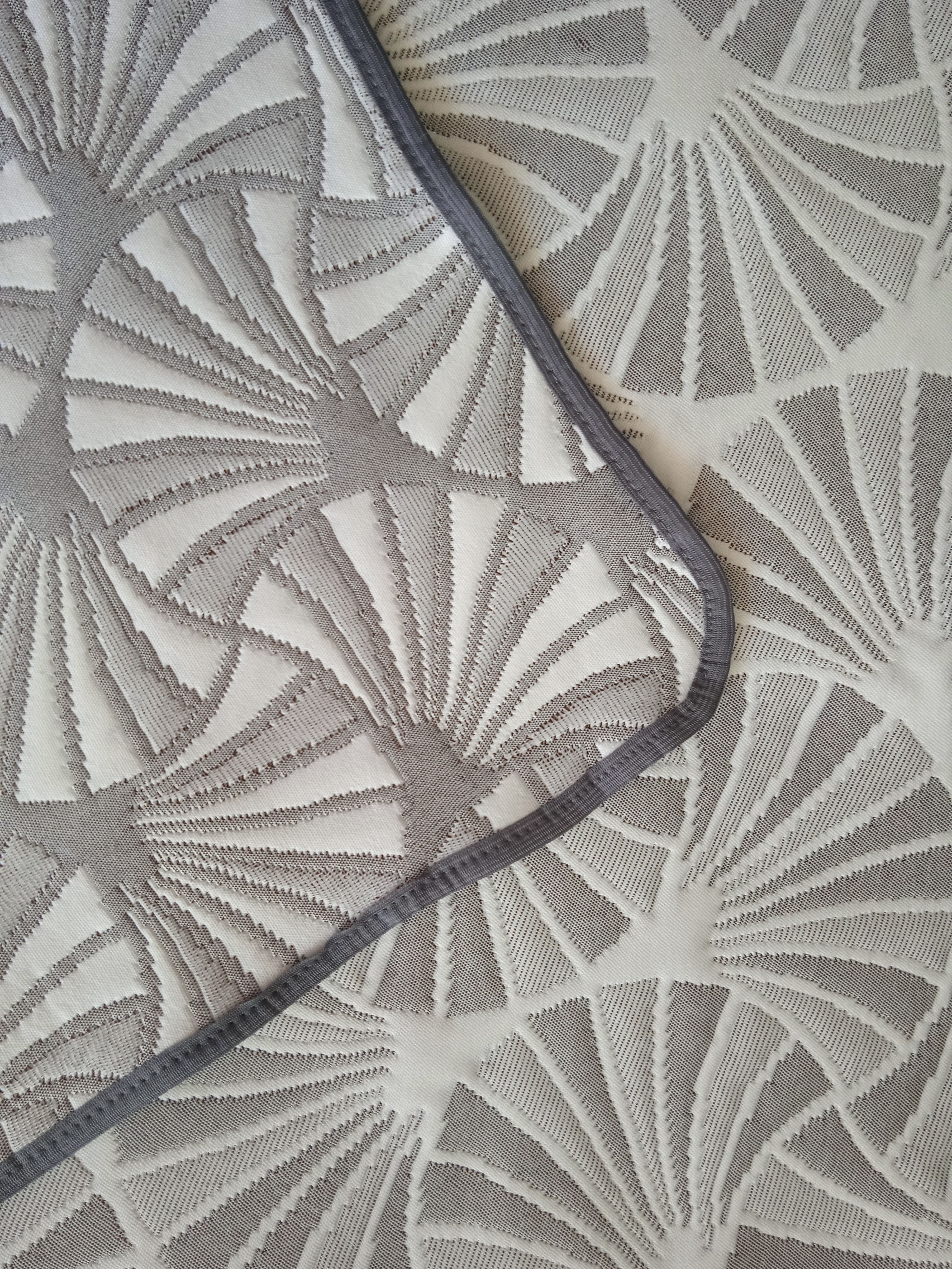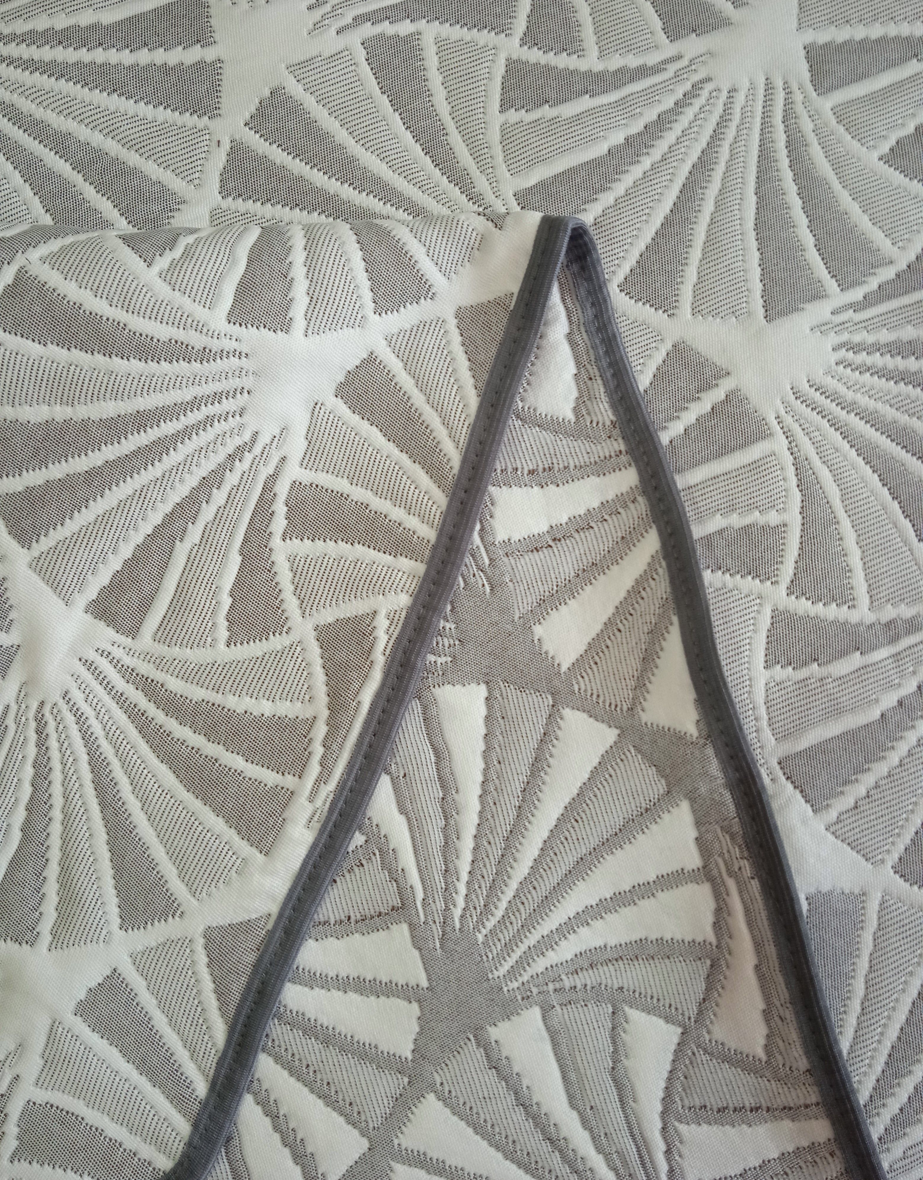 Мягкое, легкое и приятное на ощупь покрывало выпускается в светлых бежевых, коричневых и серых оттенках с неизменно присутствующим белым цветом. Рисунок на сторонах одинаковый но отличается по плотности окраса поверхности. Перевернув покрывало на другую сторону вы увидите тот же рисунок с большей или меньшей насыщенностью цвета.