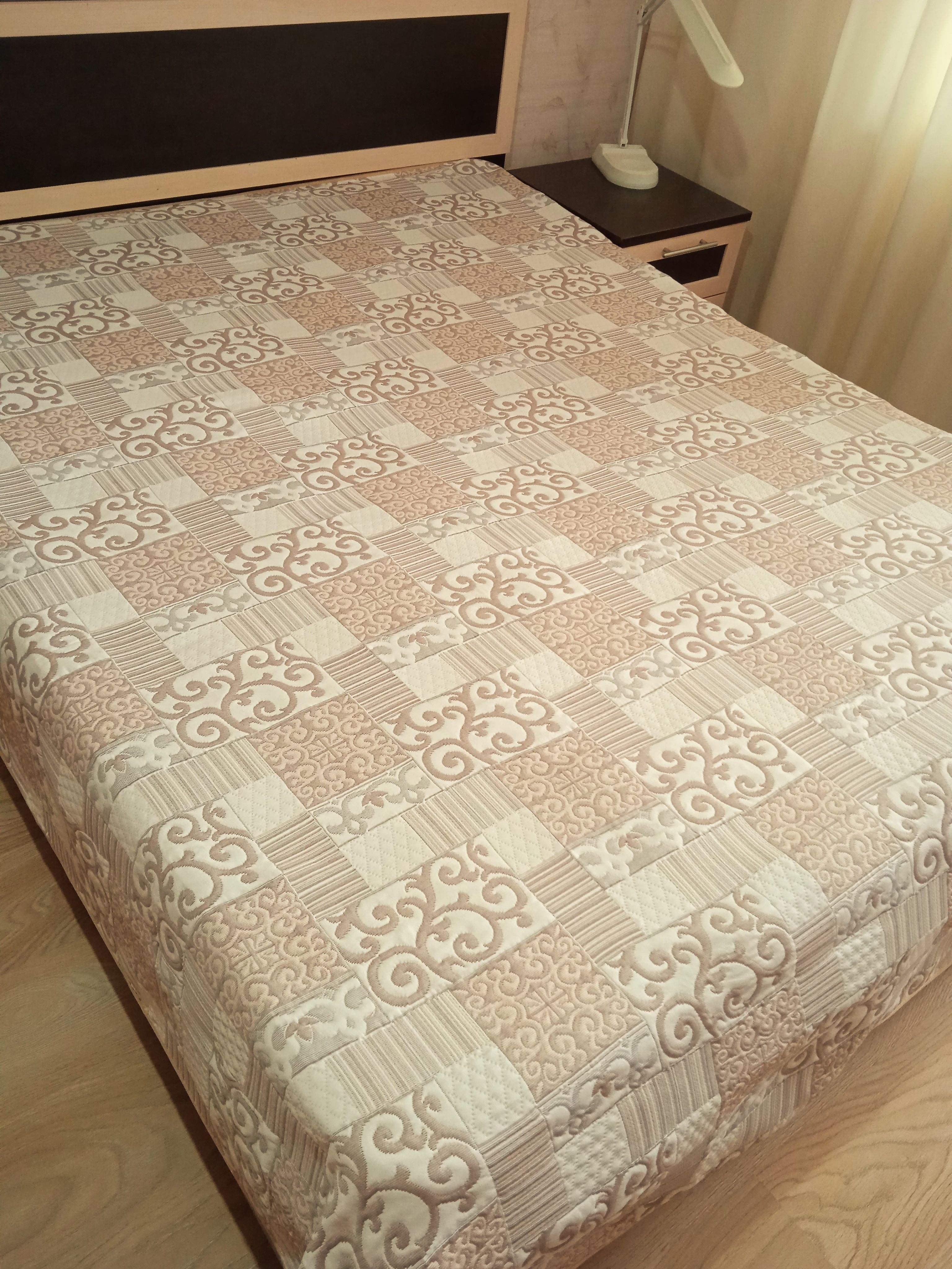 Мягкое, легкое и приятное на ощупь покрывало выпускается в светлых бежевых, коричневых и серых оттенках с неизменно присутствующим белым цветом. Рисунок на сторонах одинаковый но отличается по плотности окраса поверхности. Перевернув покрывало на другую сторону вы увидите тот же рисунок с большей или меньшей насыщенностью цвета.