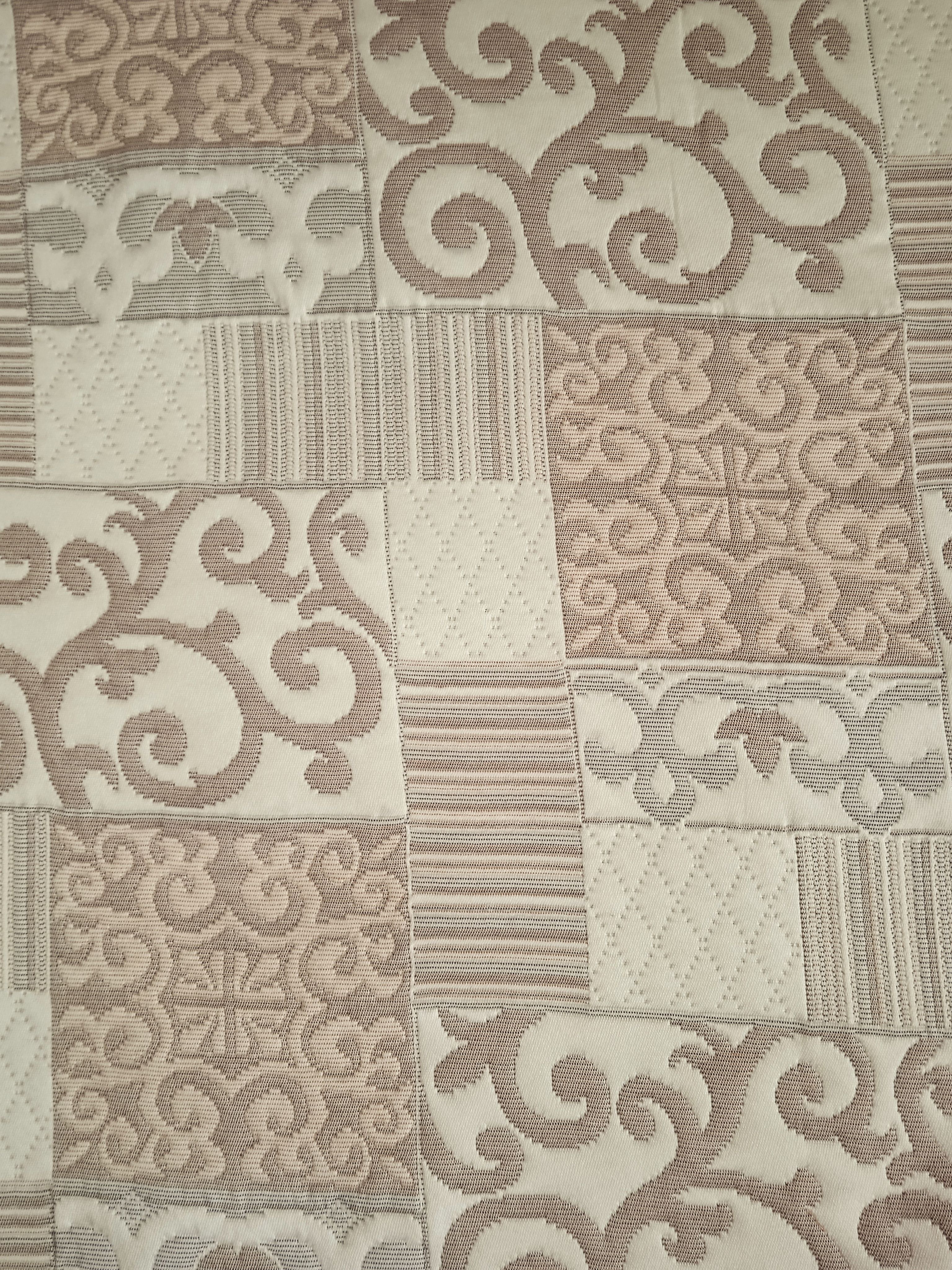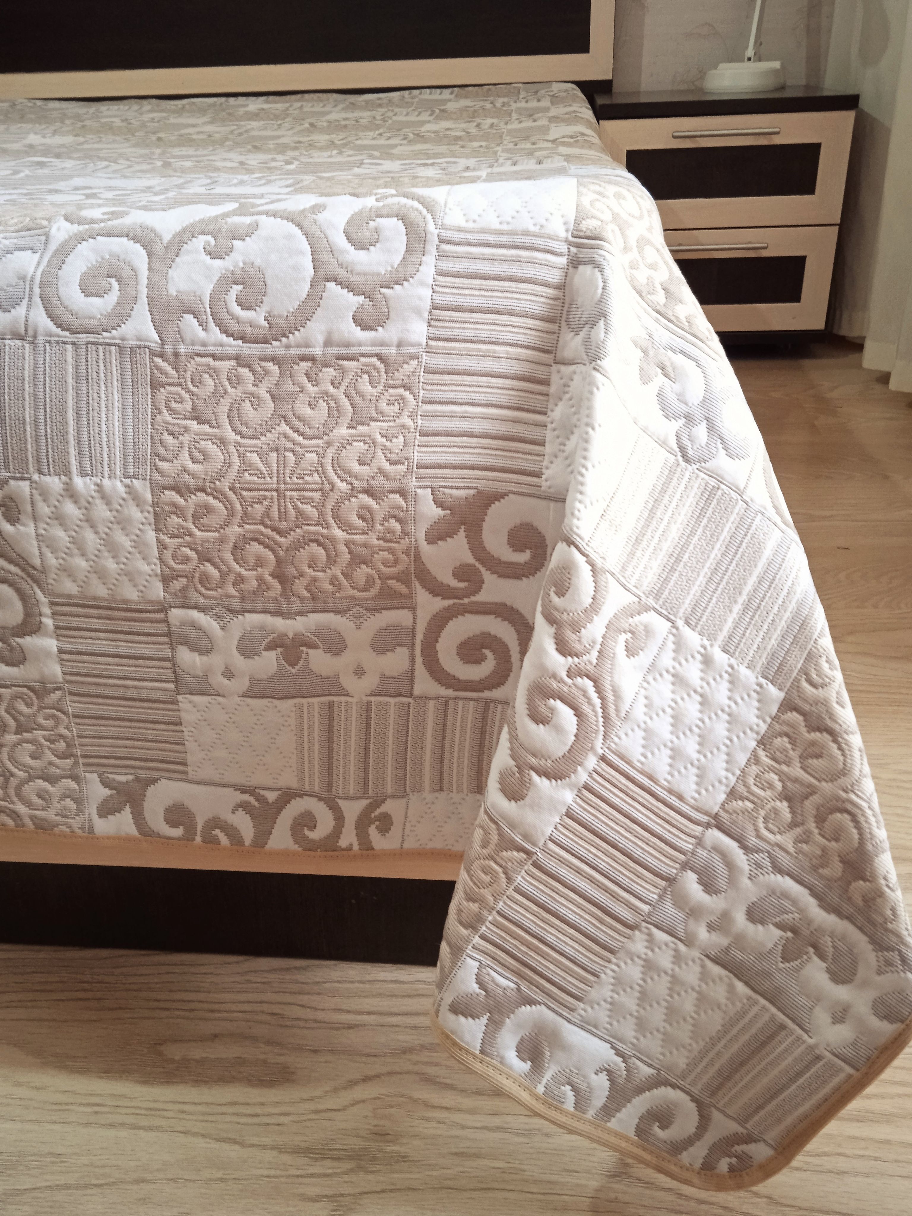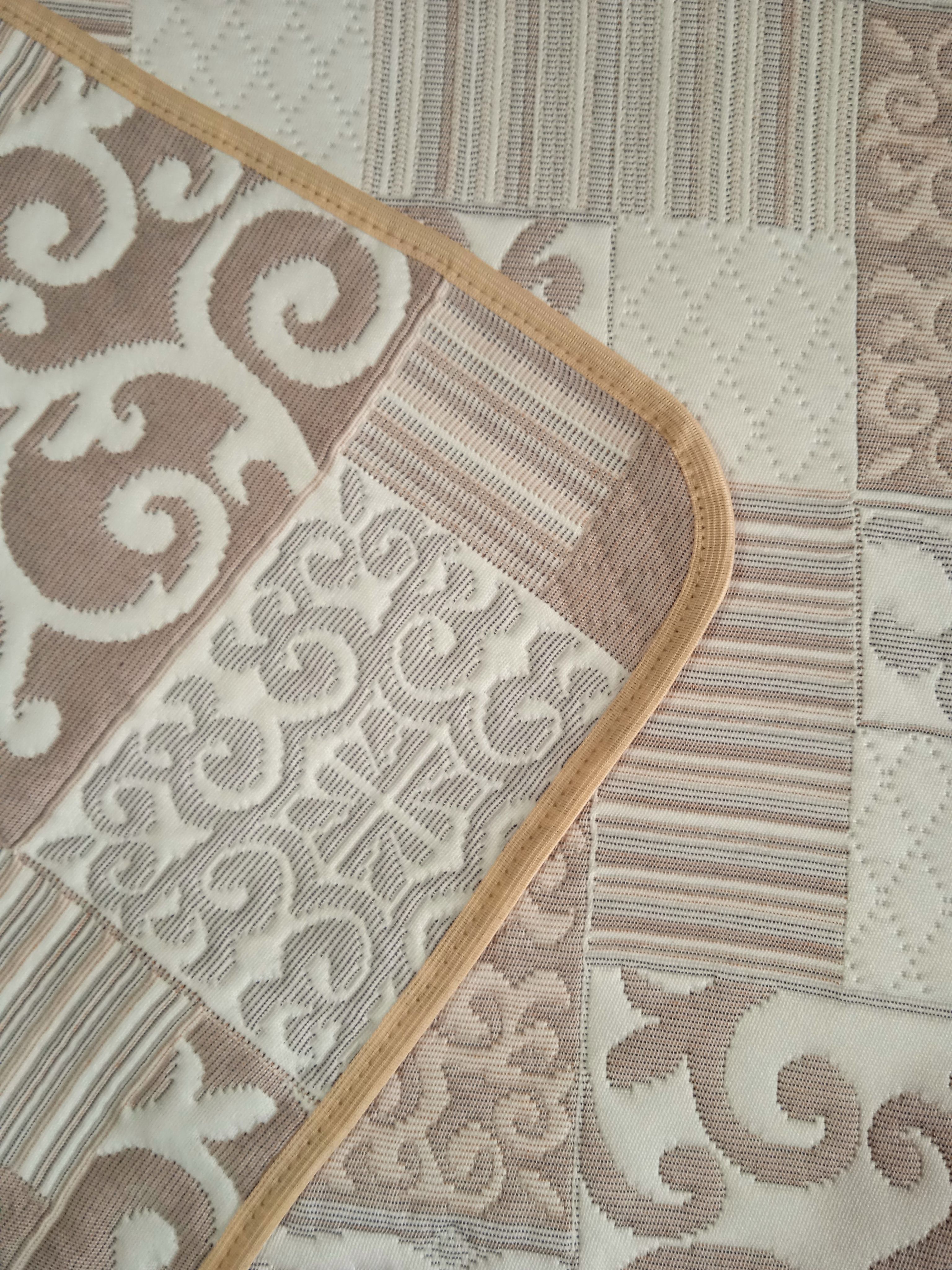 Мягкое, легкое и приятное на ощупь покрывало выпускается в светлых бежевых, коричневых и серых оттенках с неизменно присутствующим белым цветом. Рисунок на сторонах одинаковый но отличается по плотности окраса поверхности. Перевернув покрывало на другую сторону вы увидите тот же рисунок с большей или меньшей насыщенностью цвета.