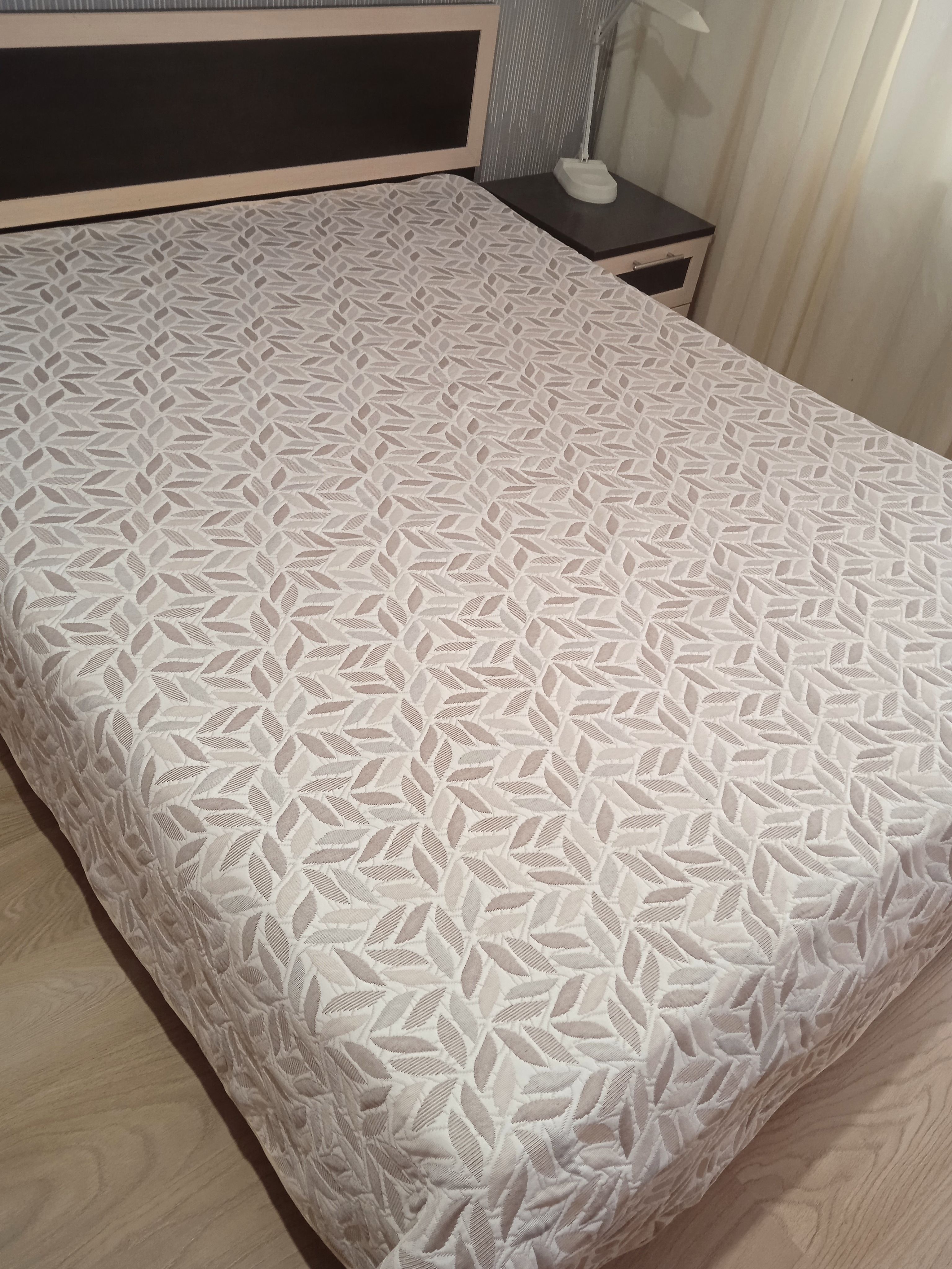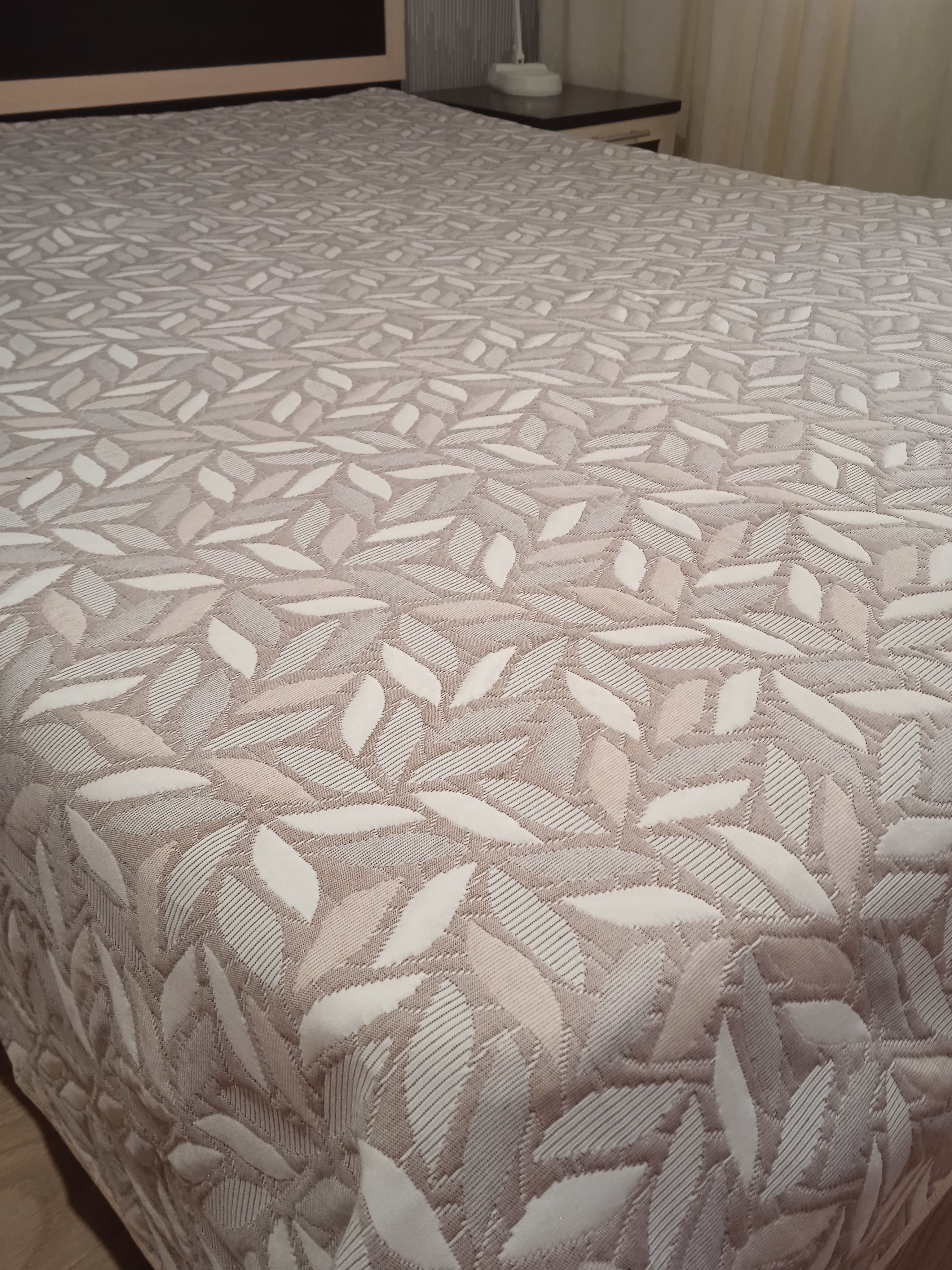 Мягкое, легкое и приятное на ощупь покрывало выпускается в светлых бежевых, коричневых и серых оттенках с неизменно присутствующим белым цветом. Рисунок на сторонах одинаковый но отличается по плотности окраса поверхности. Перевернув покрывало на другую сторону вы увидите тот же рисунок с большей или меньшей насыщенностью цвета.