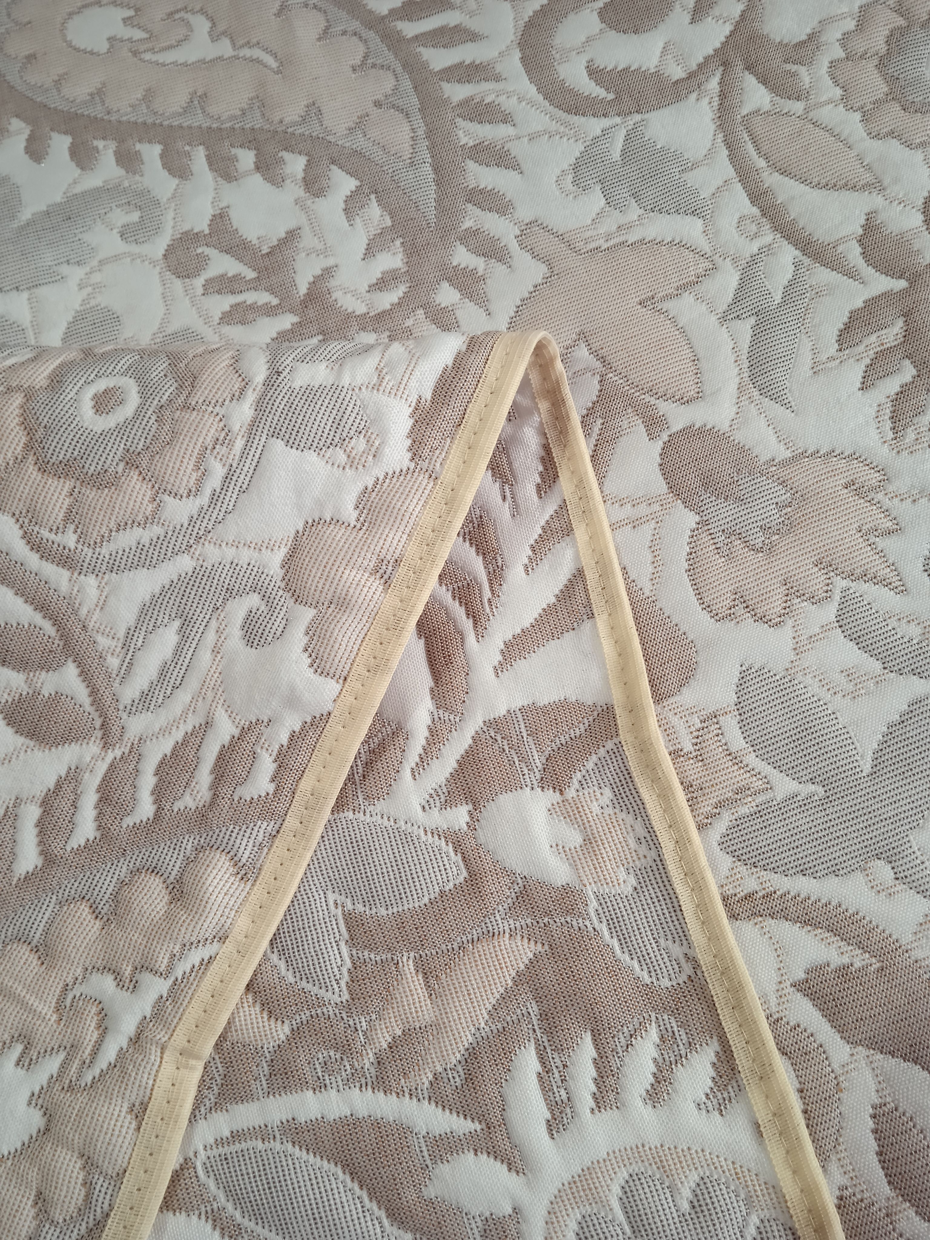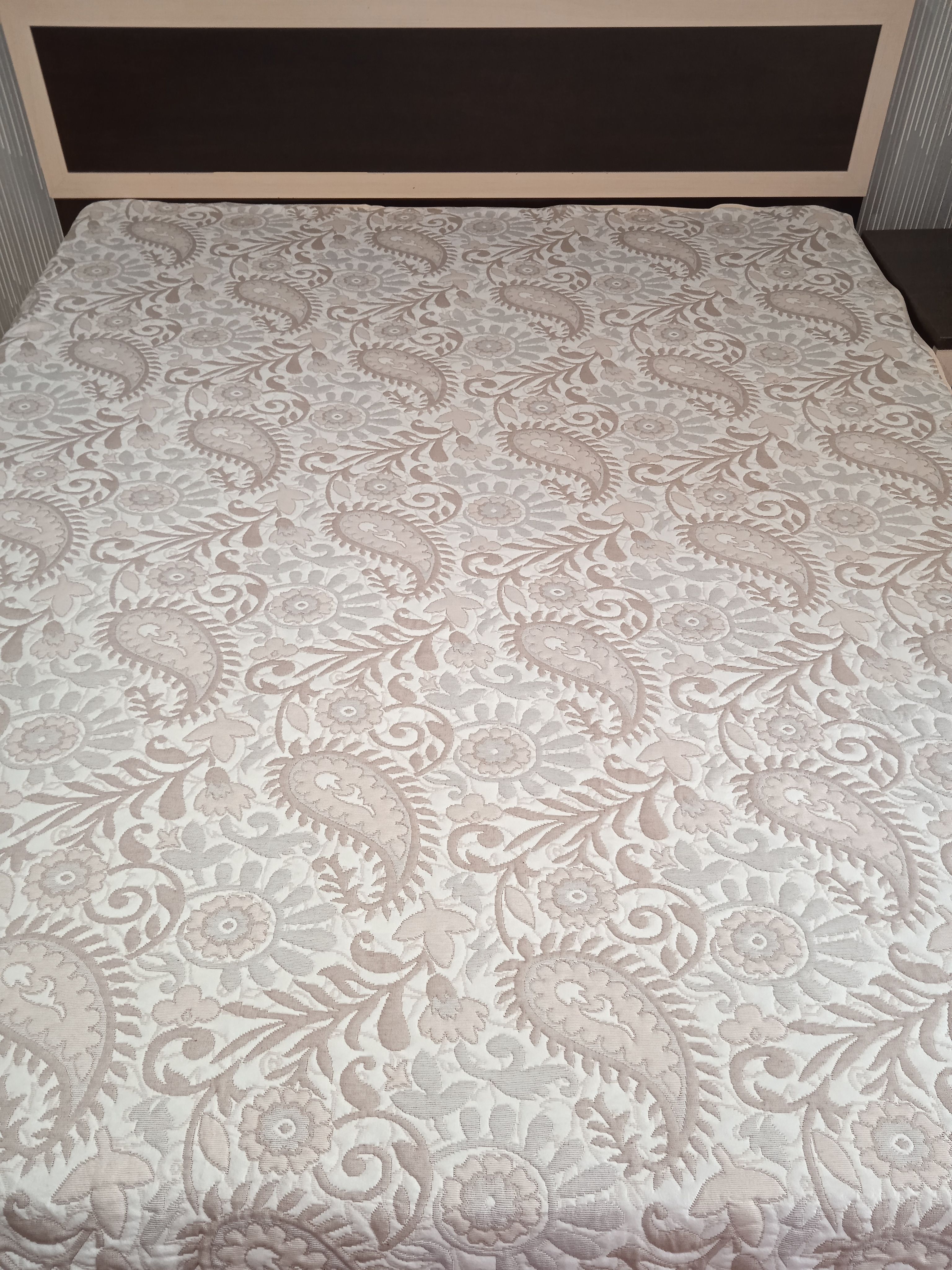 Мягкое, легкое и приятное на ощупь покрывало выпускается в светлых бежевых, коричневых и серых оттенках с неизменно присутствующим белым цветом. Рисунок на сторонах одинаковый но отличается по плотности окраса поверхности. Перевернув покрывало на другую сторону вы увидите тот же рисунок с большей или меньшей насыщенностью цвета.