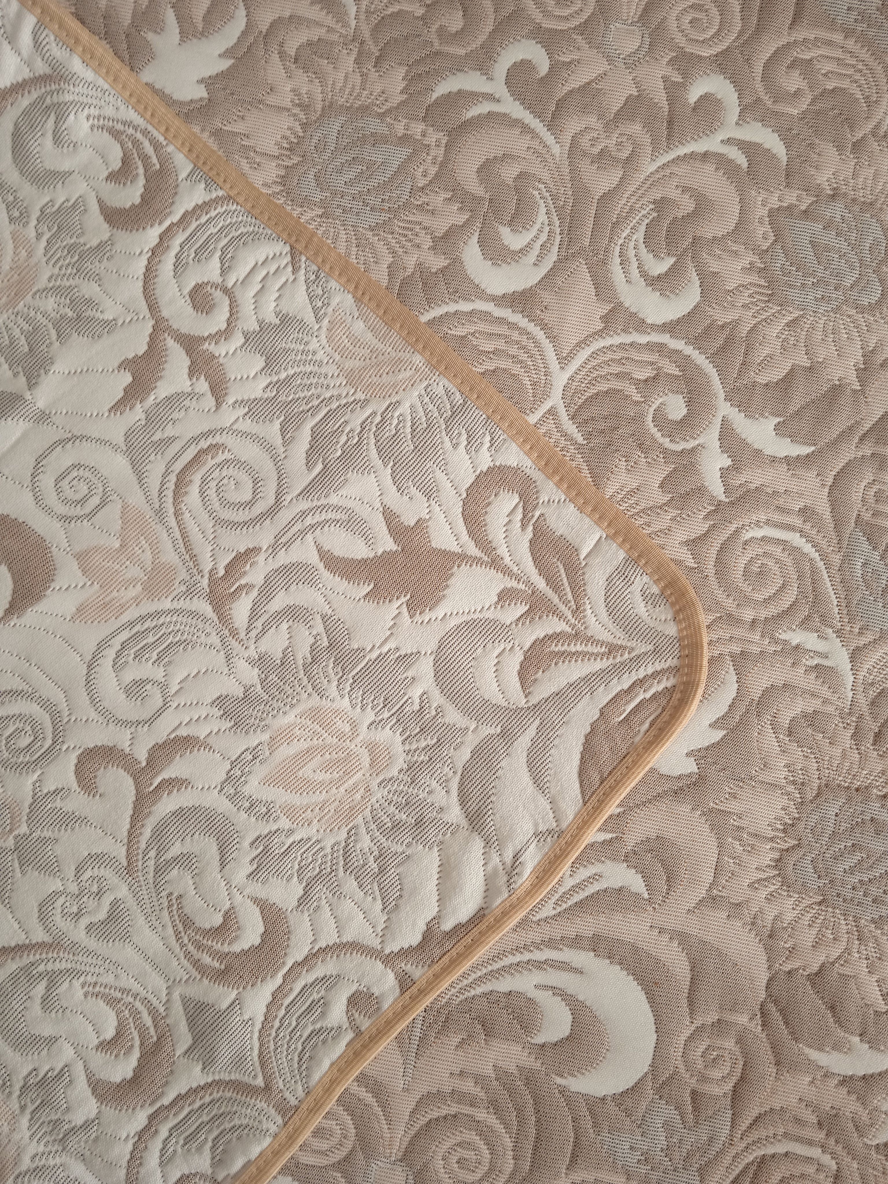 Мягкое, легкое и приятное на ощупь покрывало выпускается в светлых бежевых, коричневых и серых оттенках с неизменно присутствующим белым цветом. Рисунок на сторонах одинаковый но отличается по плотности окраса поверхности. Перевернув покрывало на другую сторону вы увидите тот же рисунок с большей или меньшей насыщенностью цвета.