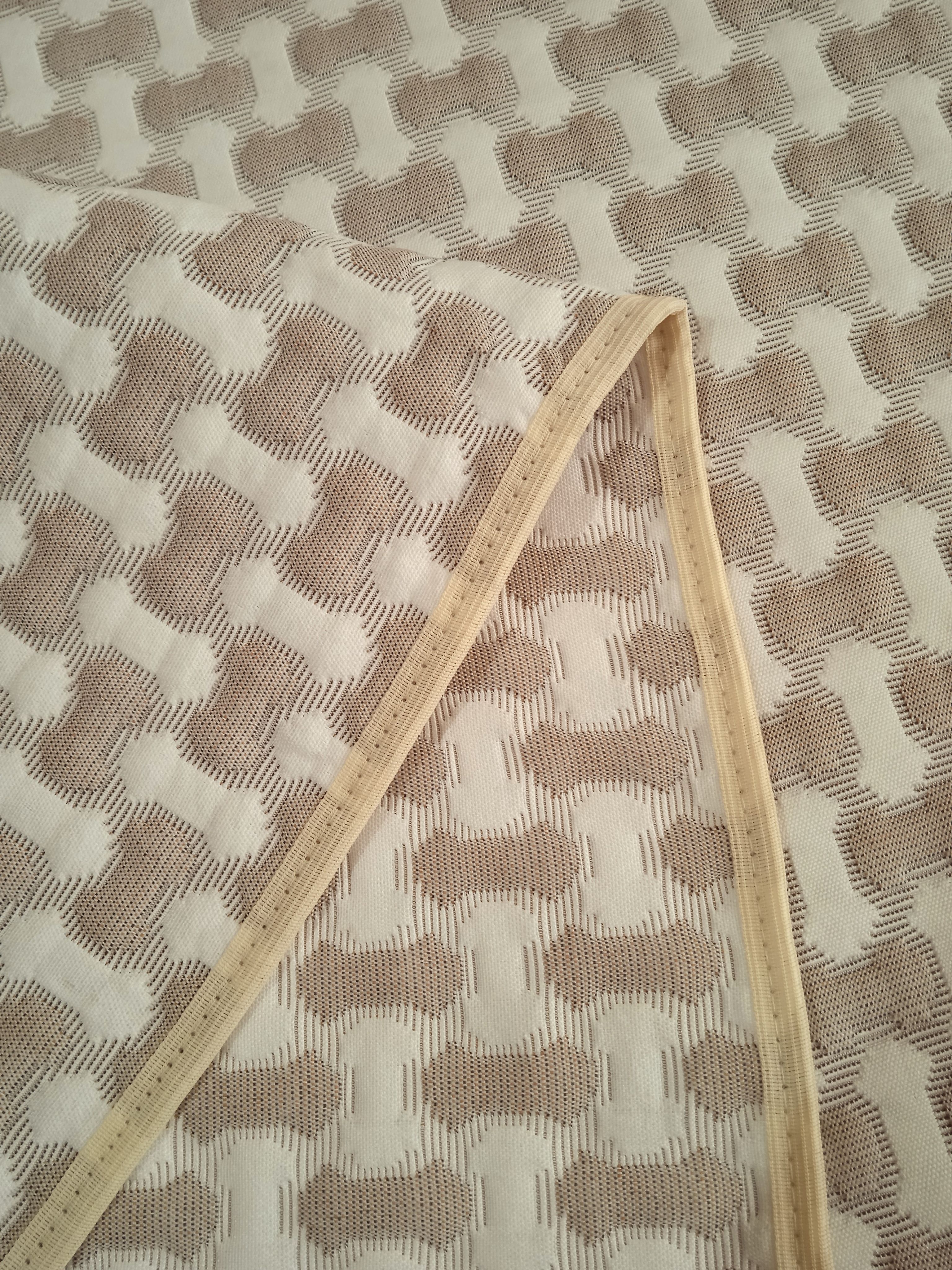Мягкое, легкое и приятное на ощупь покрывало выпускается в светлых бежевых, коричневых и серых оттенках с неизменно присутствующим белым цветом. Рисунок на сторонах одинаковый но отличается по плотности окраса поверхности. Перевернув покрывало на другую сторону вы увидите тот же рисунок с большей или меньшей насыщенностью цвета.