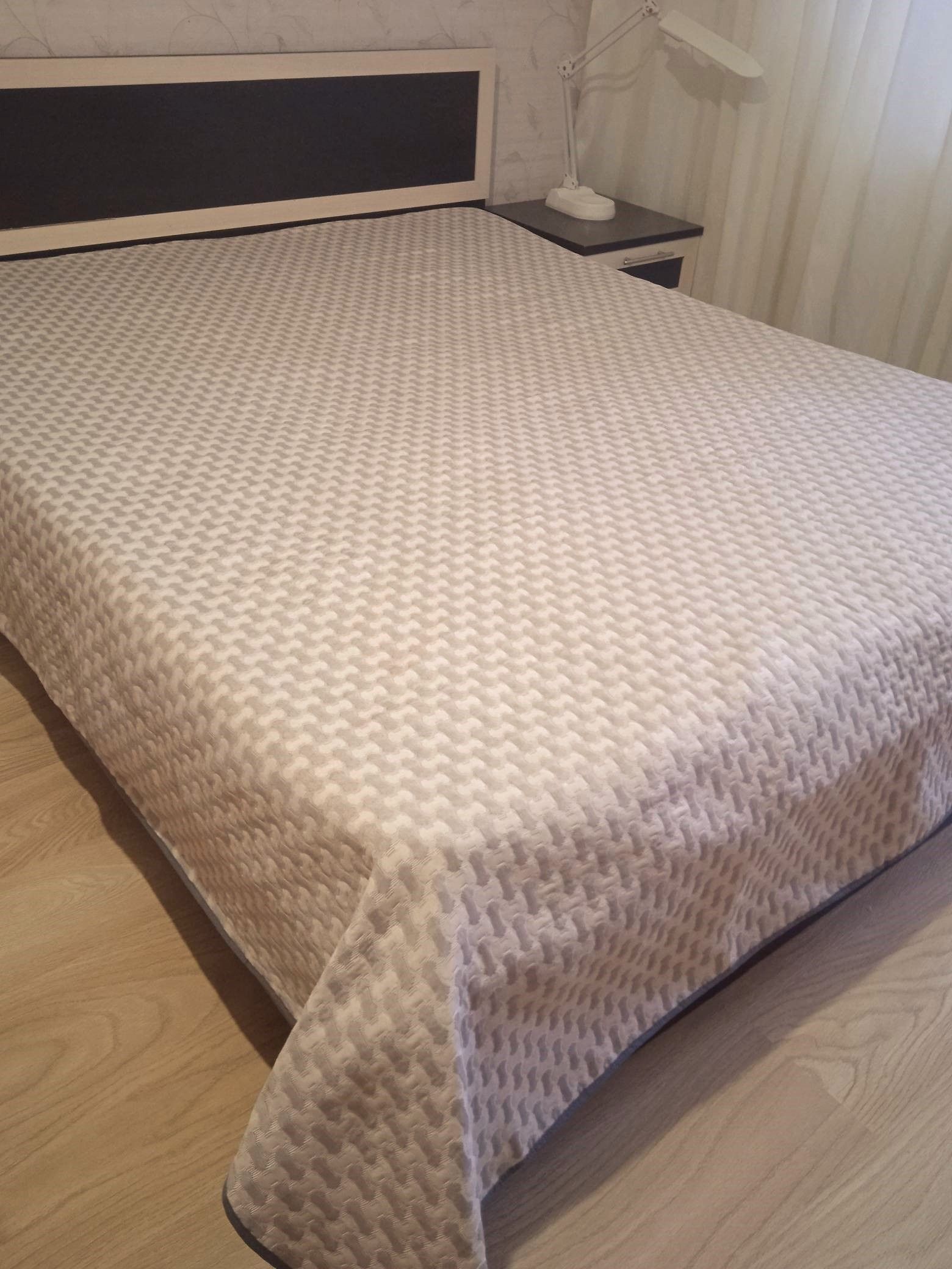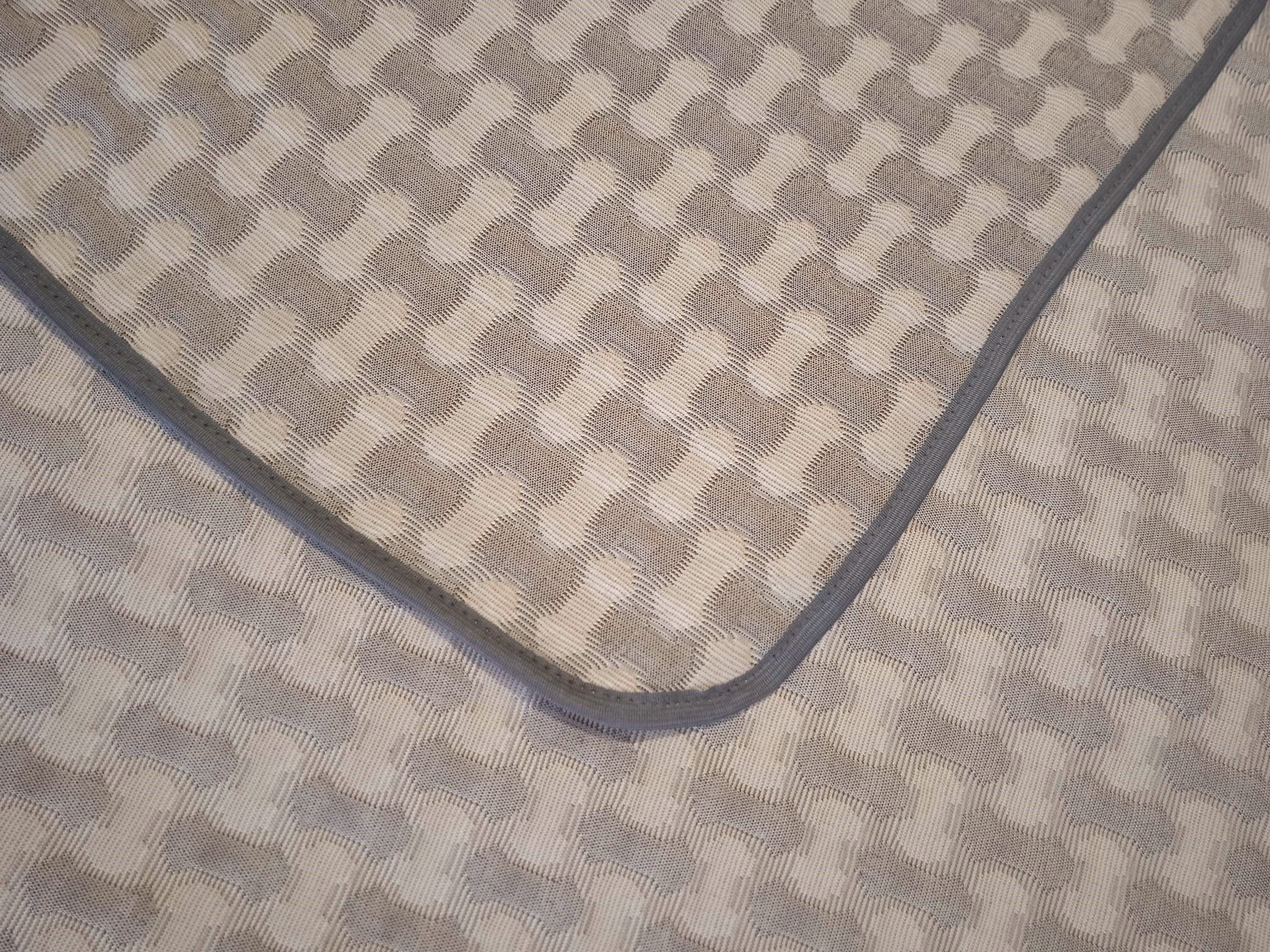 Мягкое, легкое и приятное на ощупь покрывало выпускается в светлых бежевых, коричневых и серых оттенках с неизменно присутствующим белым цветом. Рисунок на сторонах одинаковый но отличается по плотности окраса поверхности. Перевернув покрывало на другую сторону вы увидите тот же рисунок с большей или меньшей насыщенностью цвета.