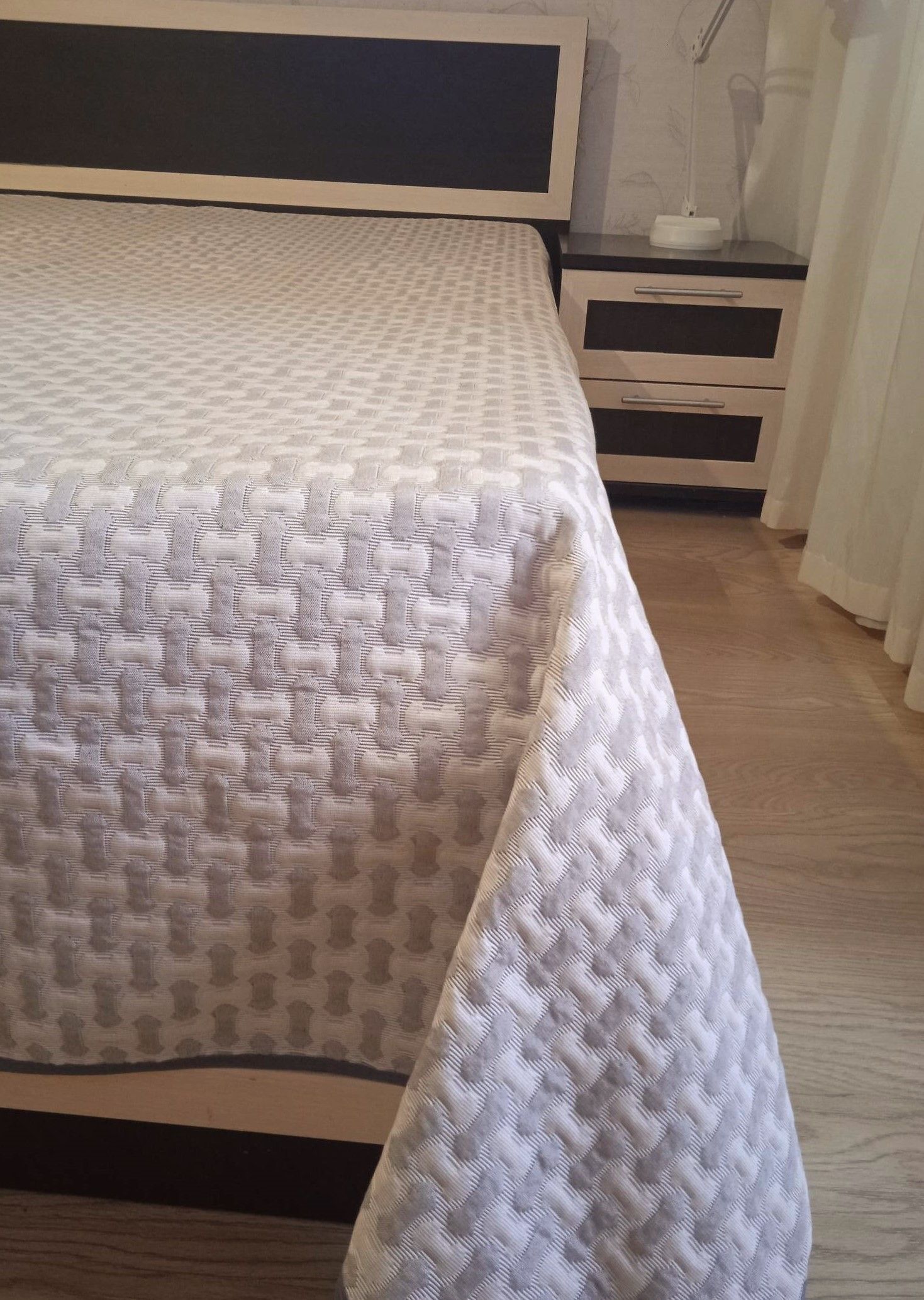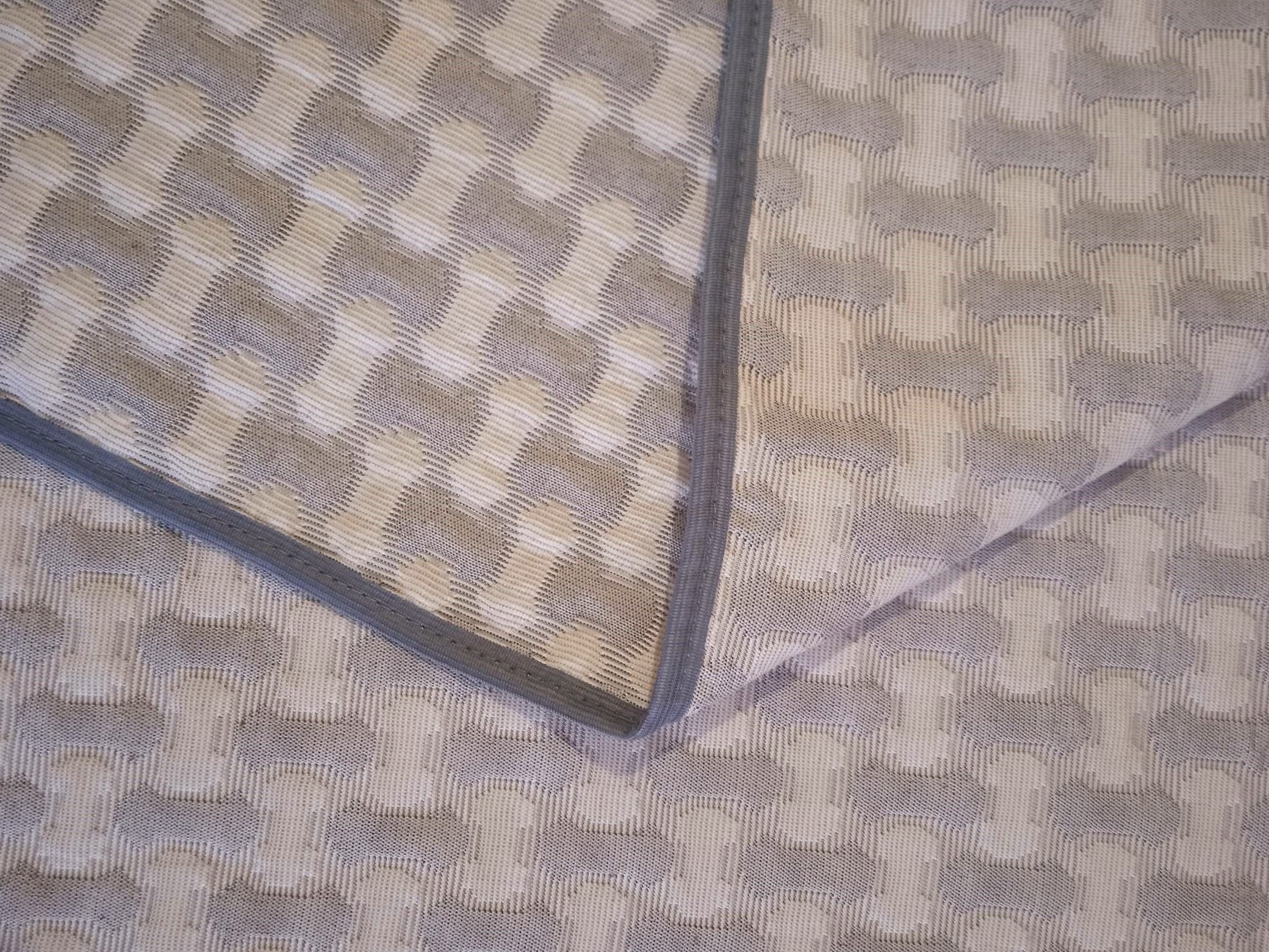 Мягкое, легкое и приятное на ощупь покрывало выпускается в светлых бежевых, коричневых и серых оттенках с неизменно присутствующим белым цветом. Рисунок на сторонах одинаковый но отличается по плотности окраса поверхности. Перевернув покрывало на другую сторону вы увидите тот же рисунок с большей или меньшей насыщенностью цвета.