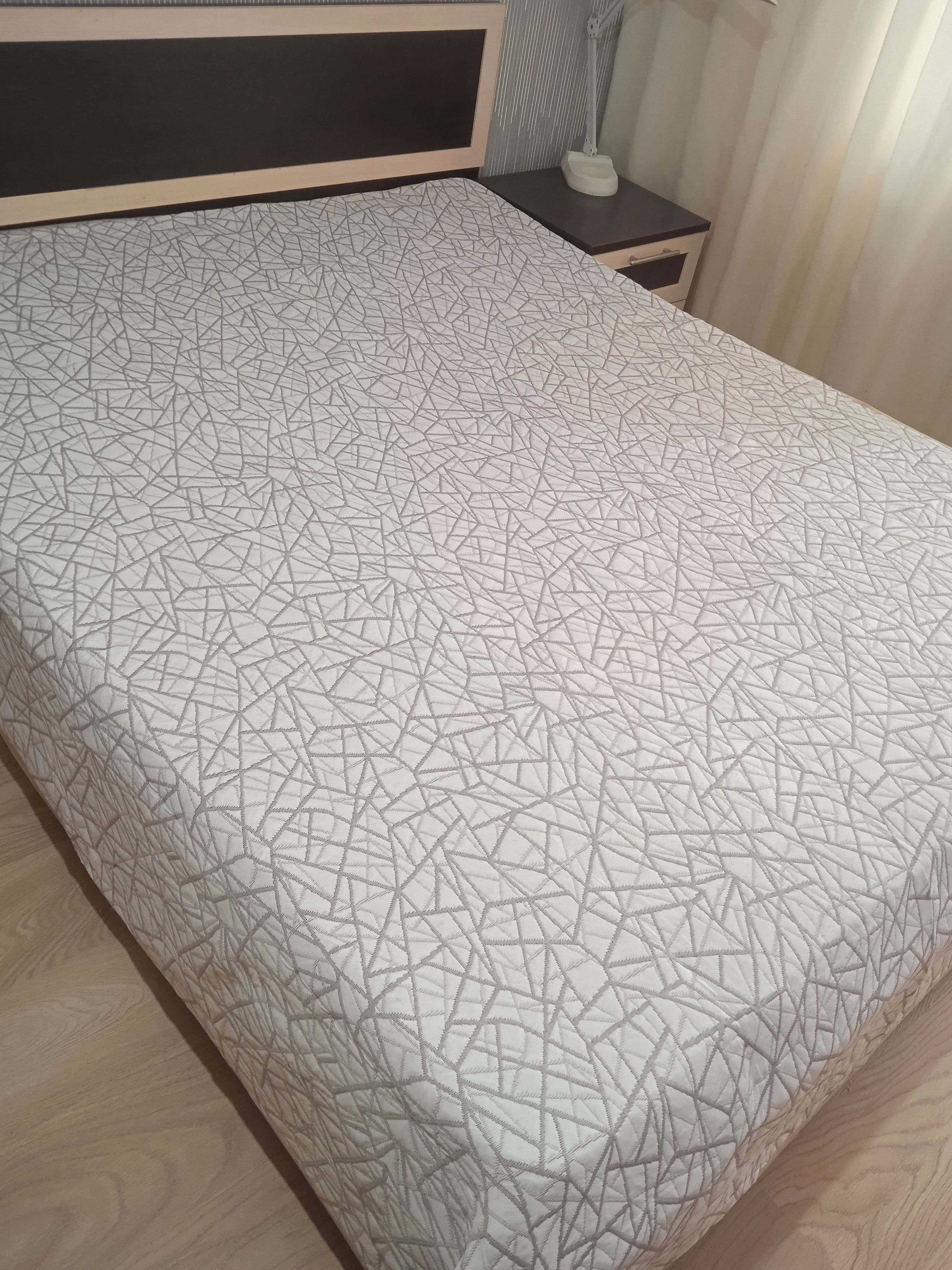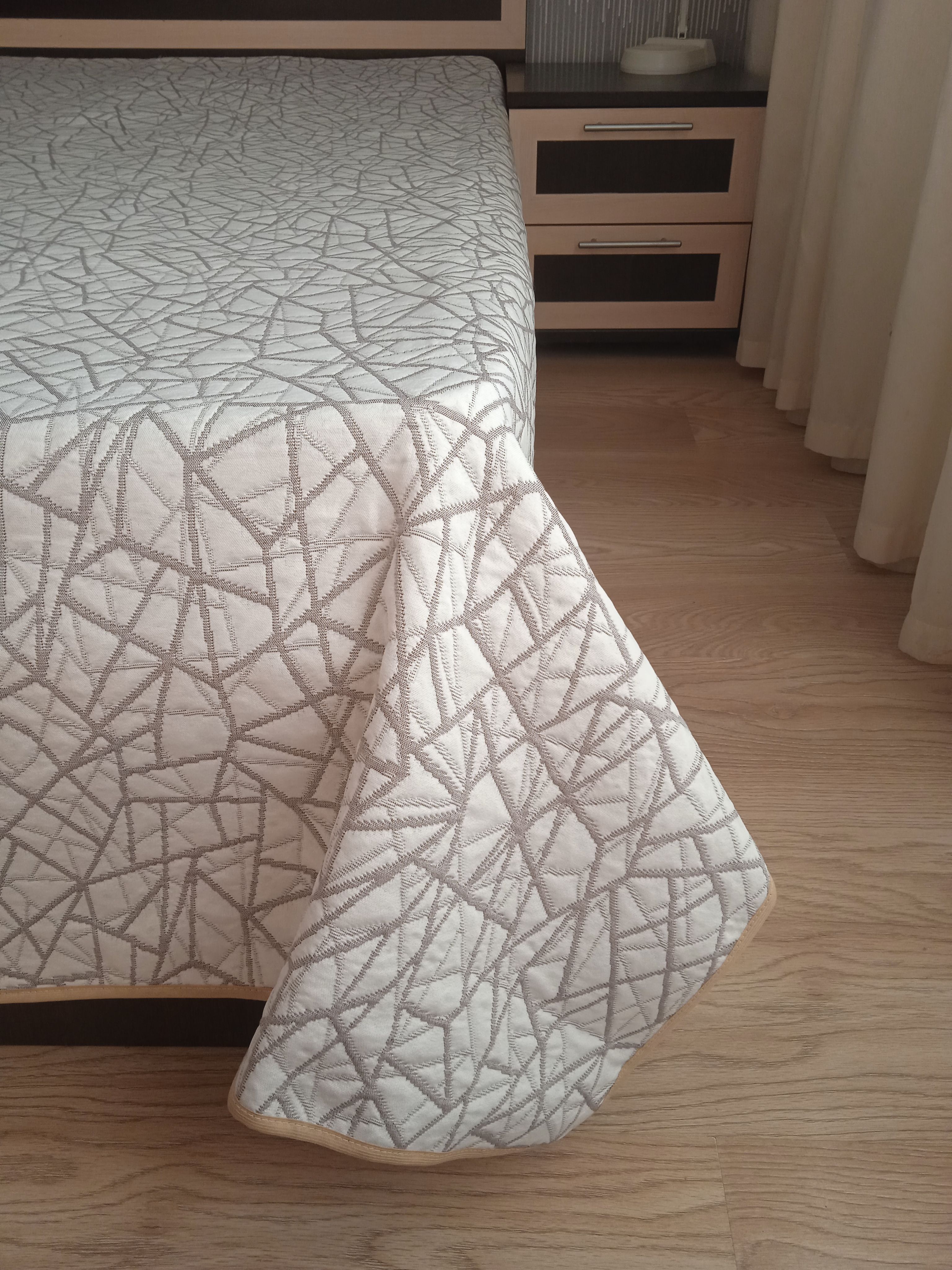 Мягкое, легкое и приятное на ощупь покрывало выпускается в светлых бежевых, коричневых и серых оттенках с неизменно присутствующим белым цветом. Рисунок на сторонах одинаковый но отличается по плотности окраса поверхности. Перевернув покрывало на другую сторону вы увидите тот же рисунок с большей или меньшей насыщенностью цвета. Края покрывала обшиты окантовочной лентой. Цвет окантовочной ленты может отличатся от цвета на фото в карточке товара.