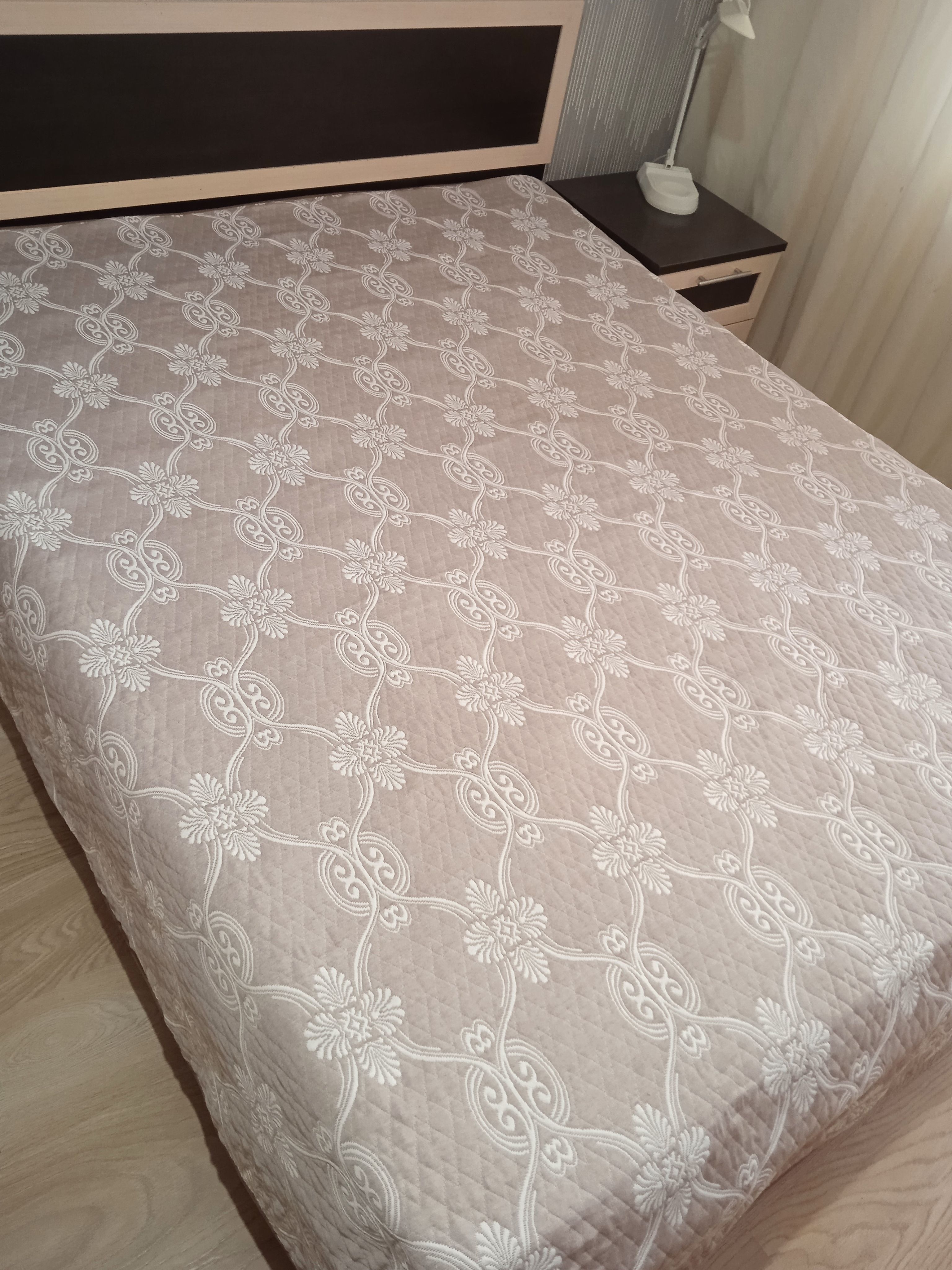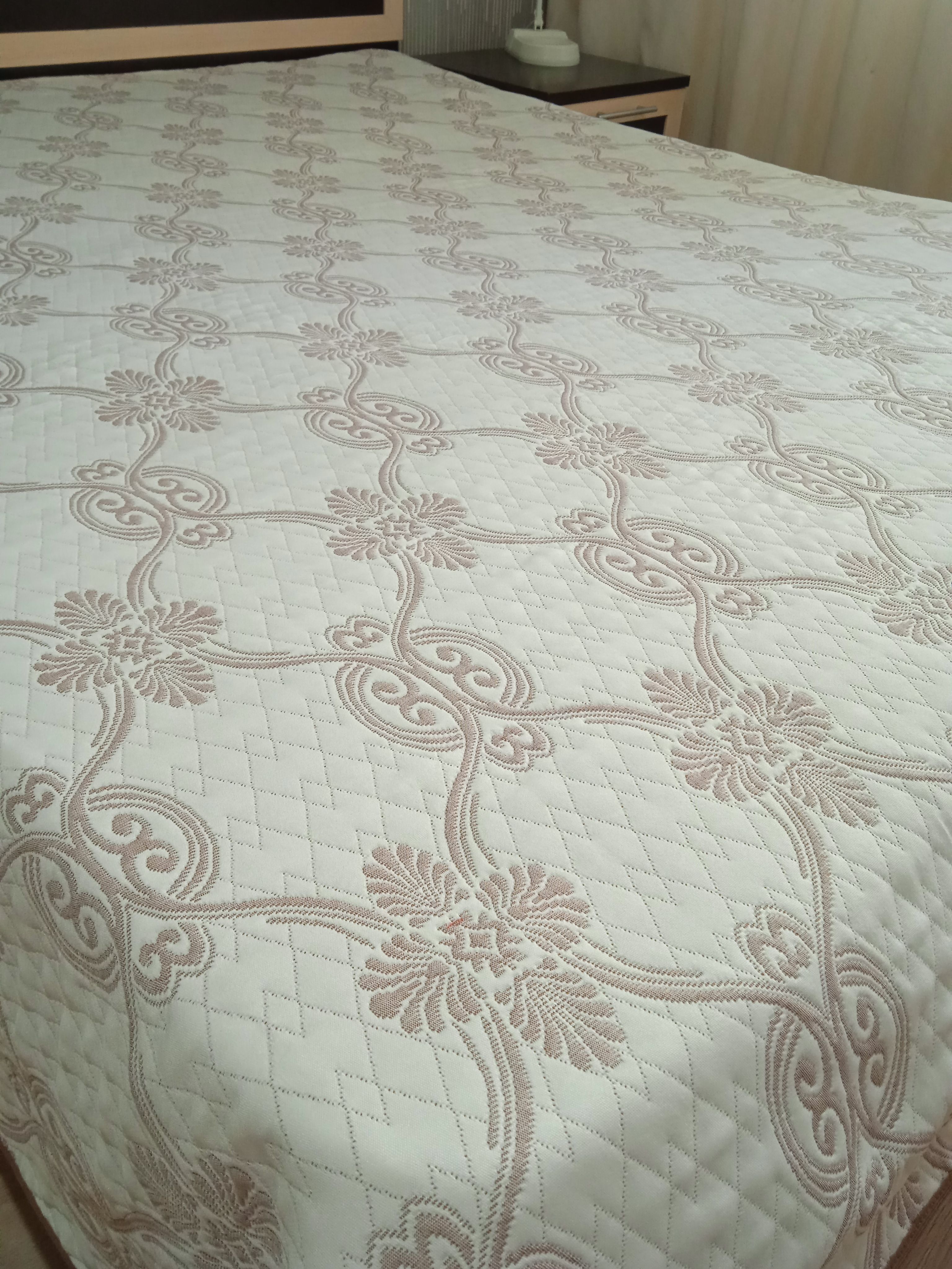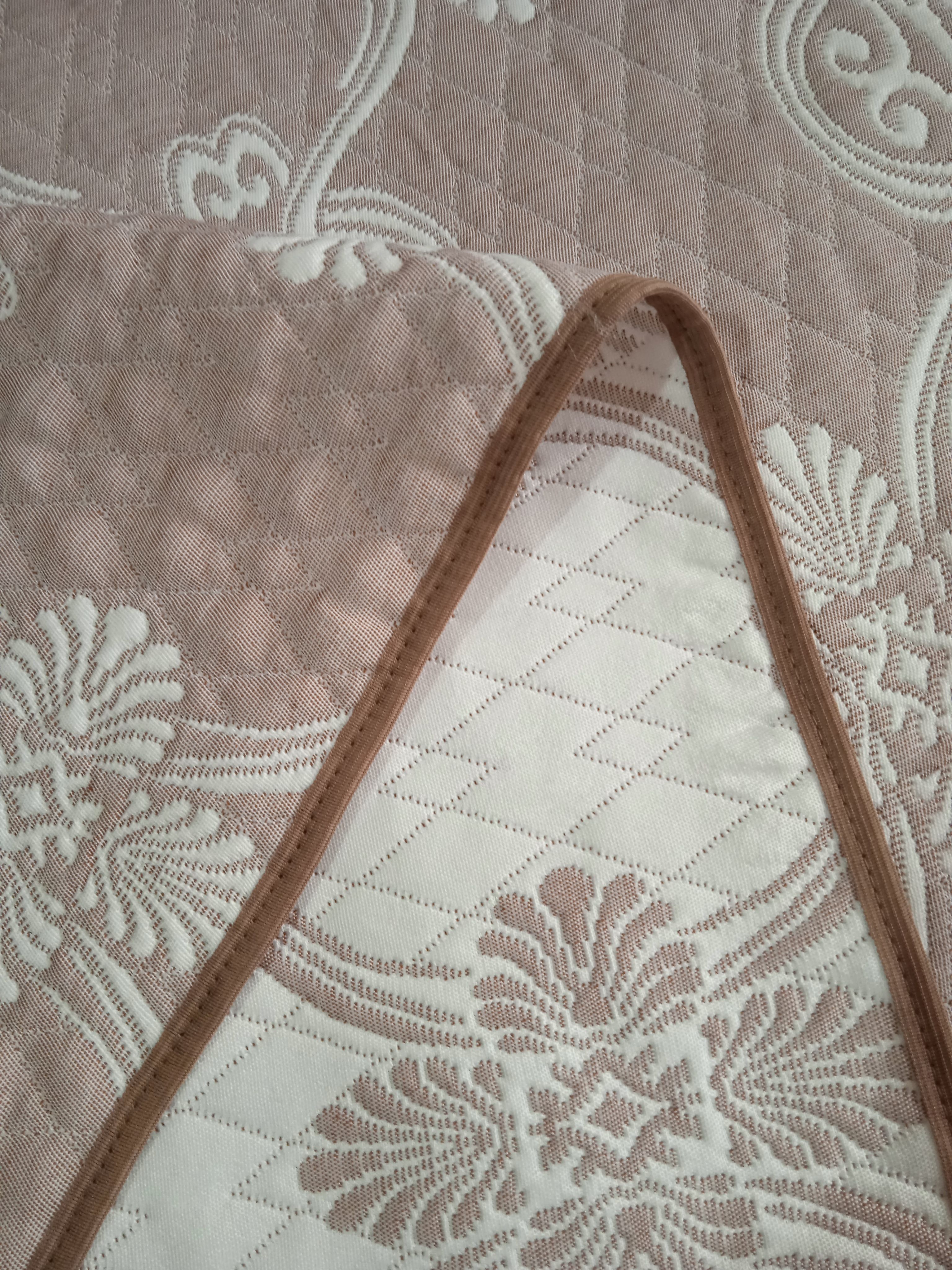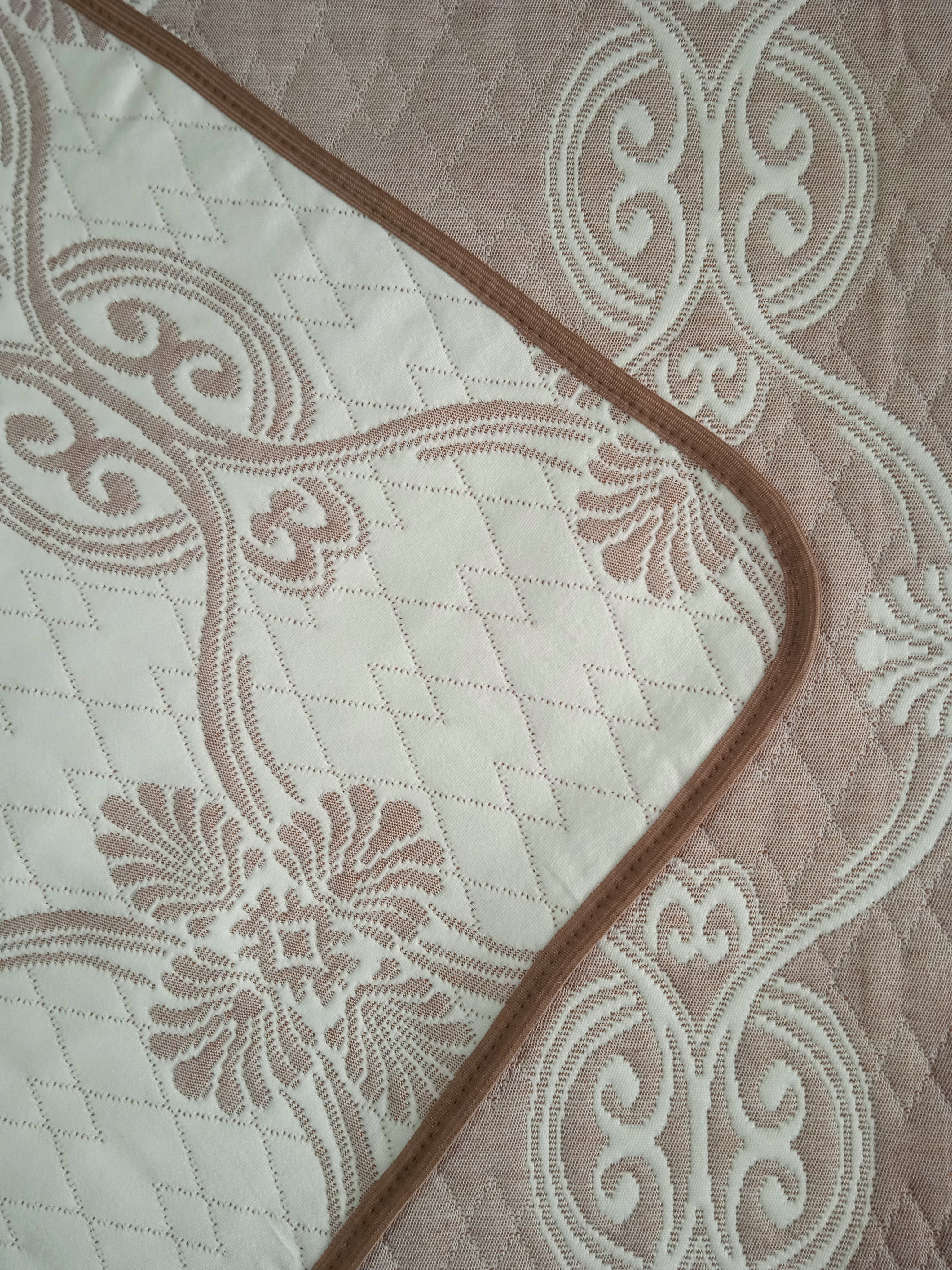 Мягкое, легкое и приятное на ощупь покрывало выпускается в светлых бежевых, коричневых и серых оттенках с неизменно присутствующим белым цветом. Рисунок на сторонах одинаковый но отличается по плотности окраса поверхности. Перевернув покрывало на другую сторону вы увидите тот же рисунок с большей или меньшей насыщенностью цвета.