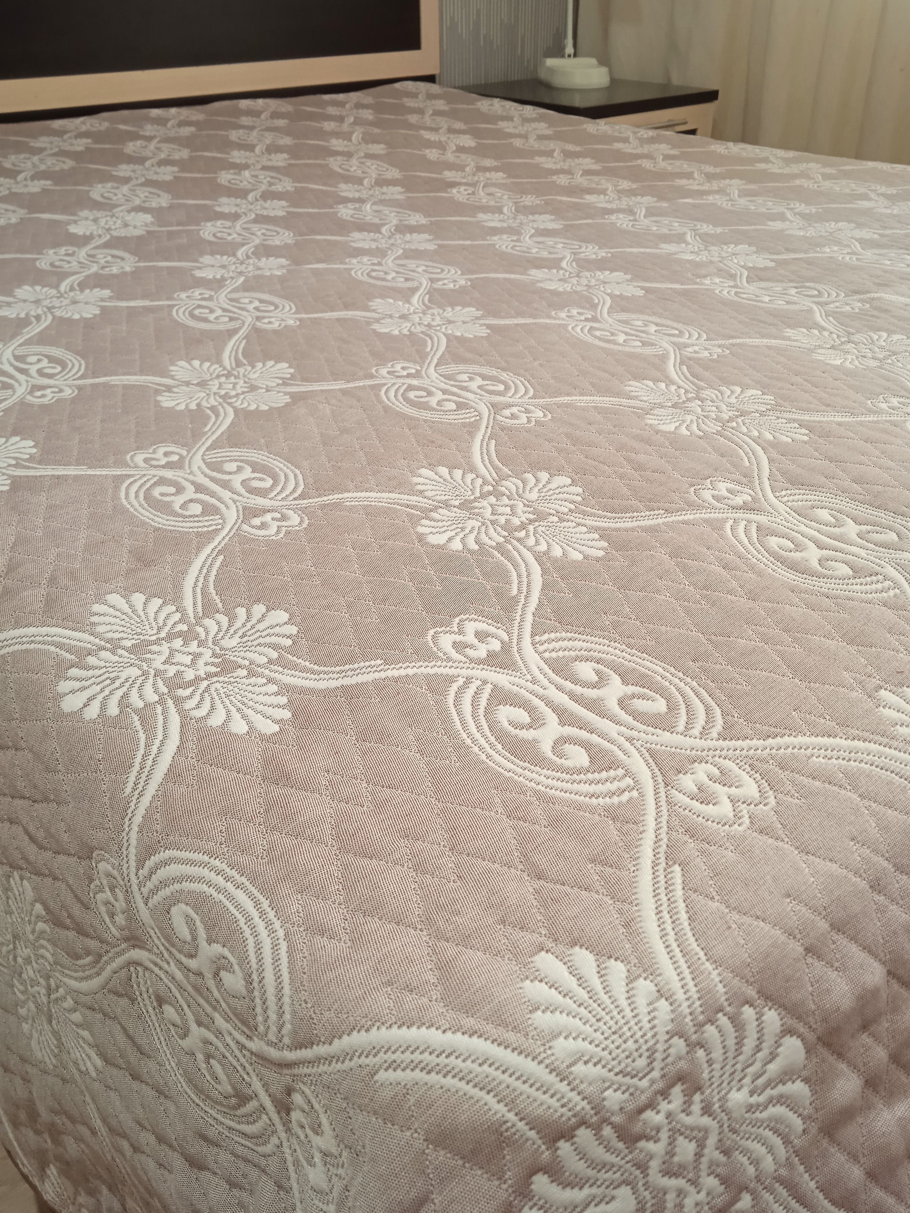 Мягкое, легкое и приятное на ощупь покрывало выпускается в светлых бежевых, коричневых и серых оттенках с неизменно присутствующим белым цветом. Рисунок на сторонах одинаковый но отличается по плотности окраса поверхности. Перевернув покрывало на другую сторону вы увидите тот же рисунок с большей или меньшей насыщенностью цвета.