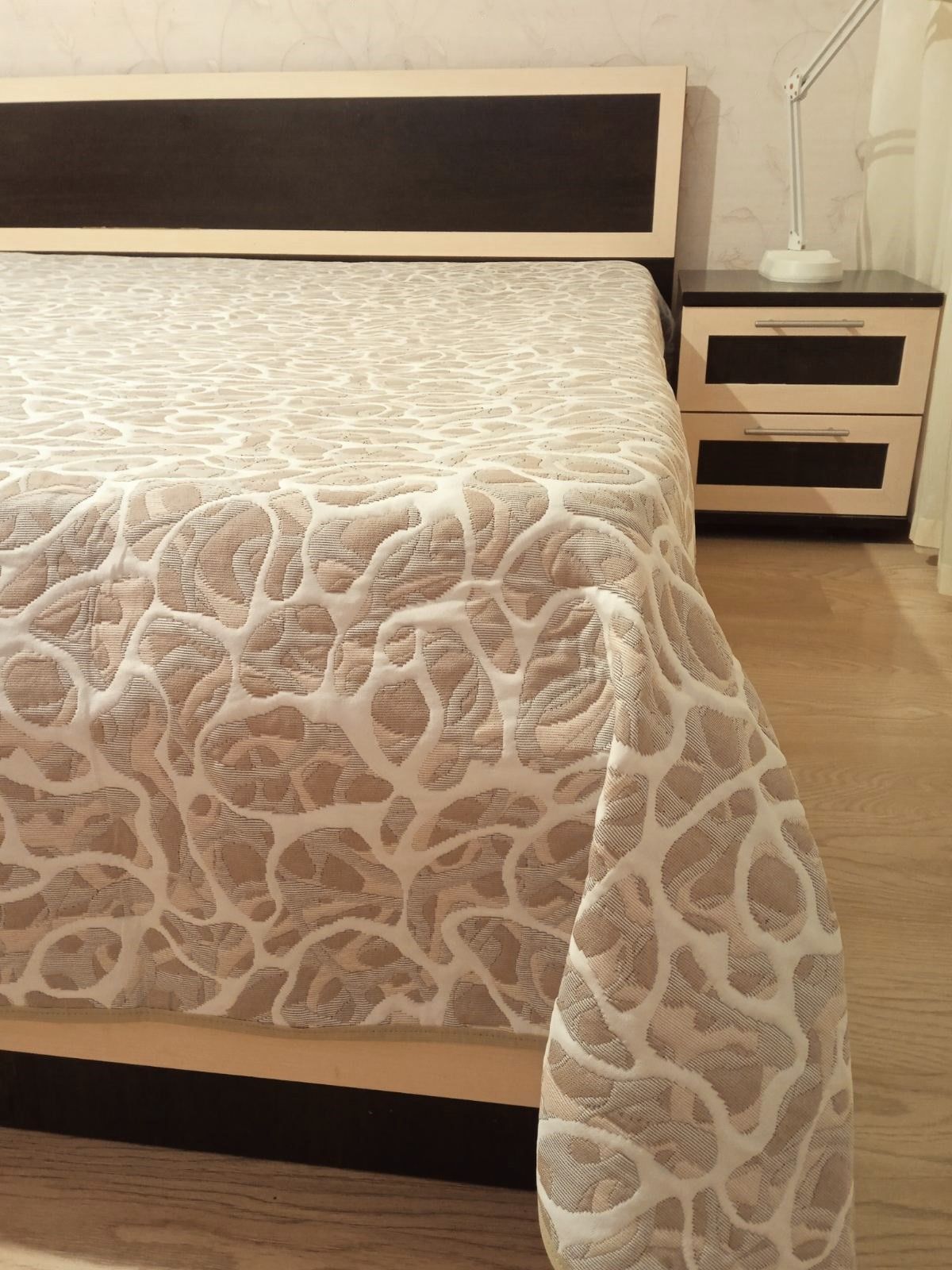 Мягкое, легкое и приятное на ощупь покрывало выпускается в светлых бежевых, коричневых и серых оттенках с неизменно присутствующим белым цветом. Рисунок на сторонах одинаковый но отличается по плотности окраса поверхности. Перевернув покрывало на другую сторону вы увидите тот же рисунок с большей или меньшей насыщенностью цвета.