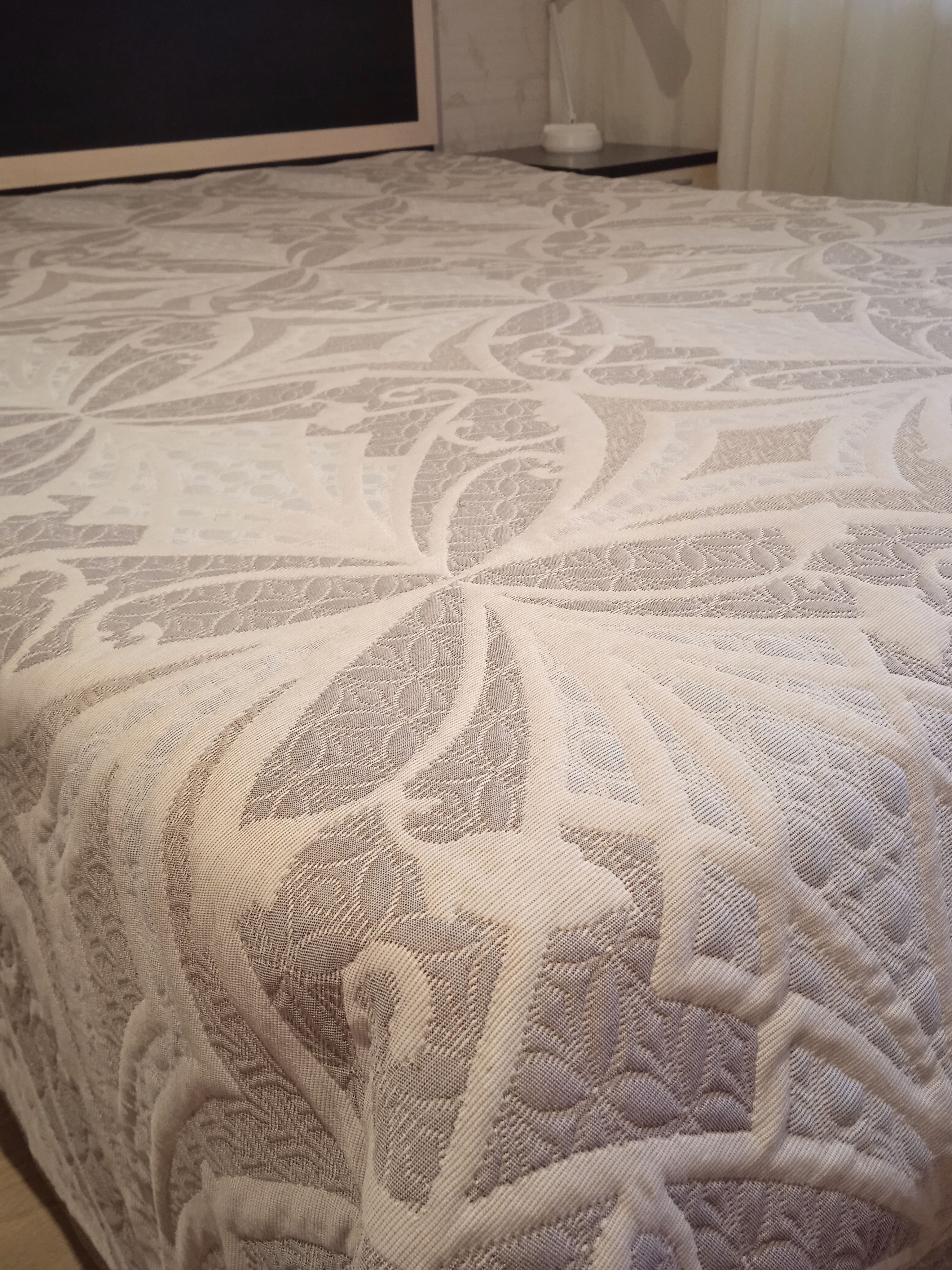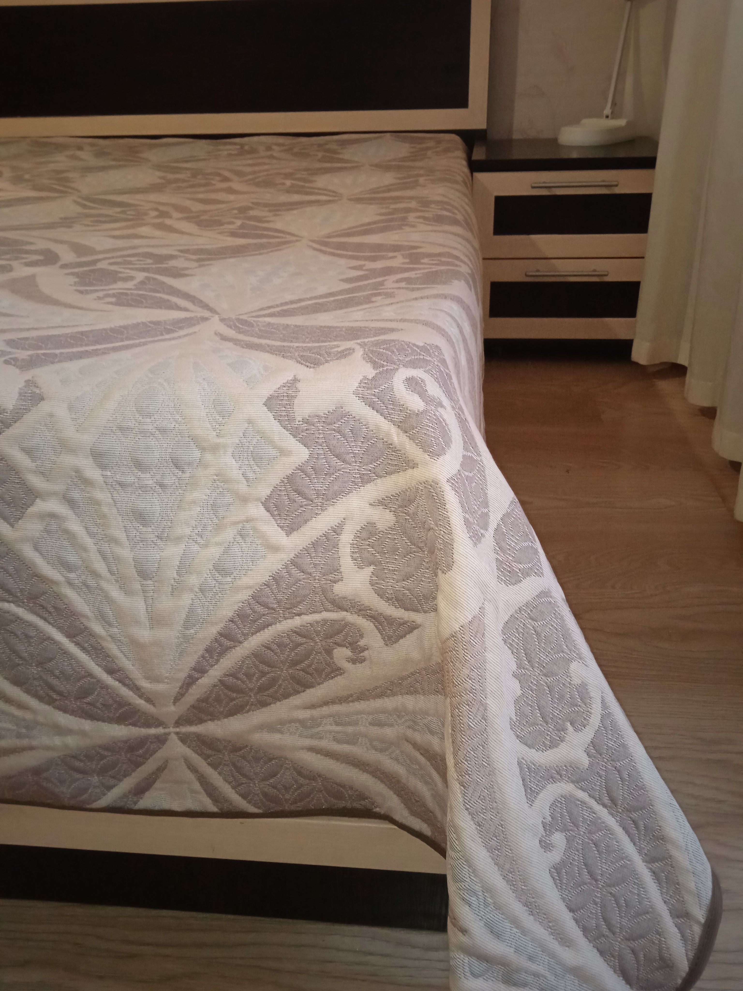 Мягкое, легкое и приятное на ощупь покрывало выпускается в светлых бежевых, коричневых и серых оттенках с неизменно присутствующим белым цветом. Рисунок на сторонах одинаковый но отличается по плотности окраса поверхности. Перевернув покрывало на другую сторону вы увидите тот же рисунок с большей или меньшей насыщенностью цвета.