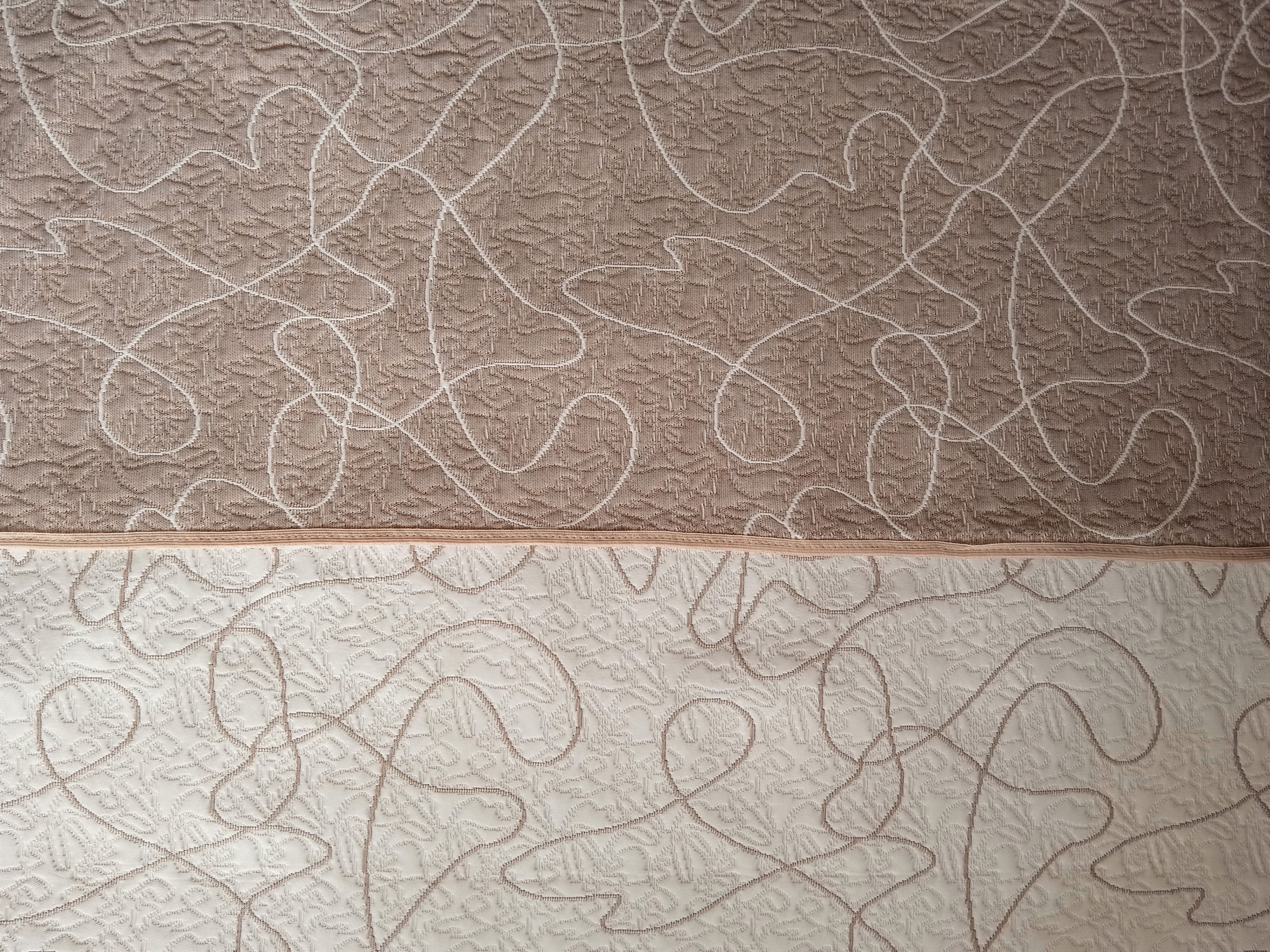 Мягкое, легкое и приятное на ощупь покрывало выпускается в светлых бежевых, коричневых и серых оттенках с неизменно присутствующим белым цветом. Рисунок на сторонах одинаковый но отличается по плотности окраса поверхности. Перевернув покрывало на другую сторону вы увидите тот же рисунок с большей или меньшей насыщенностью цвета.